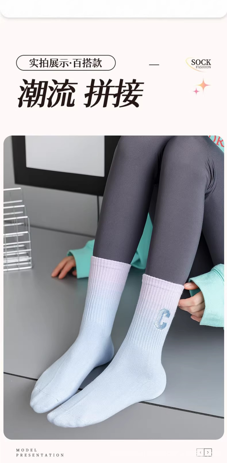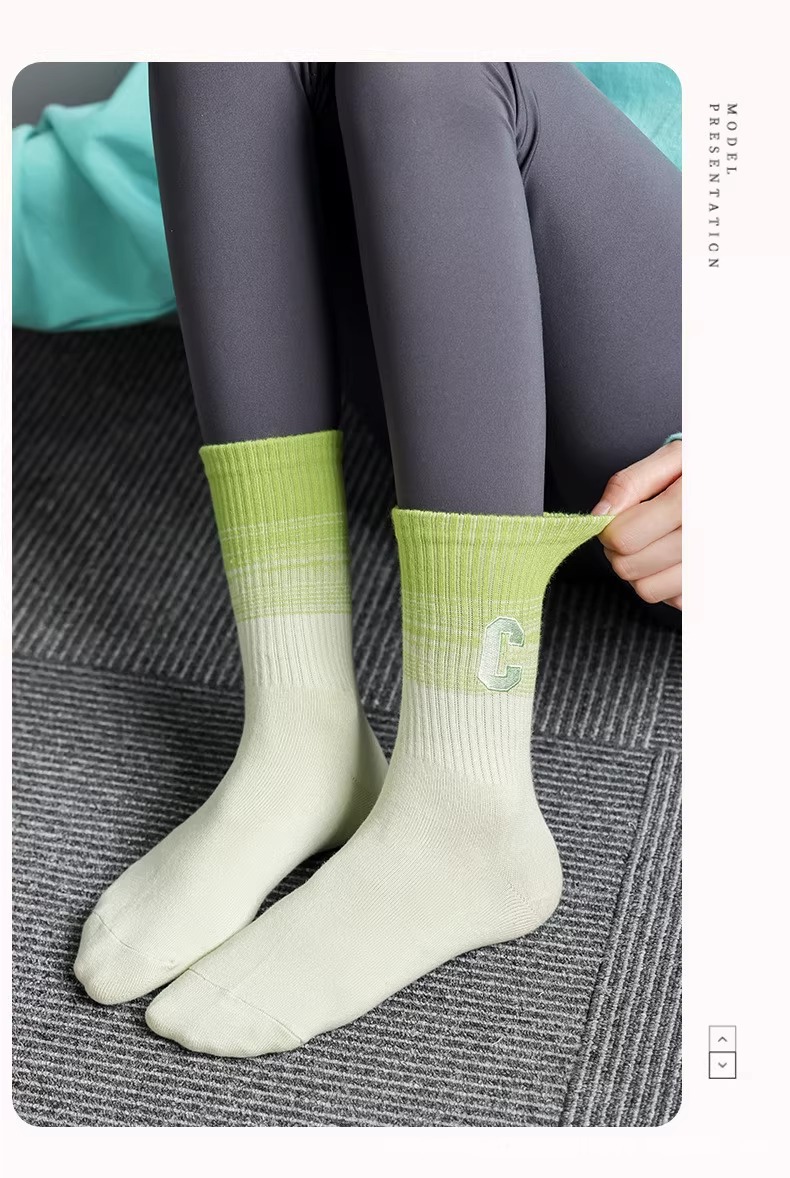 여성용 양말 봄 여름 중간 길이 2024 새로운 핫 스타일 단색 냄새 나지 않는 발면 양말 중간 길이 러닝 요가 양말 하이 튜브