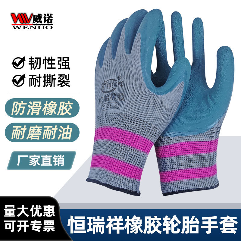 Hengruixiang 타이어 고무 장갑 회색 거즈 녹색 젖빛 폼 타이어 내마모성 왕 평행 걸이 고무 함침 장갑스토어 가기