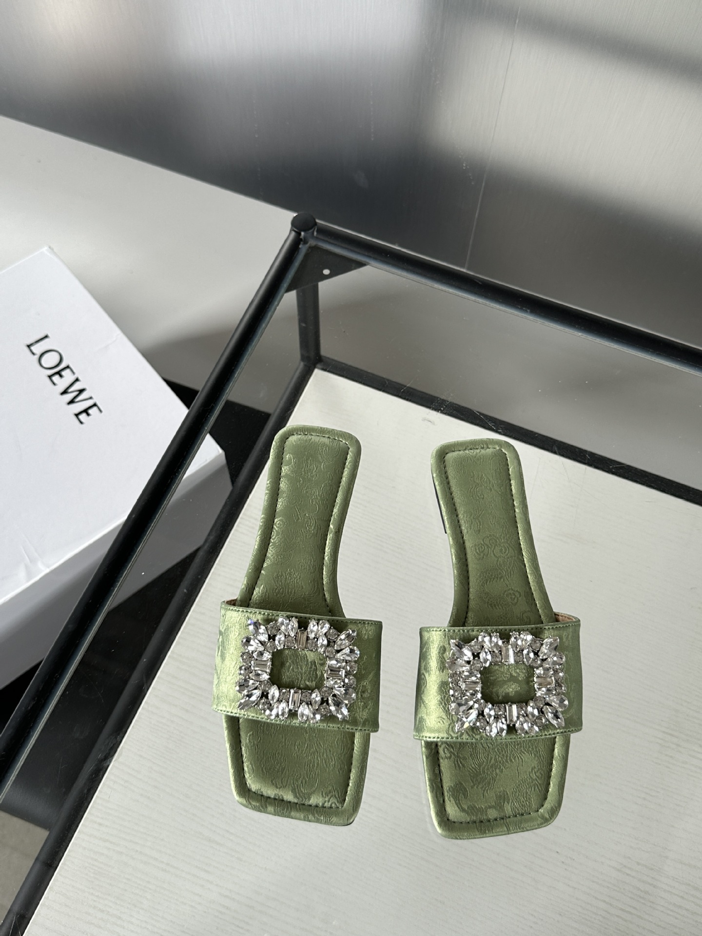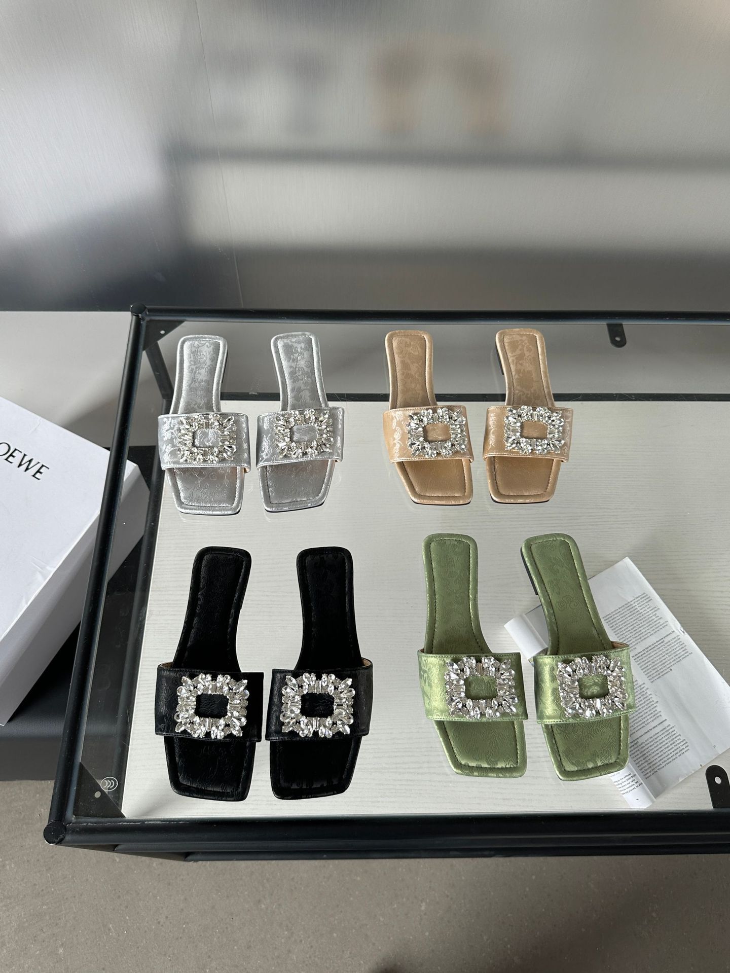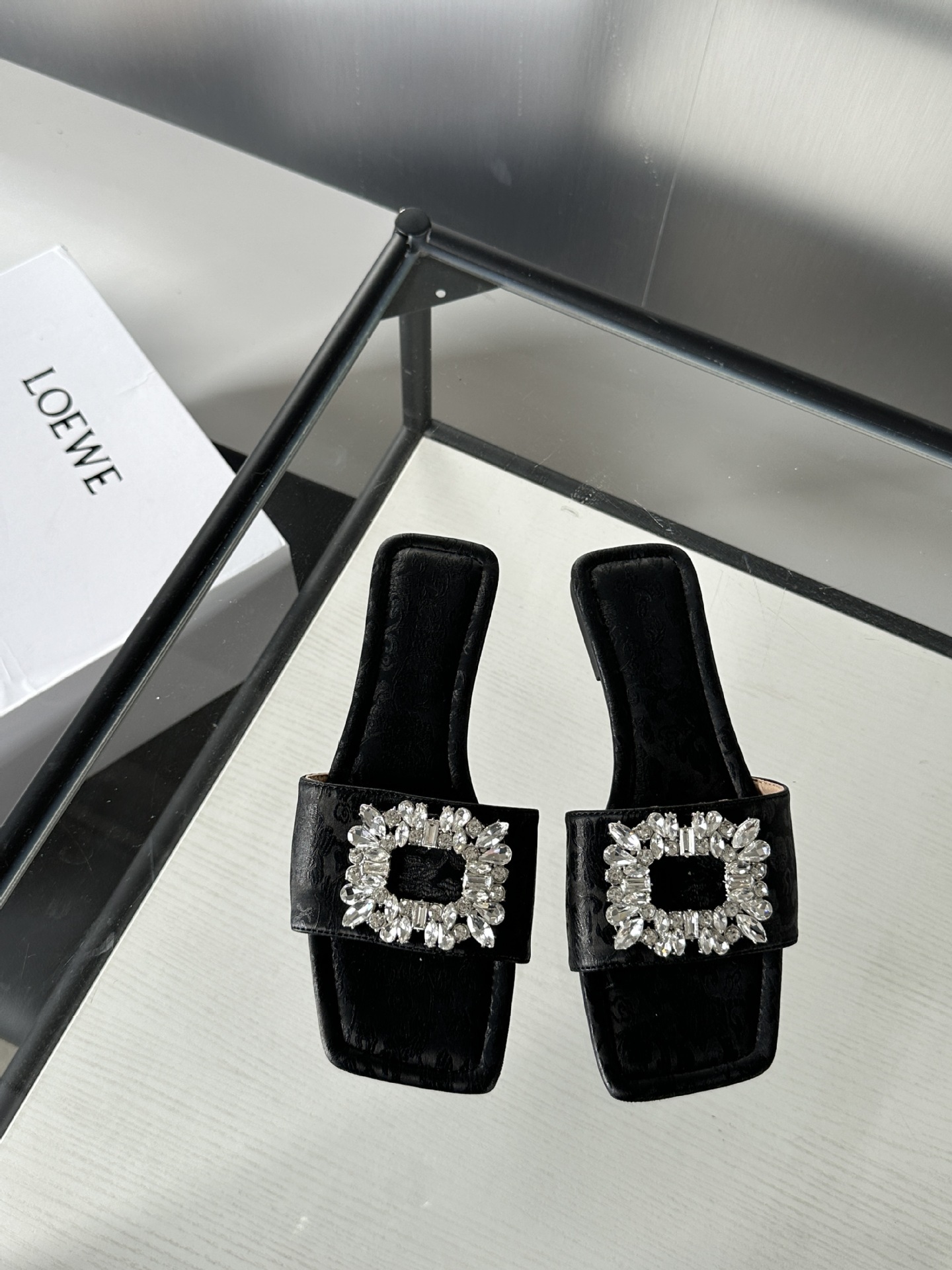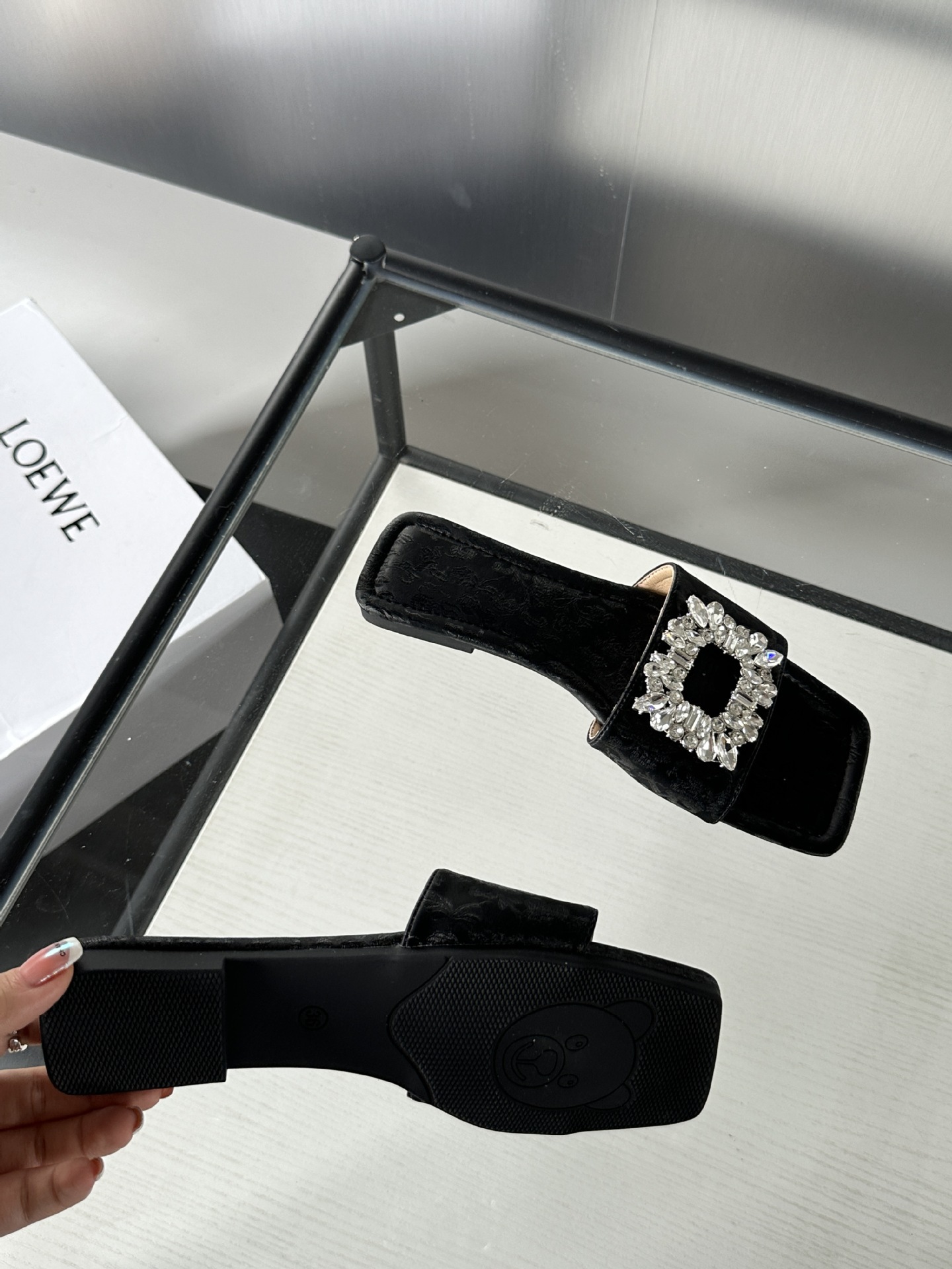 1938-9 ~ 평면 프랑스 모조 다이아몬드 사각형 머리 오픈 발가락 샌들 여성 착용 2024 년 여름 새