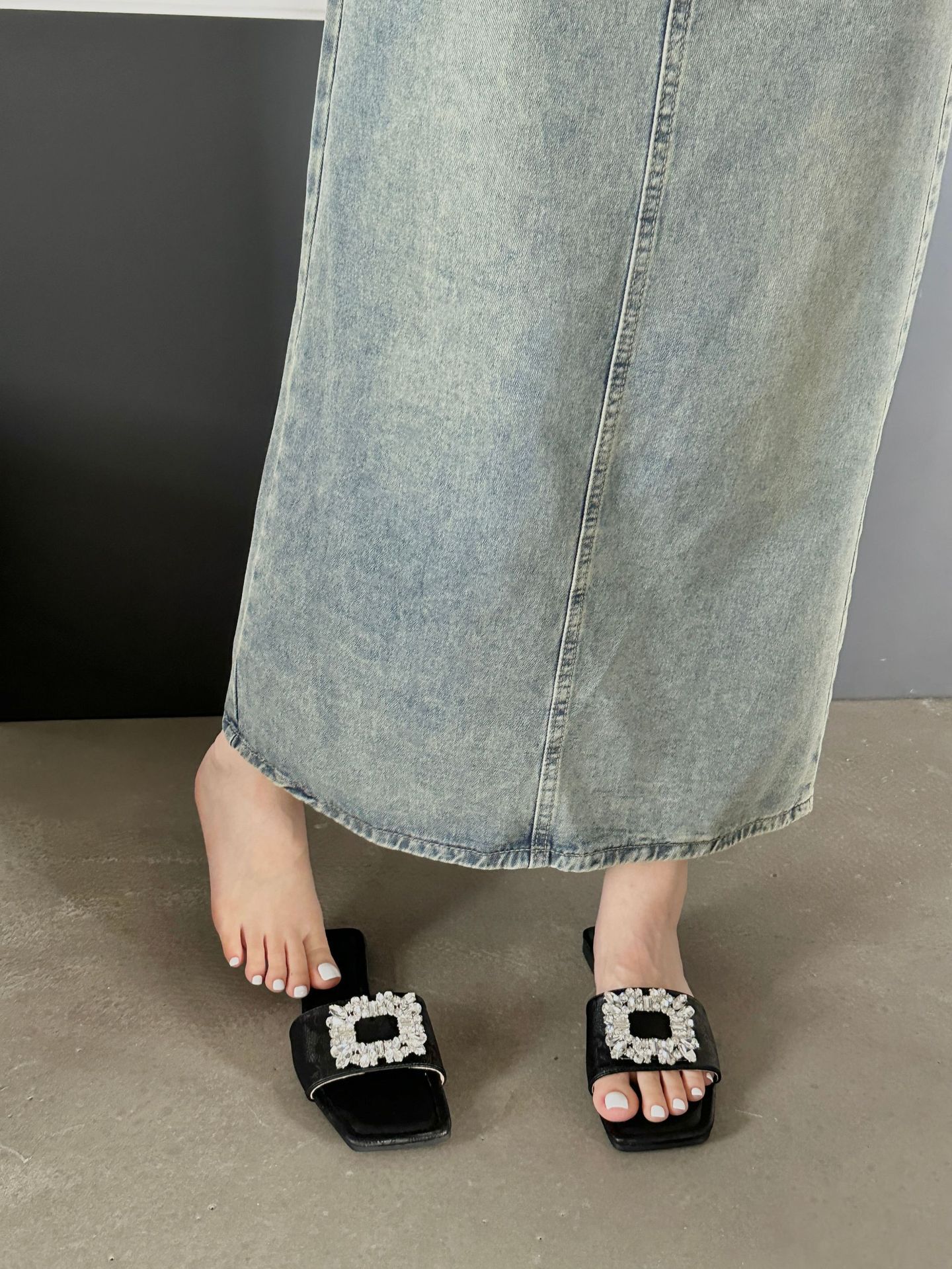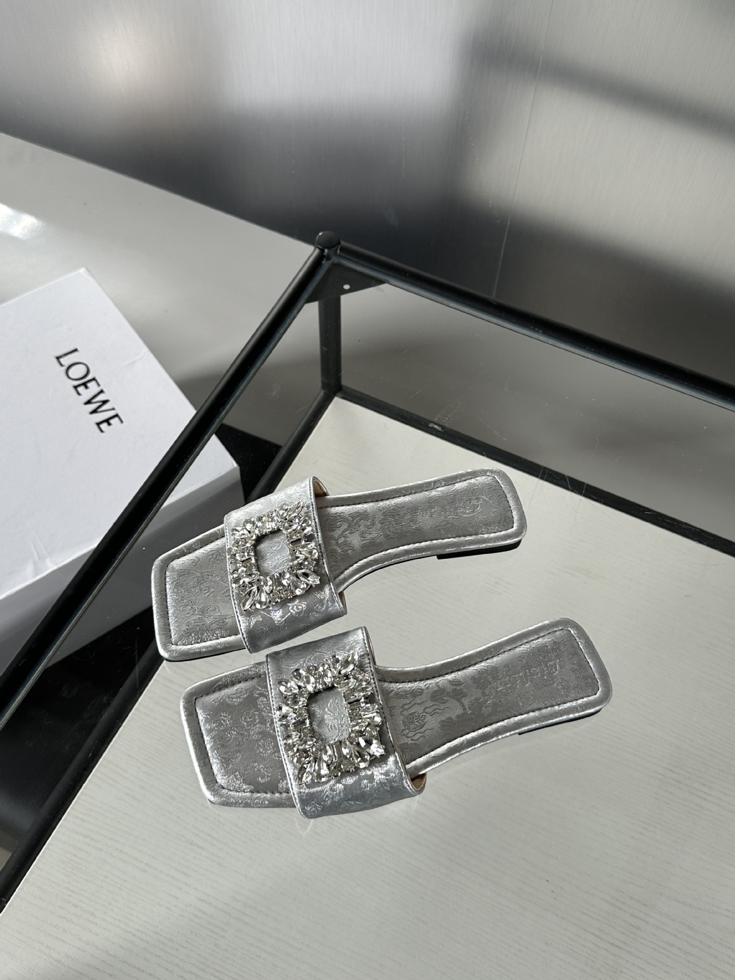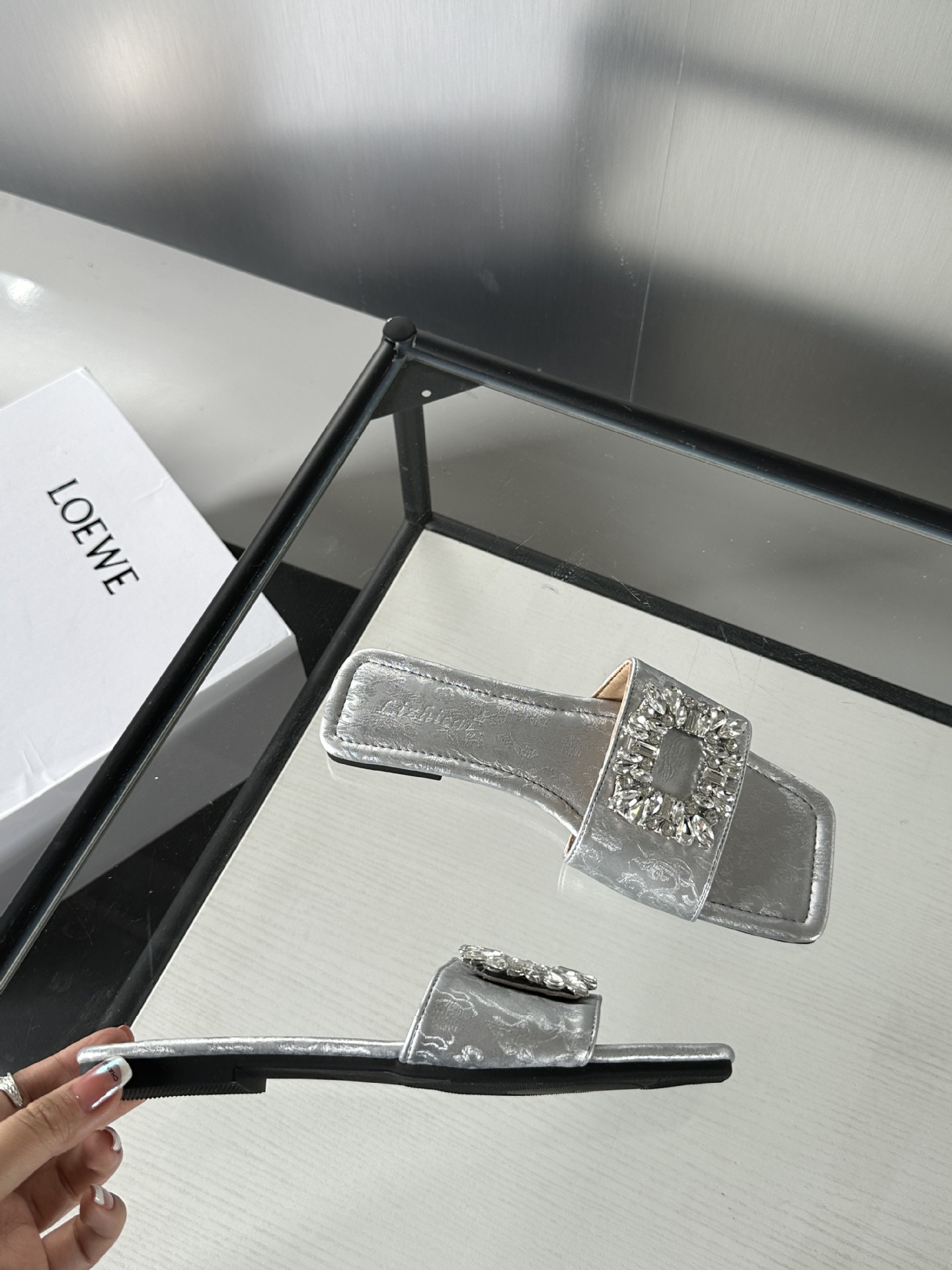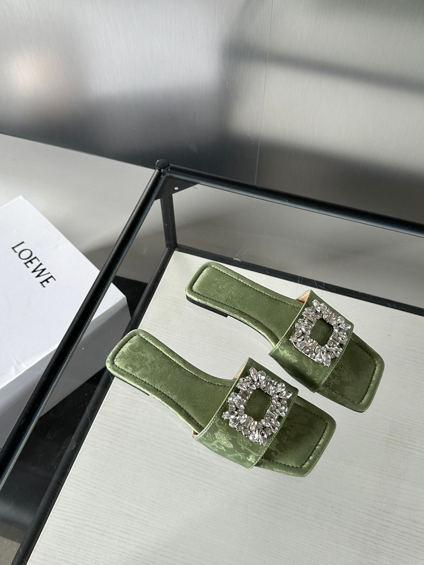 1938-9 ~ 평면 프랑스 모조 다이아몬드 사각형 머리 오픈 발가락 샌들 여성 착용 2024 년 여름 새