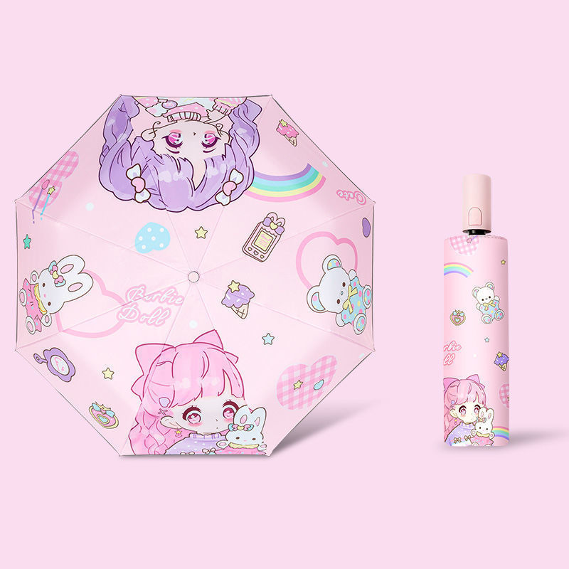 • 8본 긴 손잡이 어린이 우산 - 연인 소녀