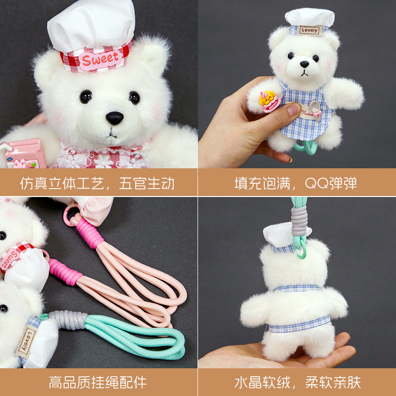 귀여운 요리사 윌리엄 베어 시리즈 플러시 인형 모자 곰 Schoolbag 장식 펜던트 헝겊 인형 도매