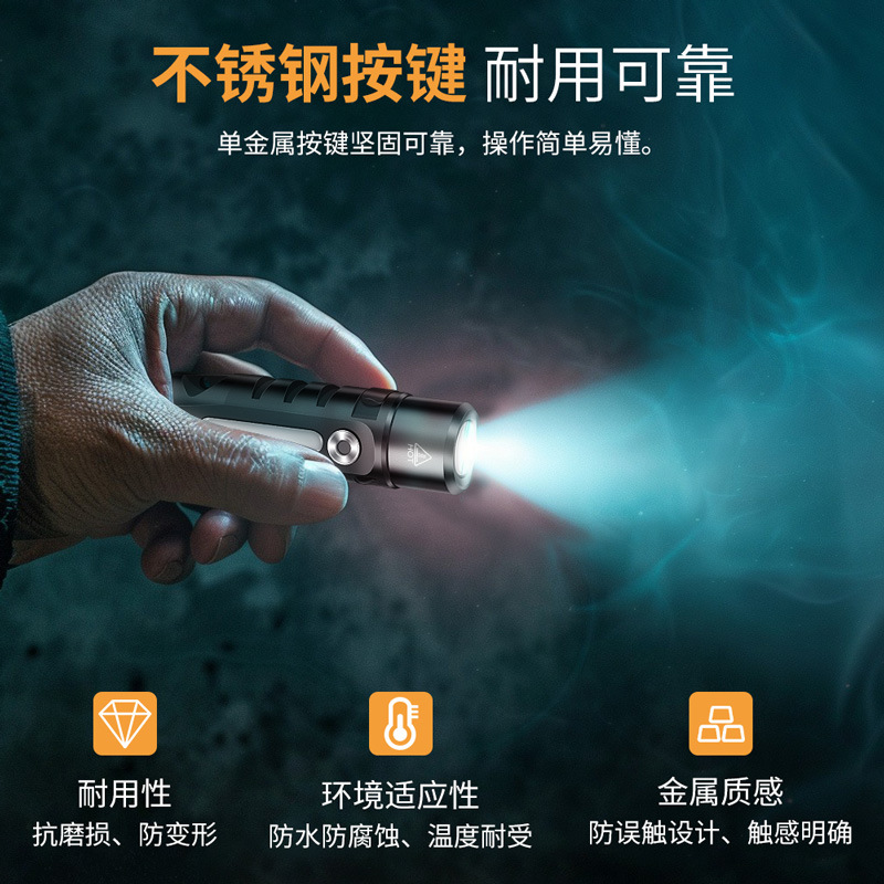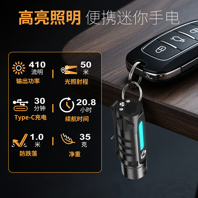 包装清单:手电筒,钥匙圈,USB线,说明书,包装盒