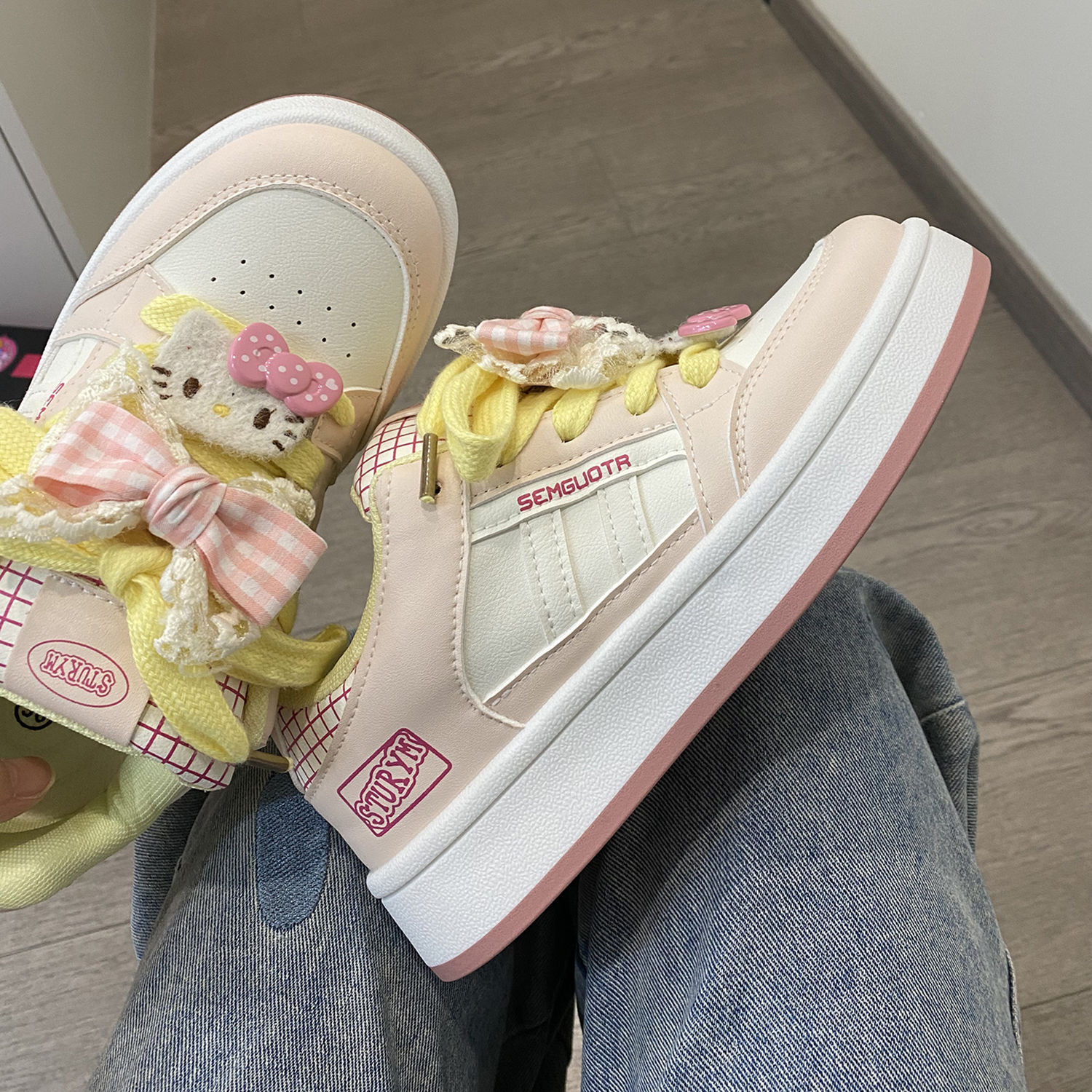 여성 스포츠를위한 핑크 두꺼운 밑창 운동화 봄 새로운 세련된 틈새 디자인 빵 신발 학생 통기성 흰색 신발