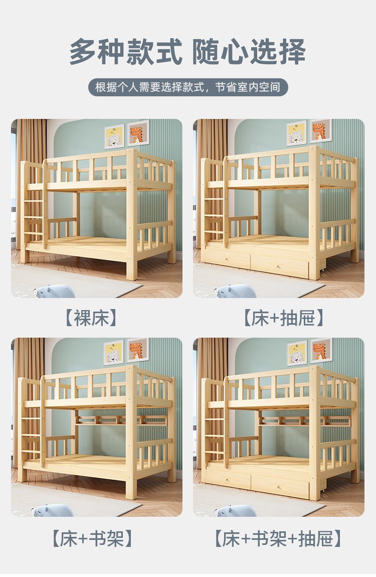 심플한 이층침대, 원목 이층침대, 두꺼운 하이앤로우 침대, 이층침대, 기숙사 성인용 이층침대, 어린이침대 체인스토어 가기