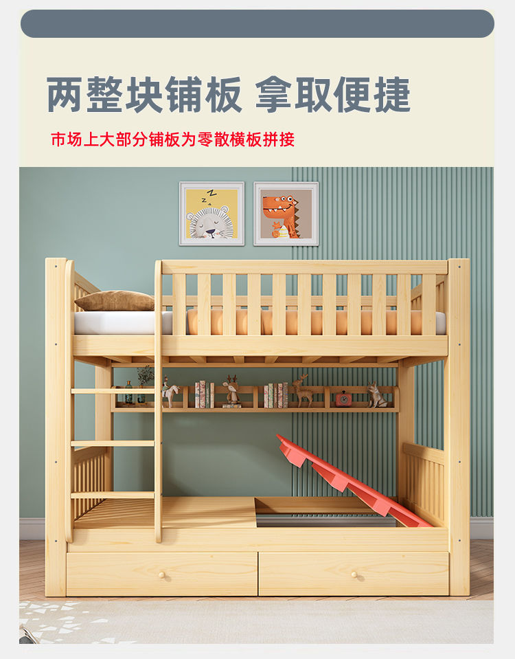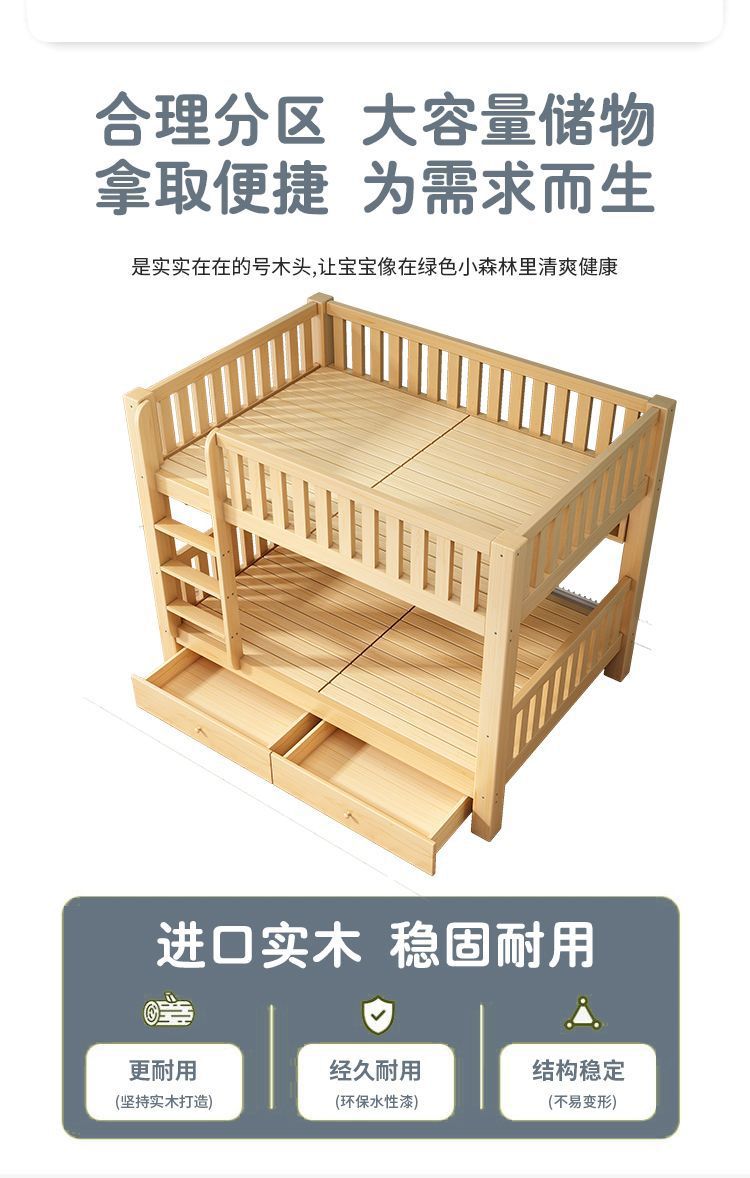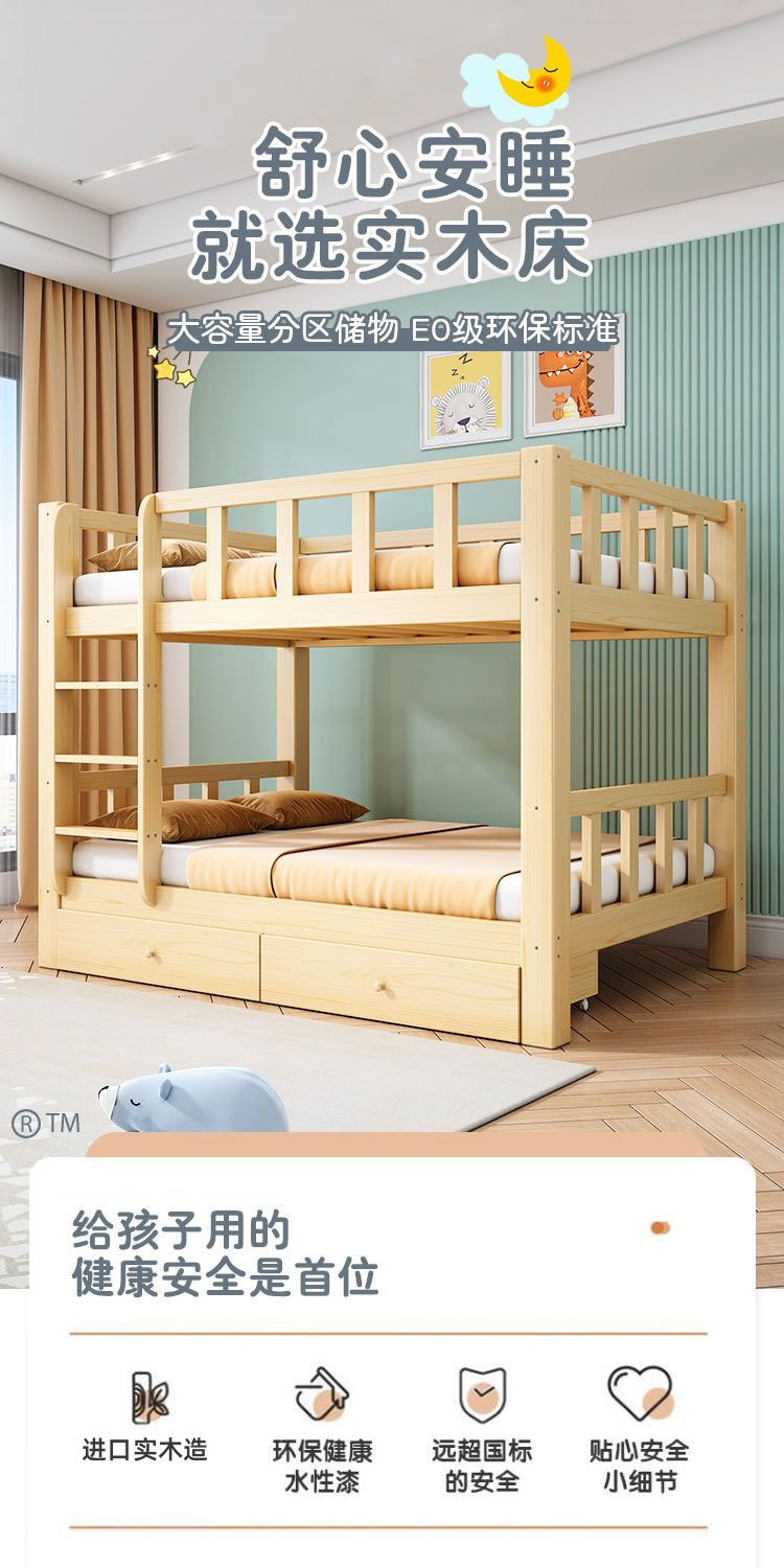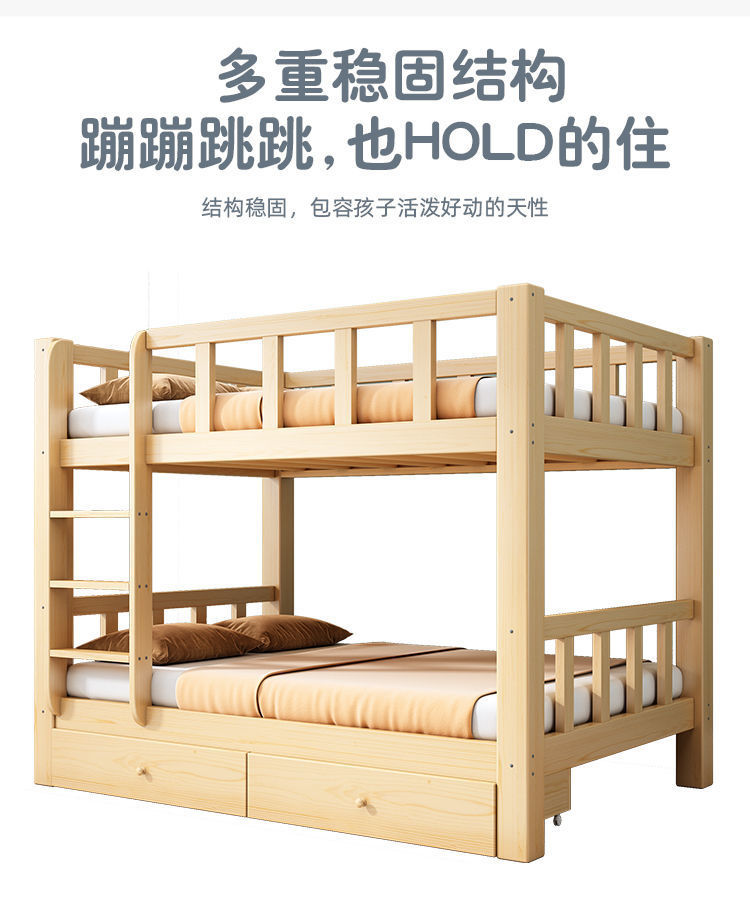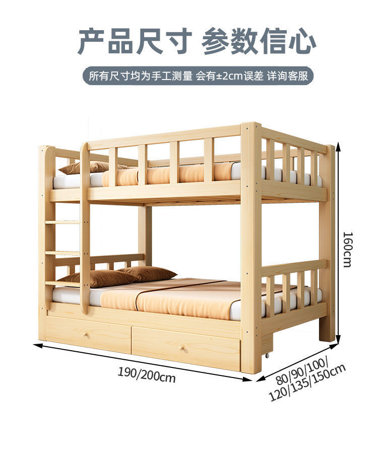 심플한 이층침대, 원목 이층침대, 두꺼운 하이앤로우 침대, 이층침대, 기숙사 성인용 이층침대, 어린이침대 체인