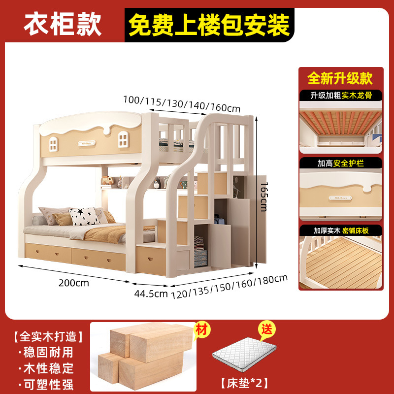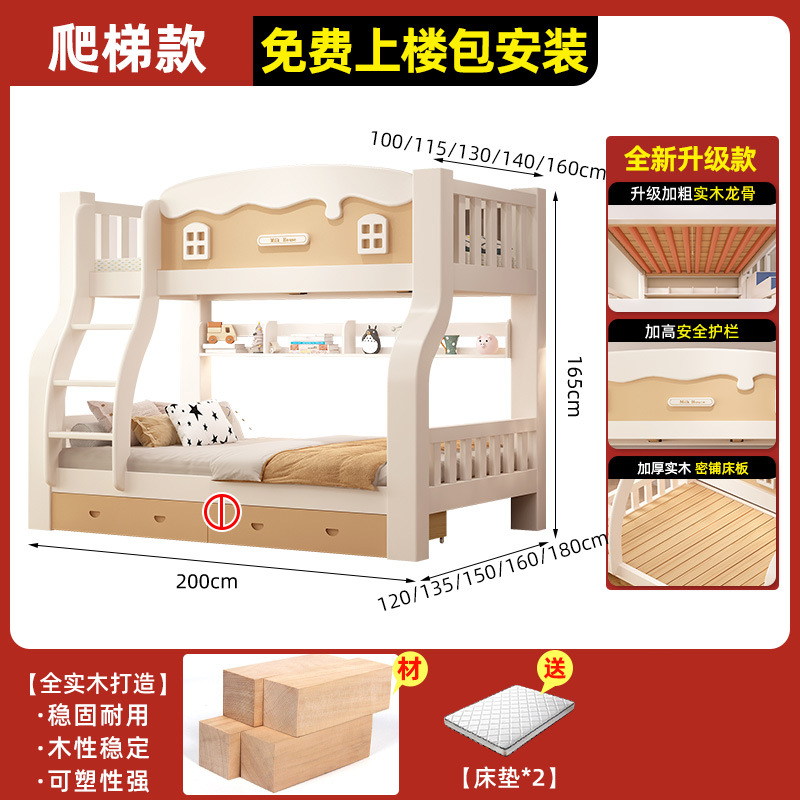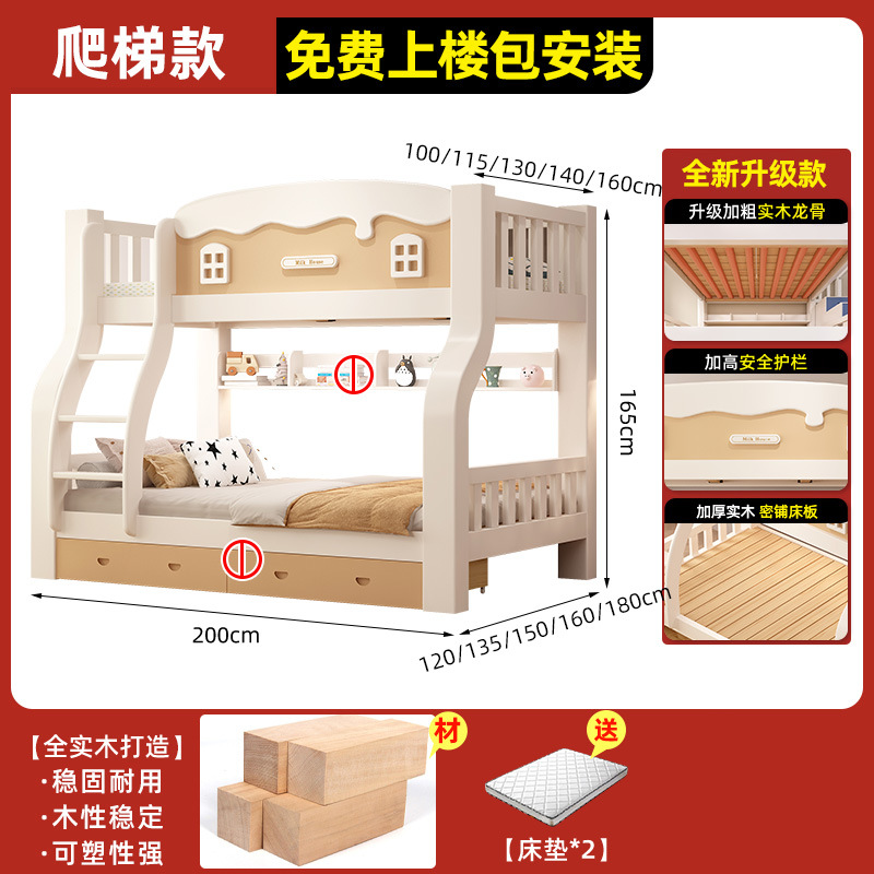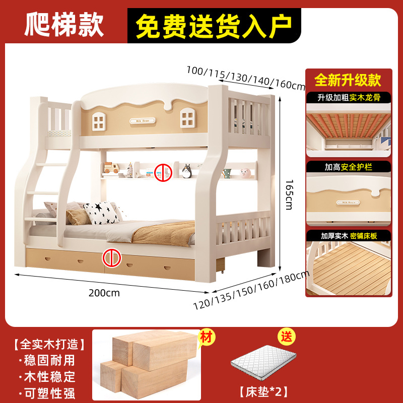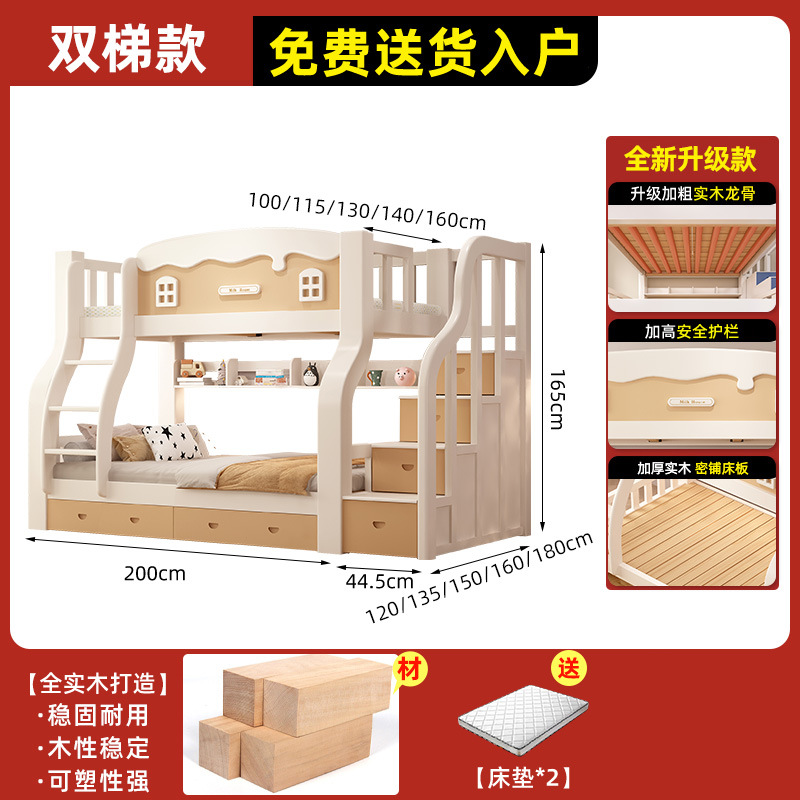 • [크림 곡선 다리 모델] 이중 사다리 모델 + 책장 + 이중 서랍, 무료 매트리스*2