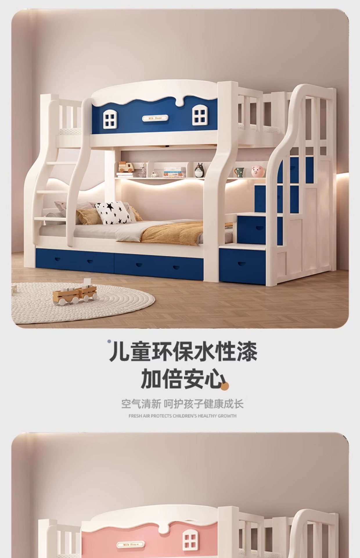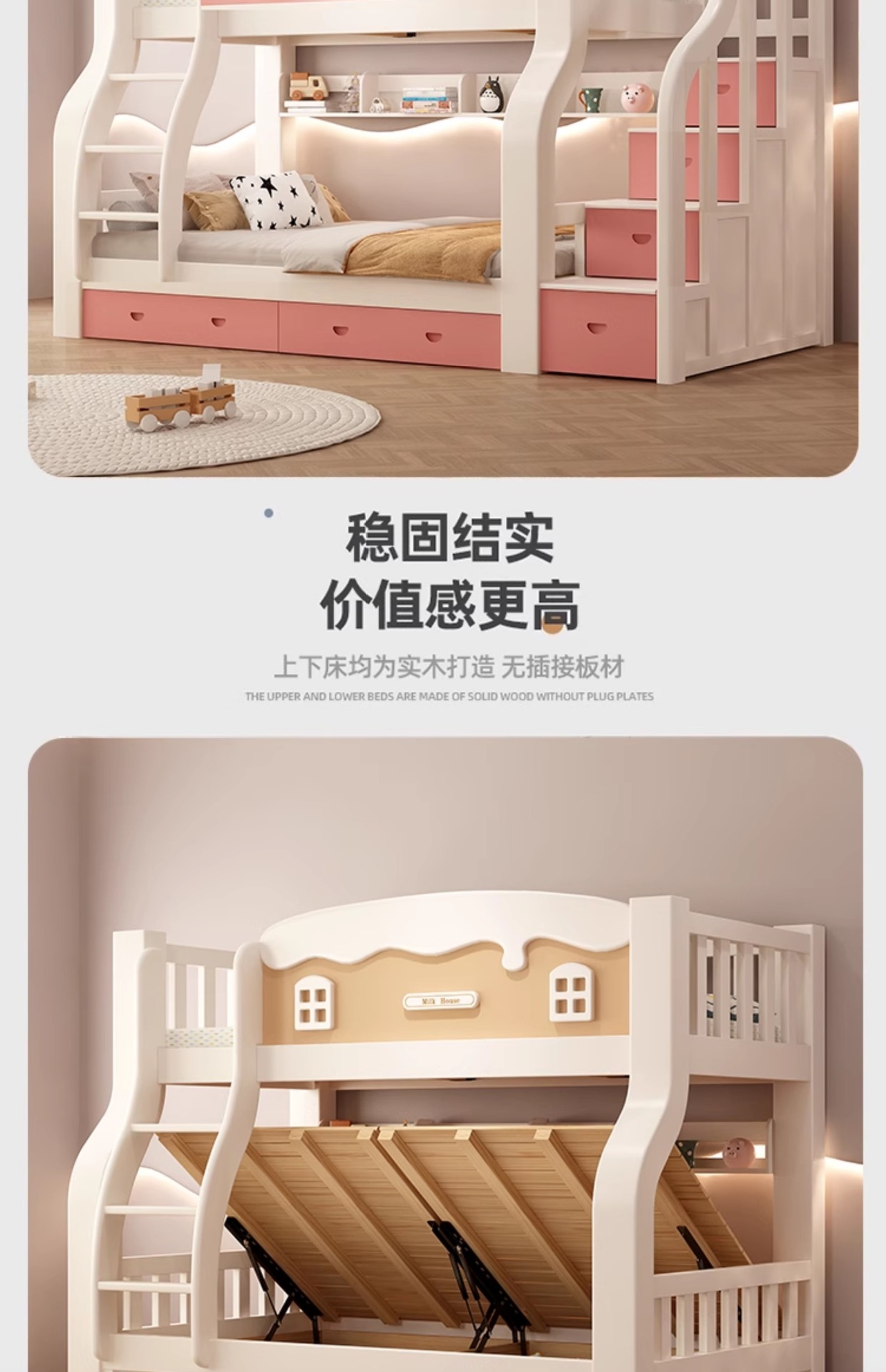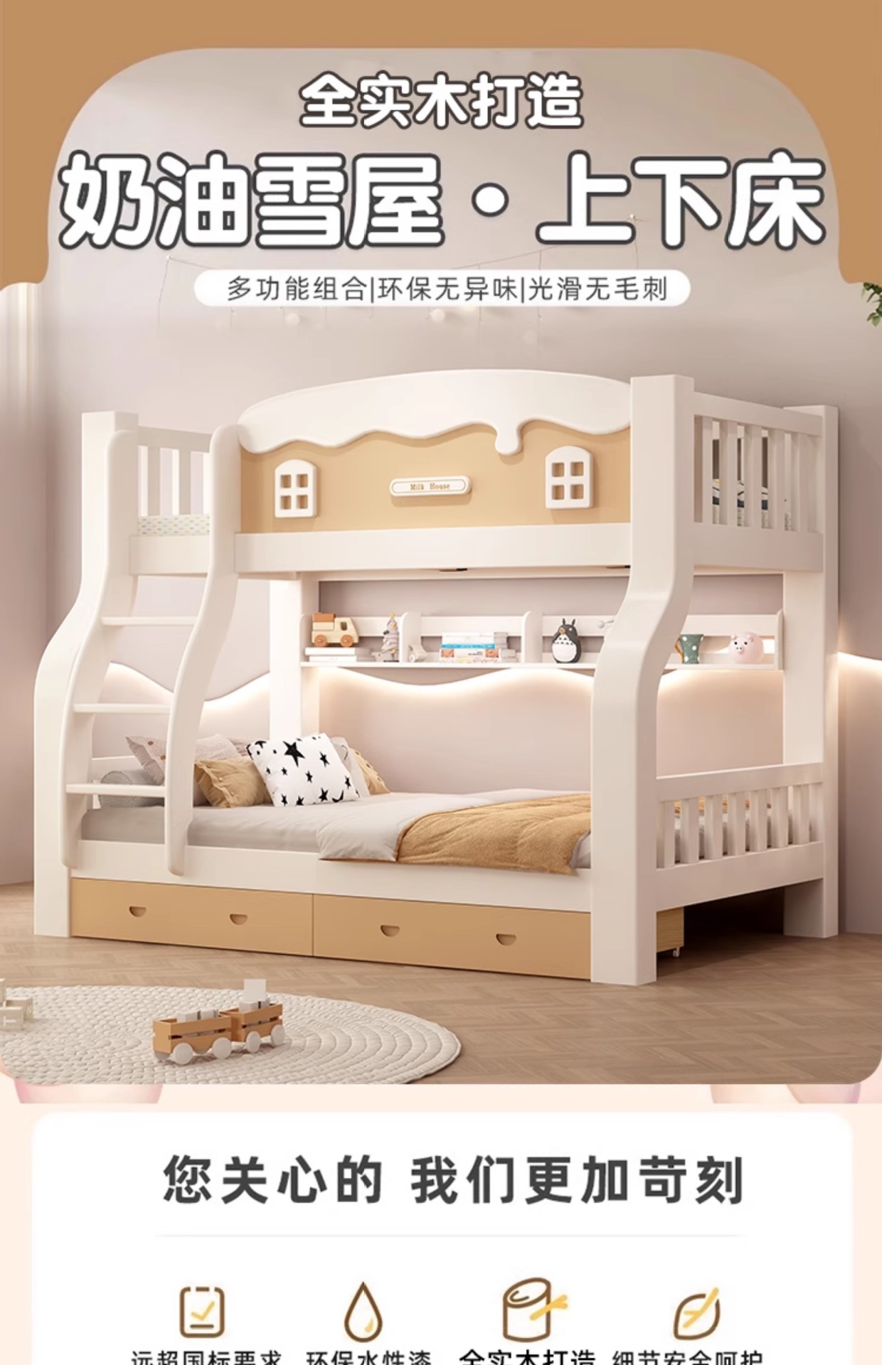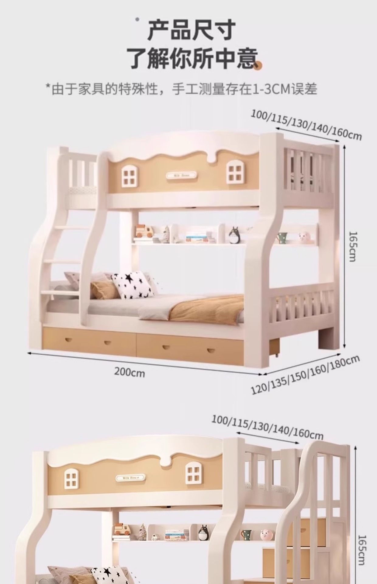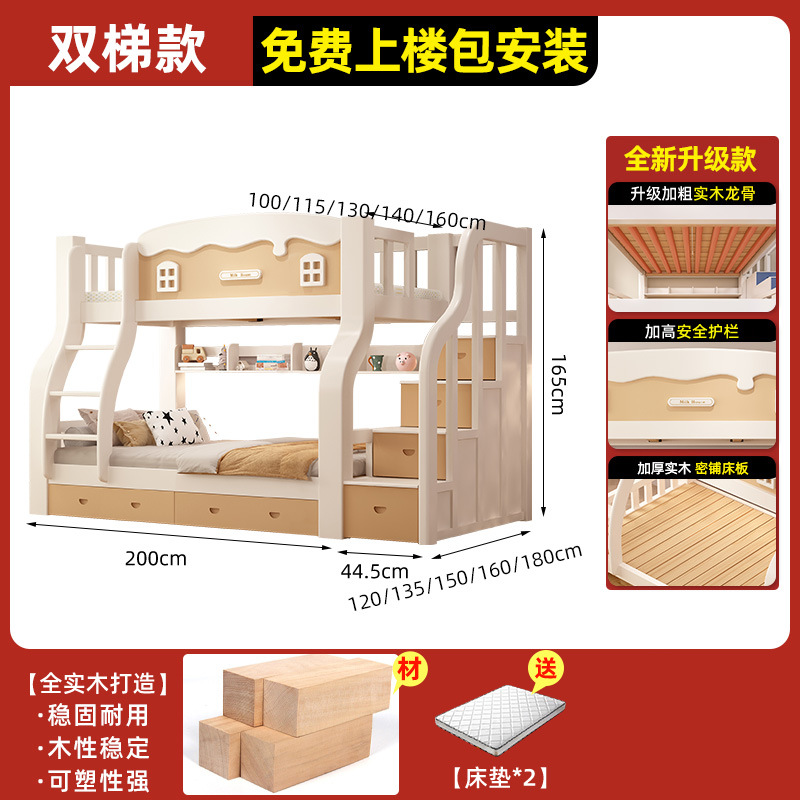 • [크림 곡선 다리 모델] 이중 사다리 모델 + 책장 + 이중 서랍, 무료 매트리스*2(설치 포함)