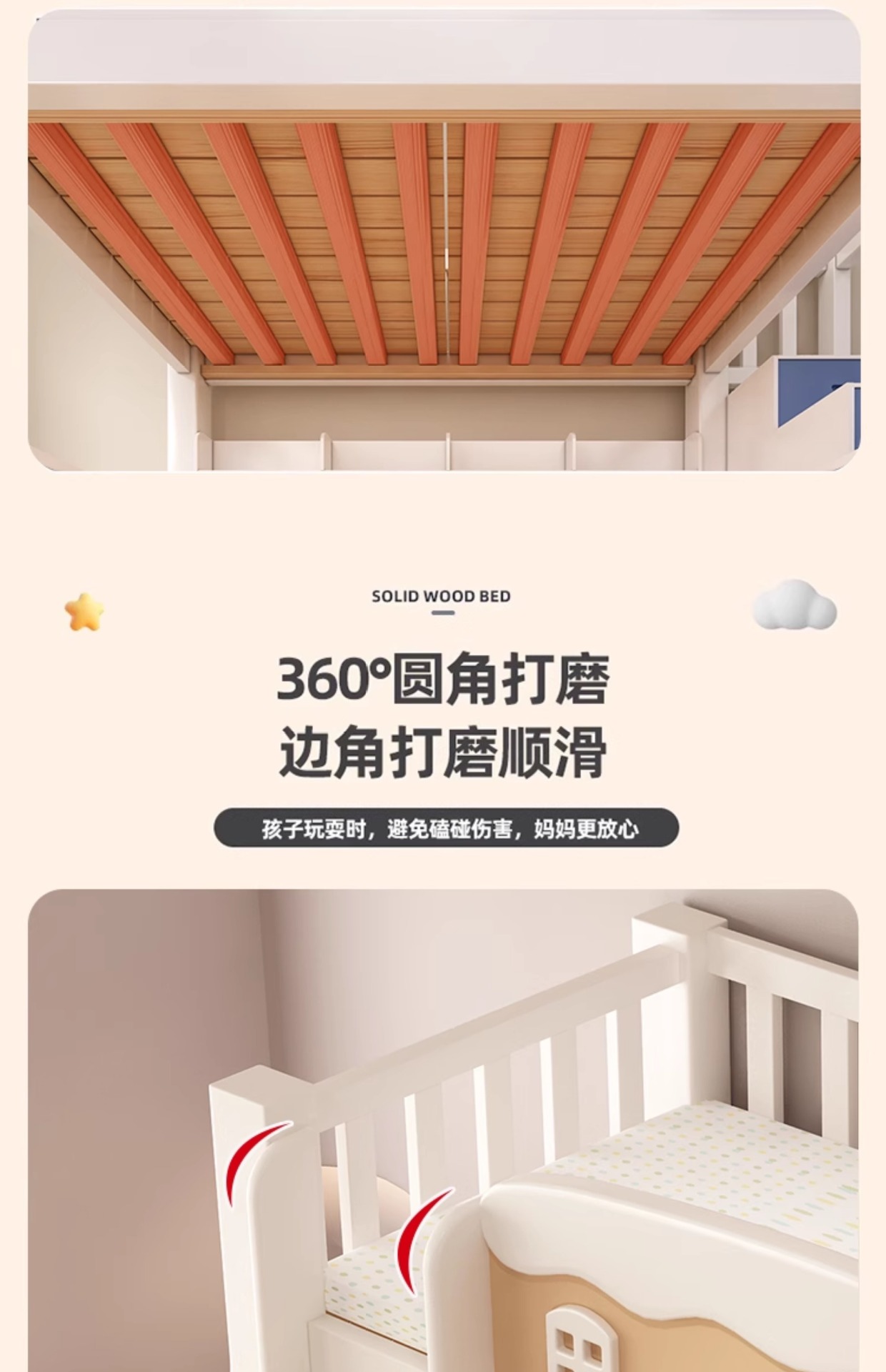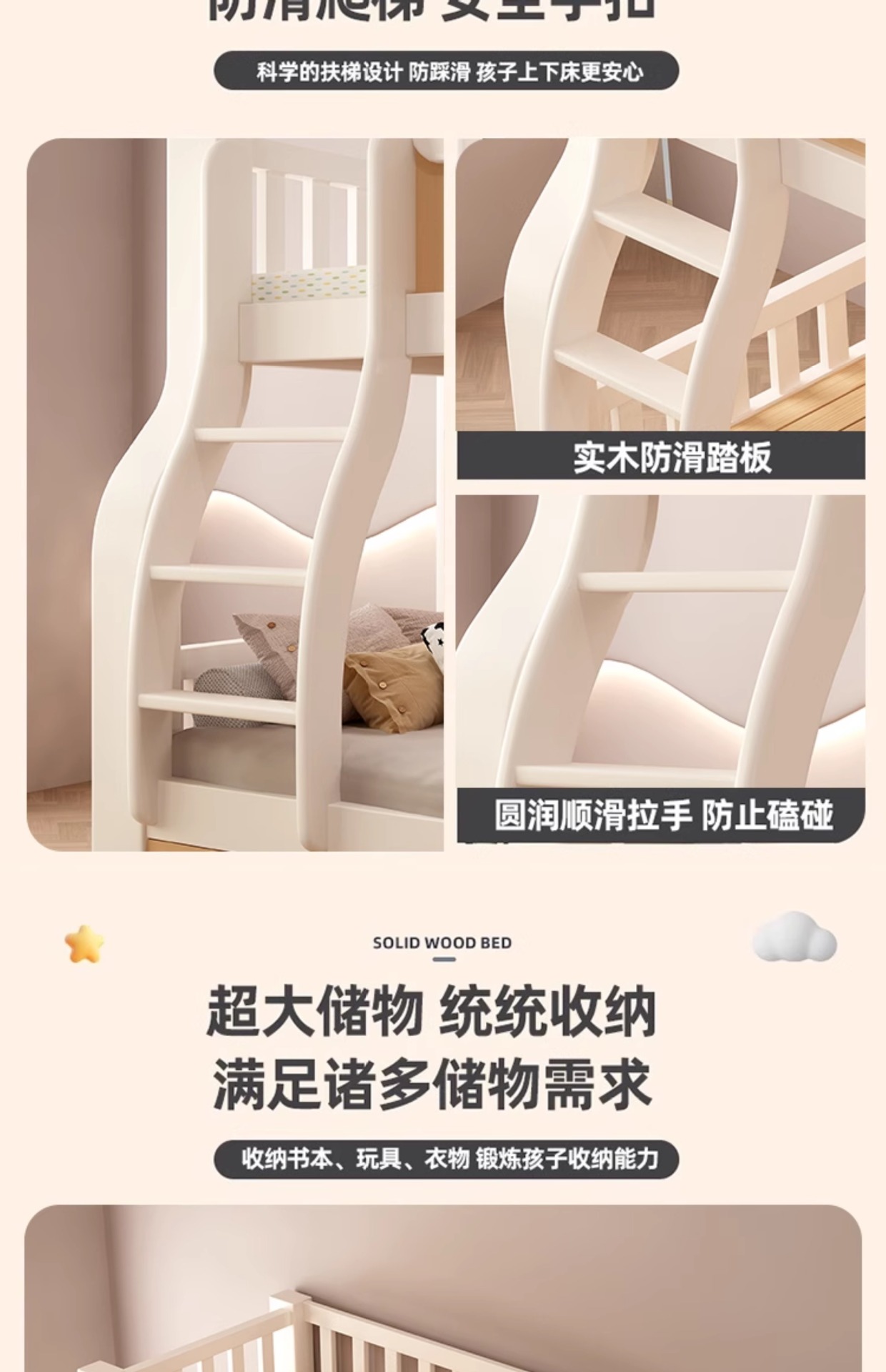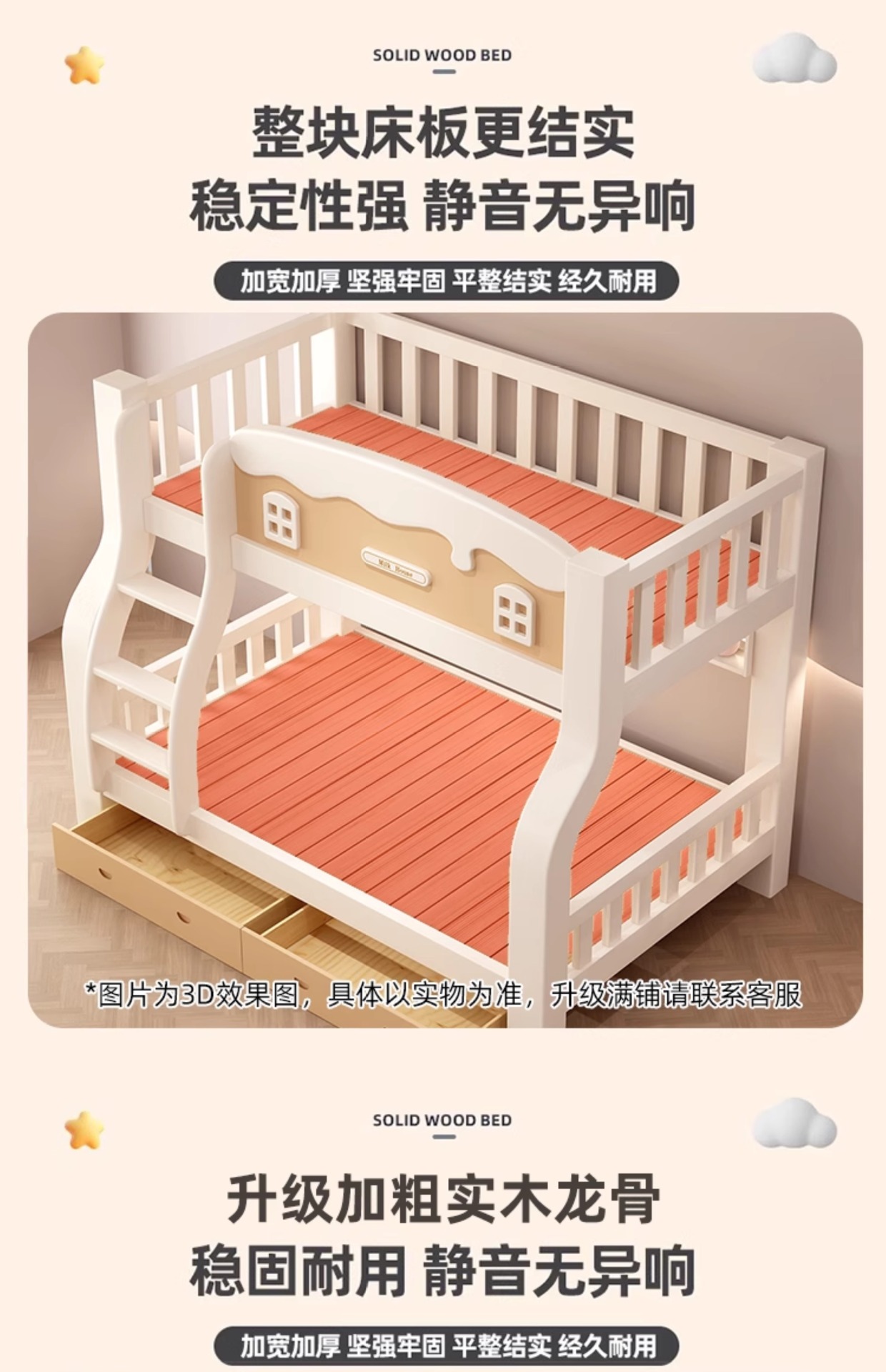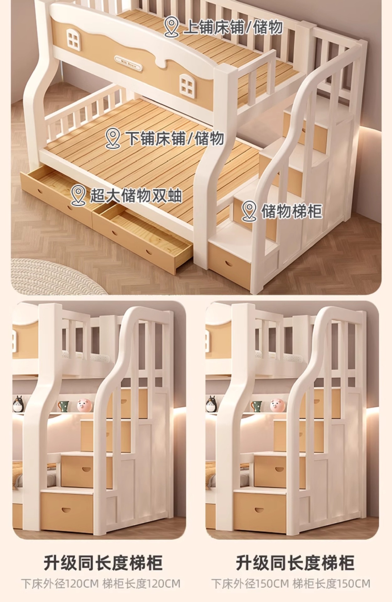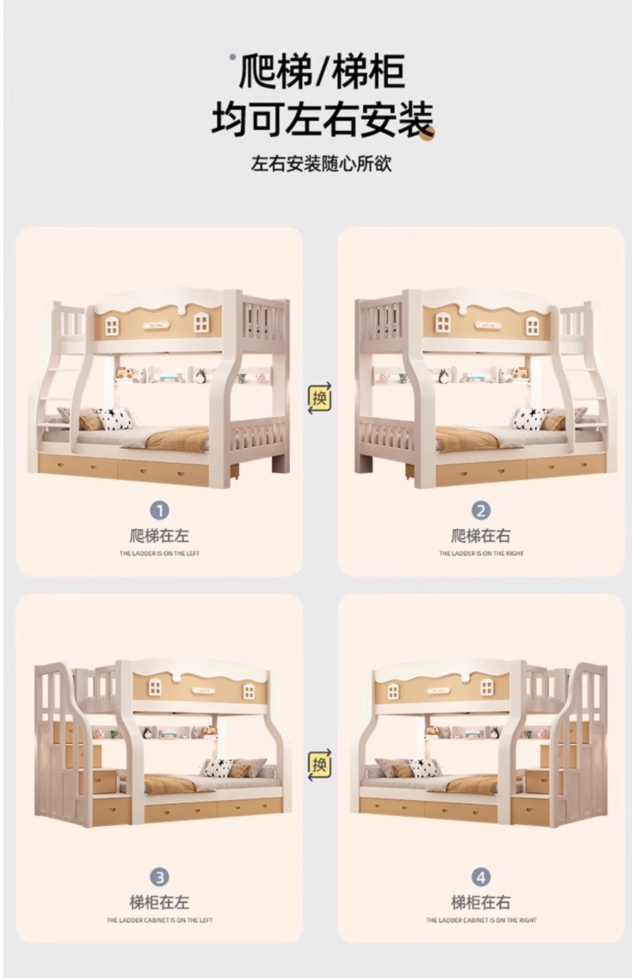 • [크림 곡선 다리 모델] 사다리 모델 + 서랍, 무료 매트리스*2(설치 포함)