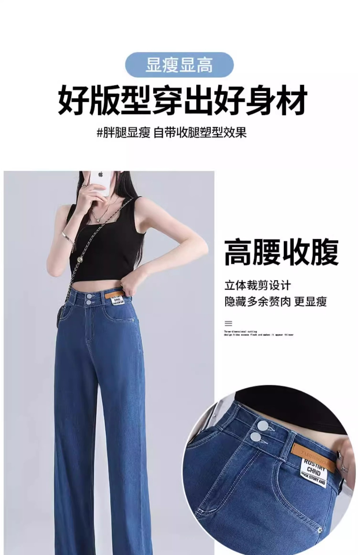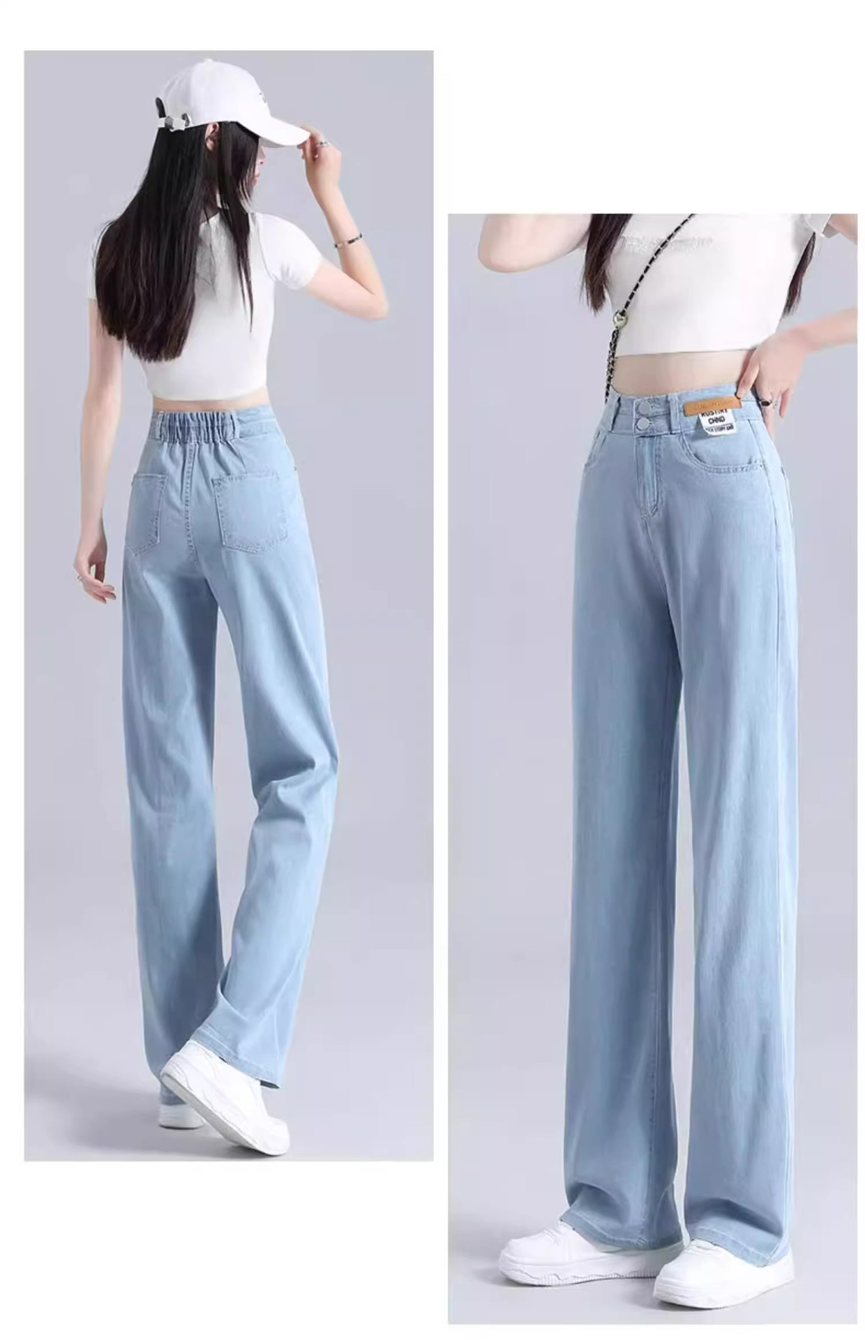 여름용 얇은 텐셀 청바지 여성용 얇은 2025 새로운 스타일 스트레이트 레그 스몰 아이스 실크 와이드 레그 팬츠 여름스토어 가기