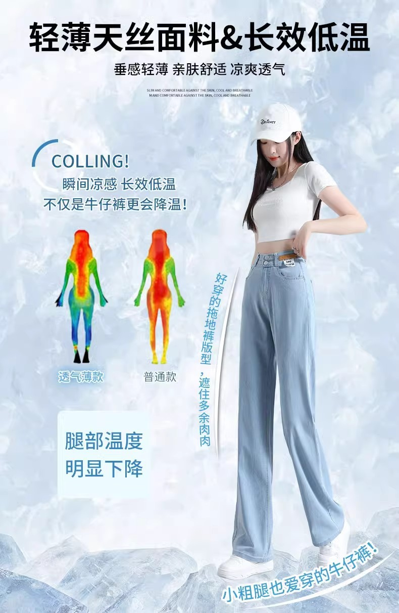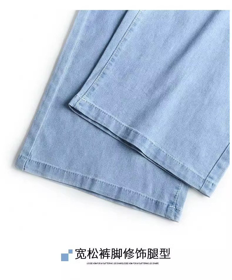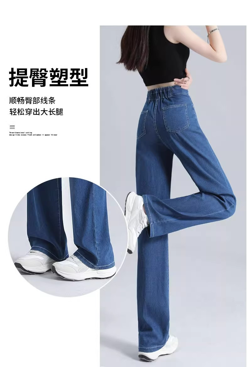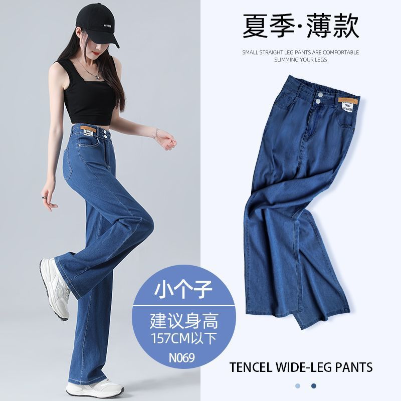 여름용 얇은 텐셀 청바지 여성용 얇은 2025 새로운 스타일 스트레이트 레그 스몰 아이스 실크 와이드 레그 팬츠 여름