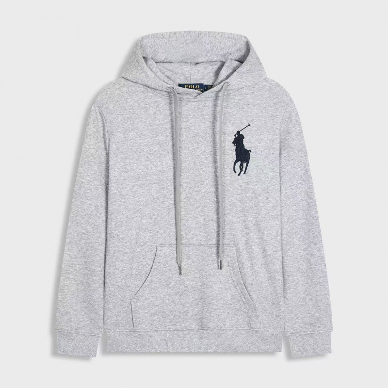 • 네이비 블루 라지 라벨이 있는 그레이 후드 모델