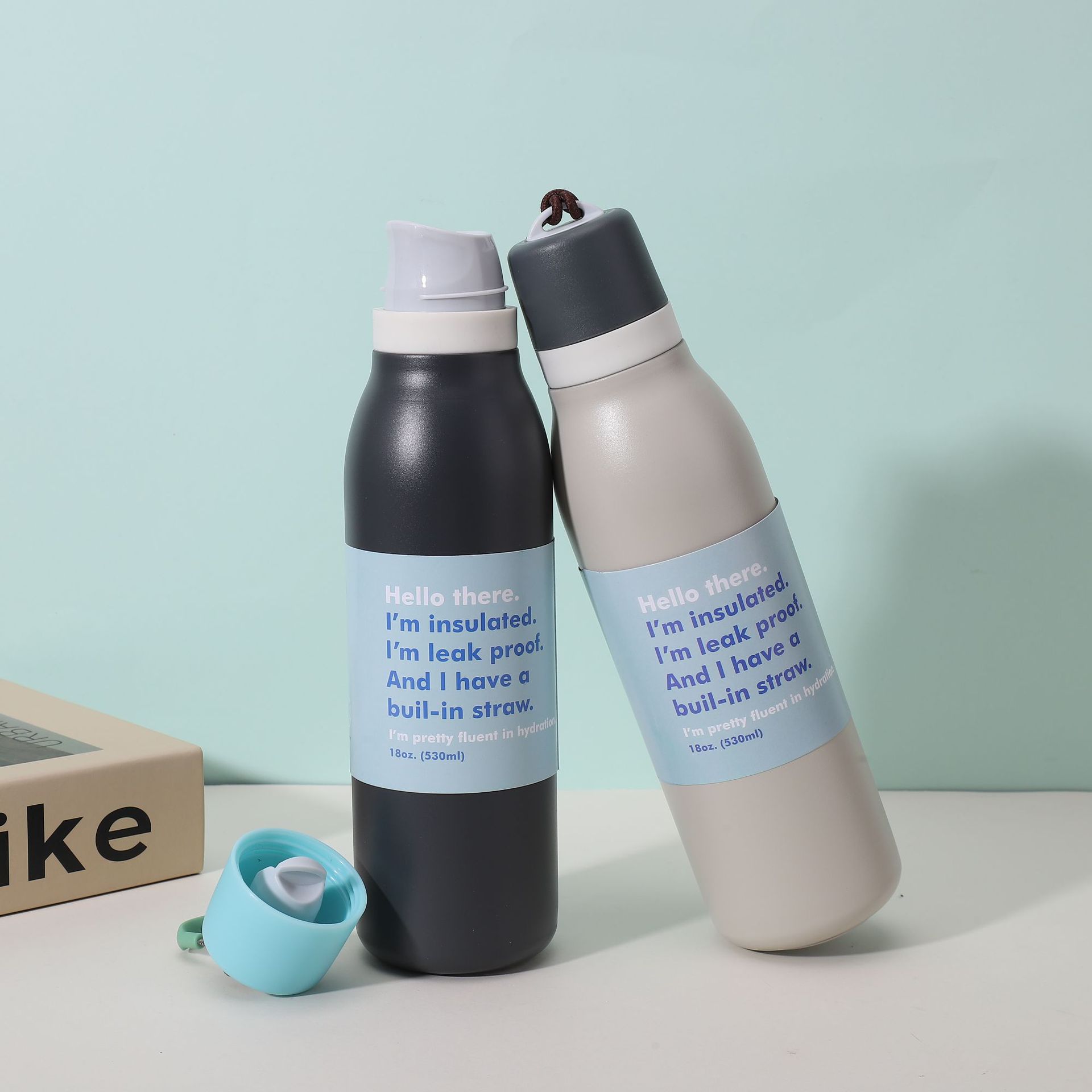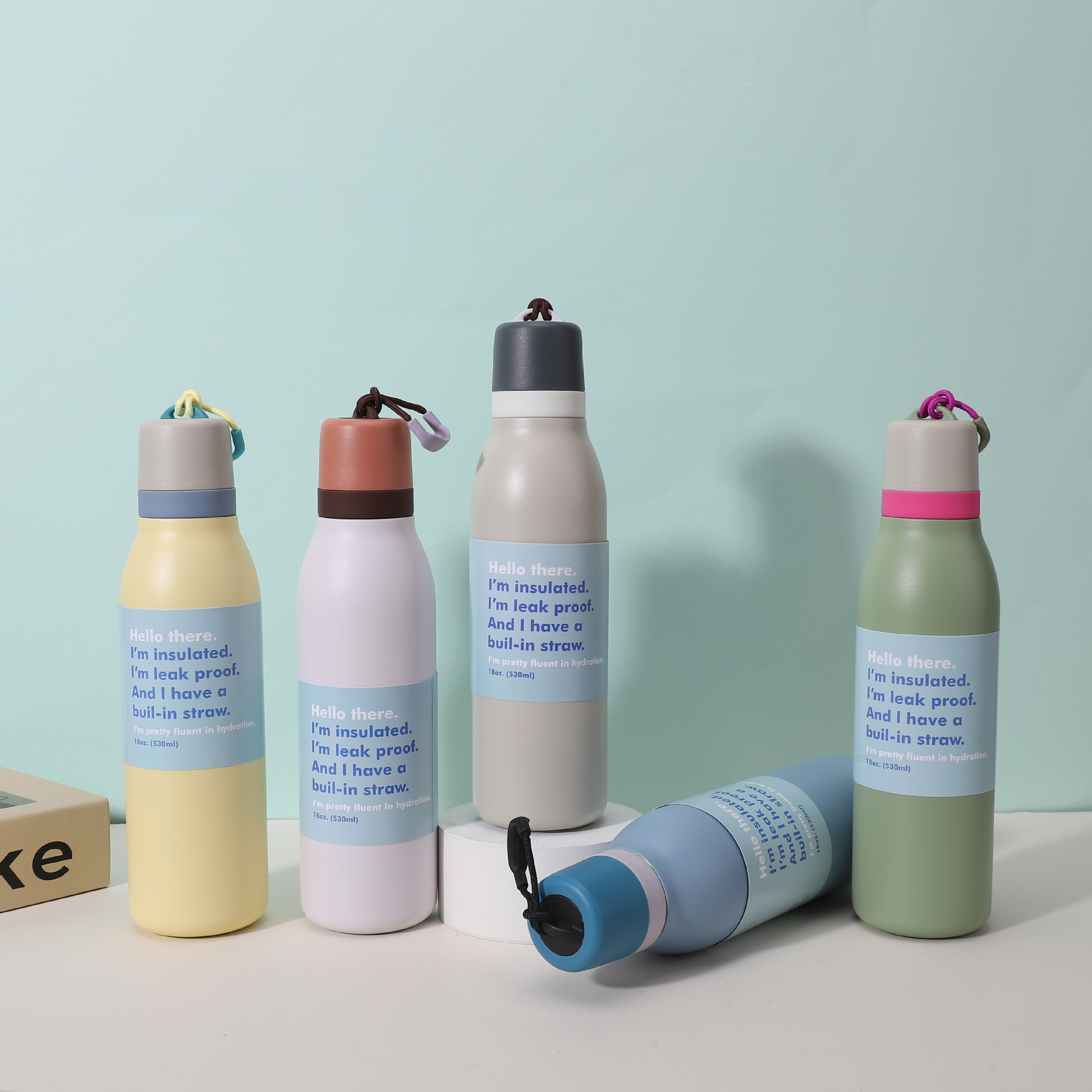 국경 간 간단한 로프 304 스테인레스 스틸 절연 컵 대용량 스포츠 병 야외 휴대용 남성과 여성 등산 물병