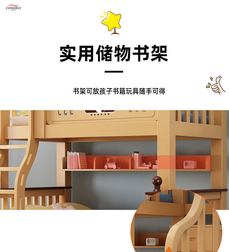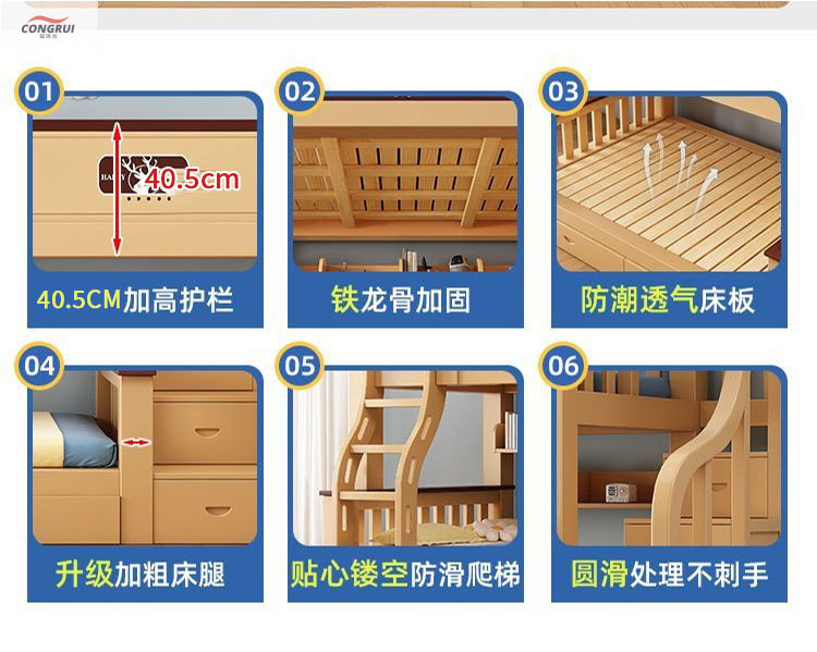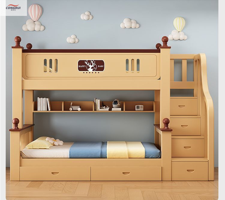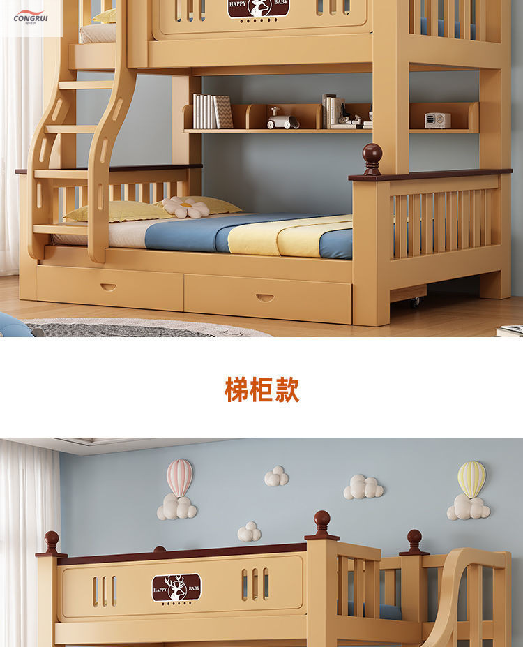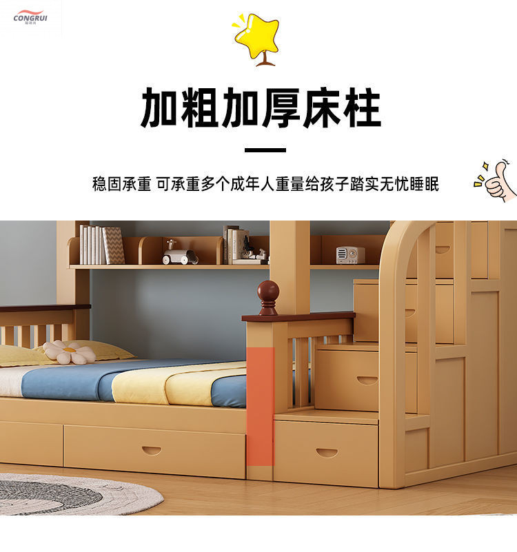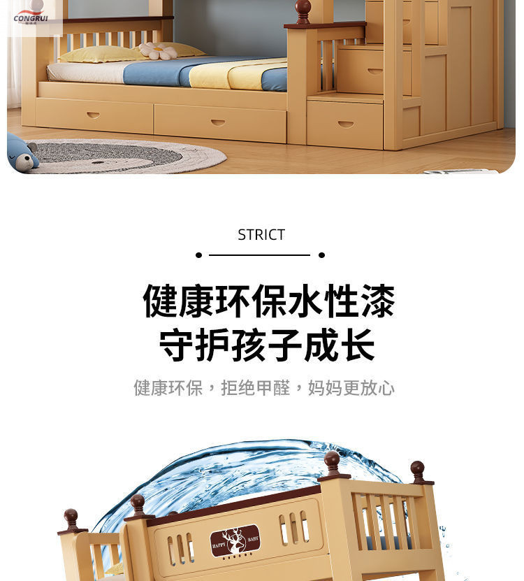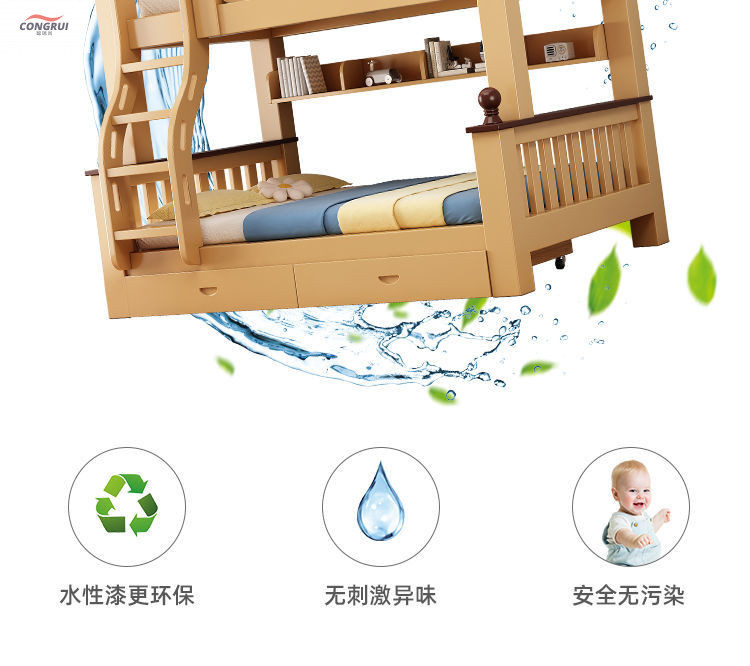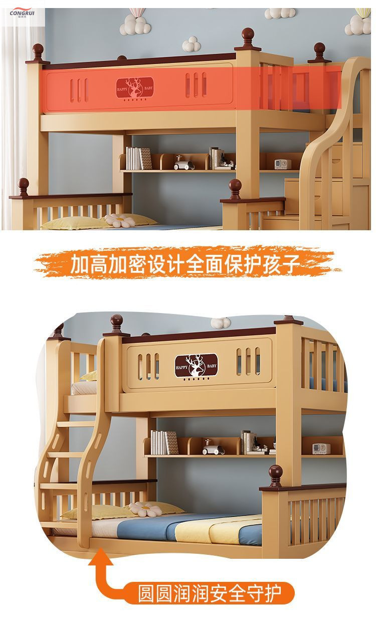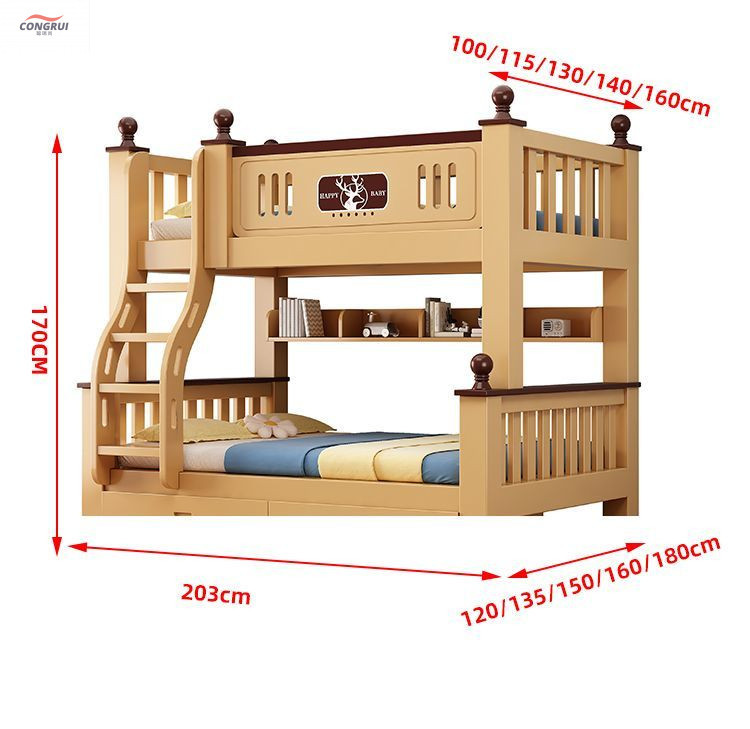 Congrui Shang 소나무 이층 침대, 모든 단단한 나무 어린이 침대, 높낮이 침대, 작은 크기의 이층 침대