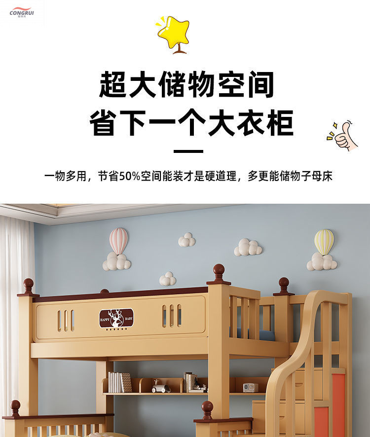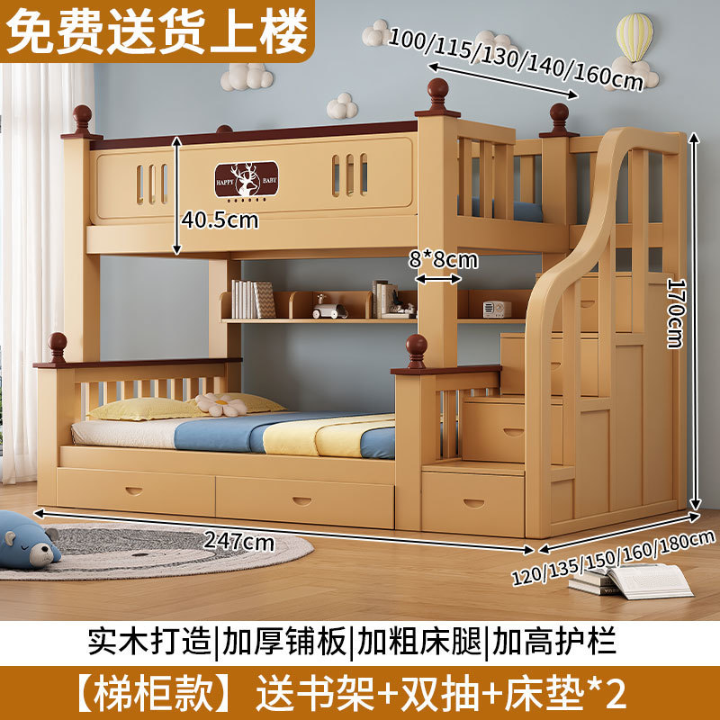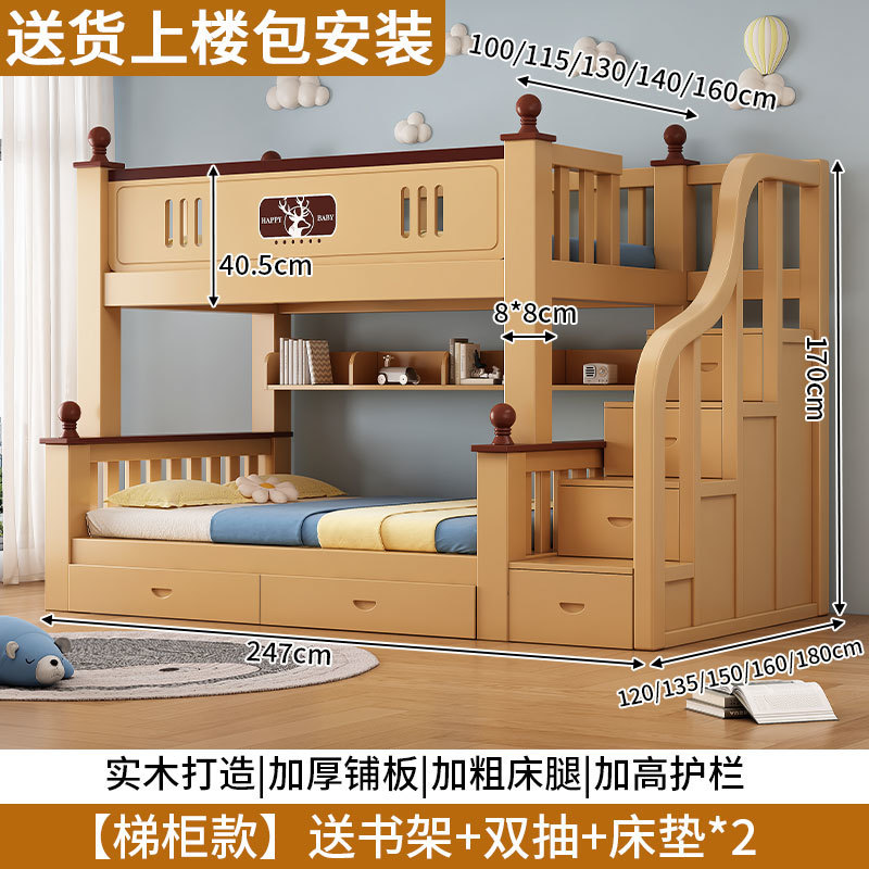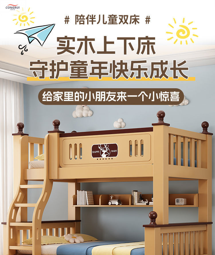 Congrui Shang 소나무 이층 침대, 모든 단단한 나무 어린이 침대, 높낮이 침대, 작은 크기의 이층 침대스토어 가기