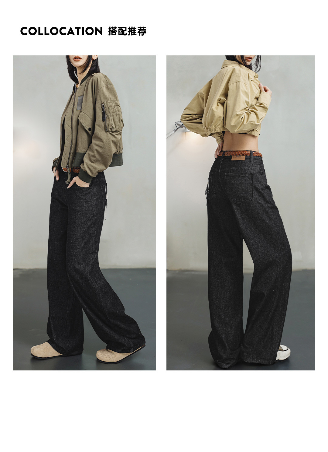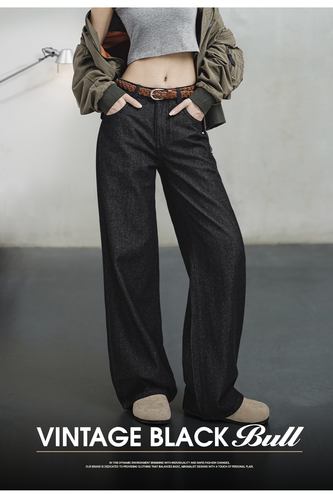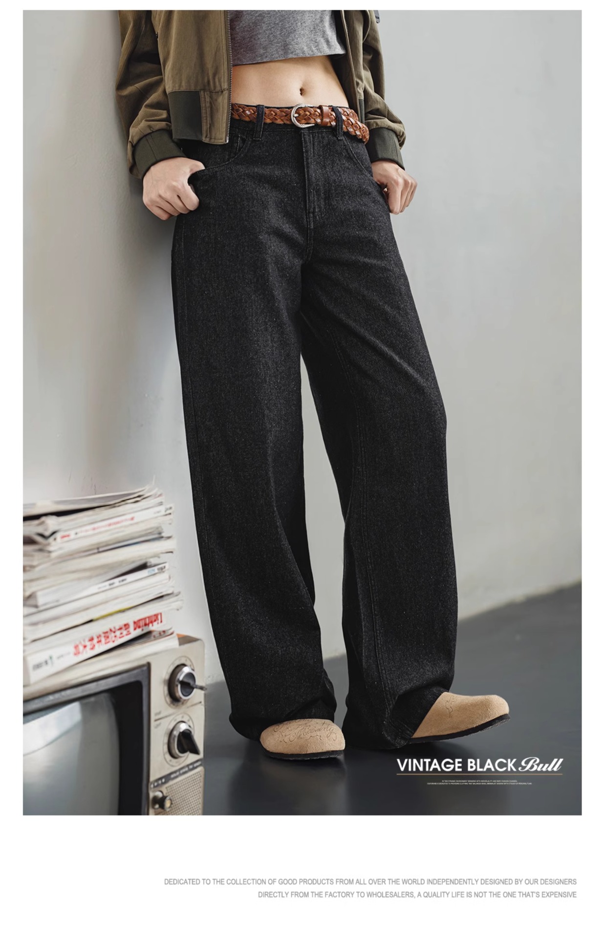 Madden 아메리칸 레트로 블랙 청바지 스트레이트 캐주얼 바지 루즈 슬리밍 와이드 레그 팬츠 바닥 길이 바지 봄, 가을 여성스토어 가기