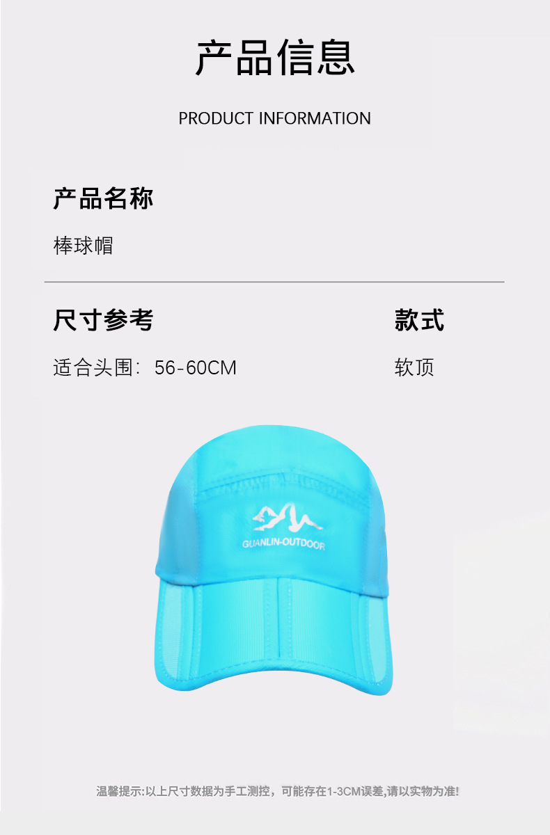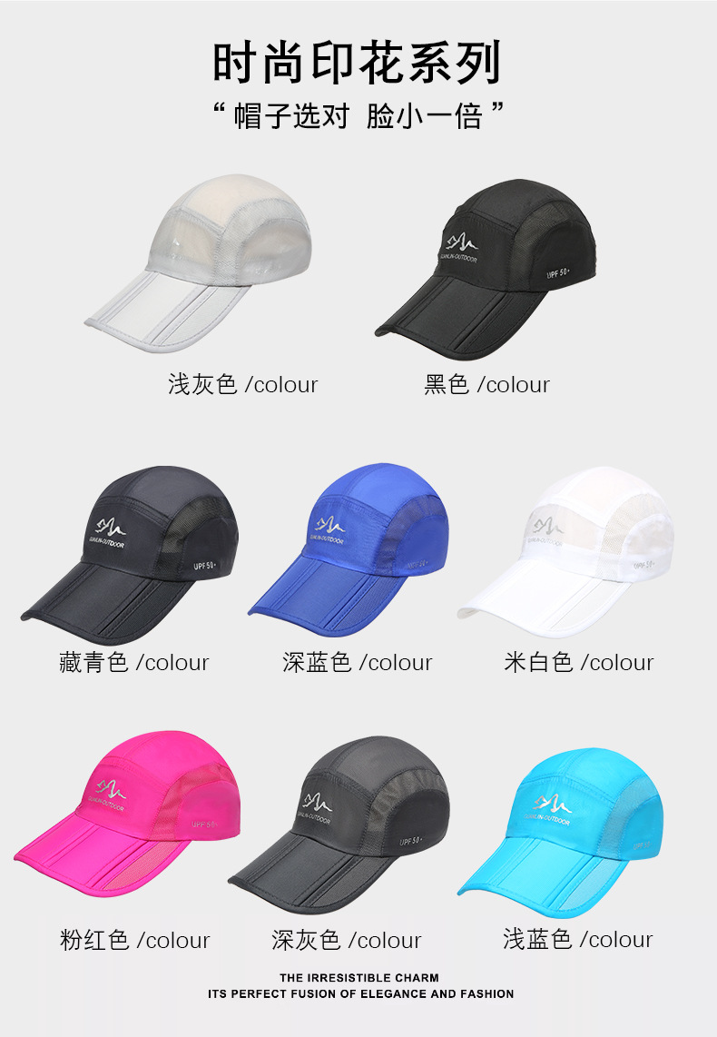여름용 얇은 모자, 접이식 속건성 통기성 야구 모자, 야외 낚시 및 등산 여행 모자