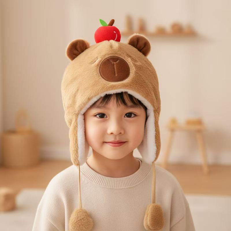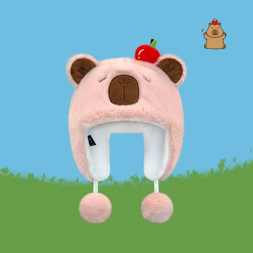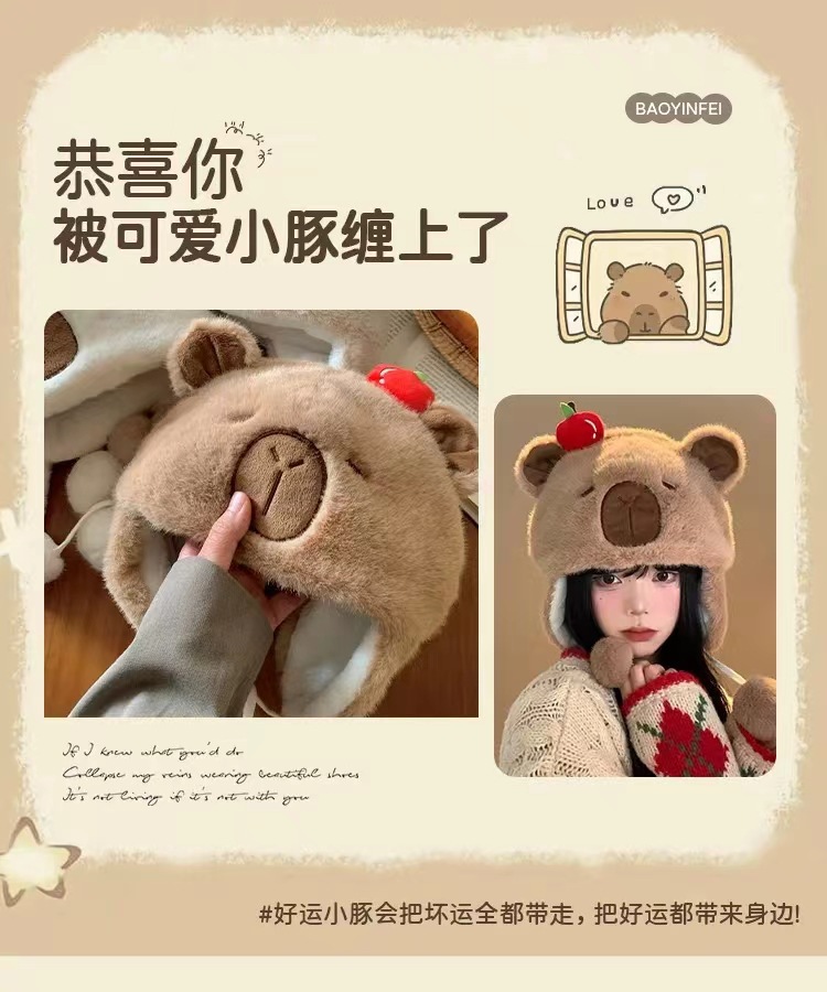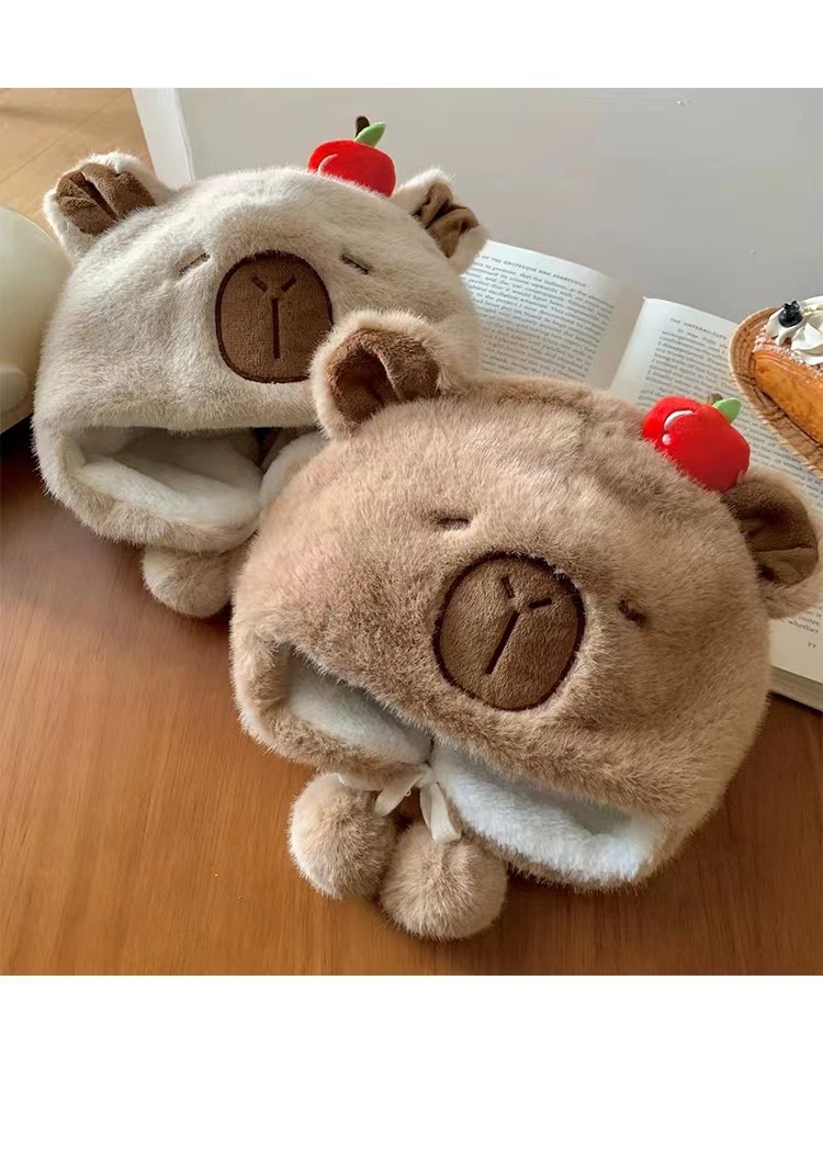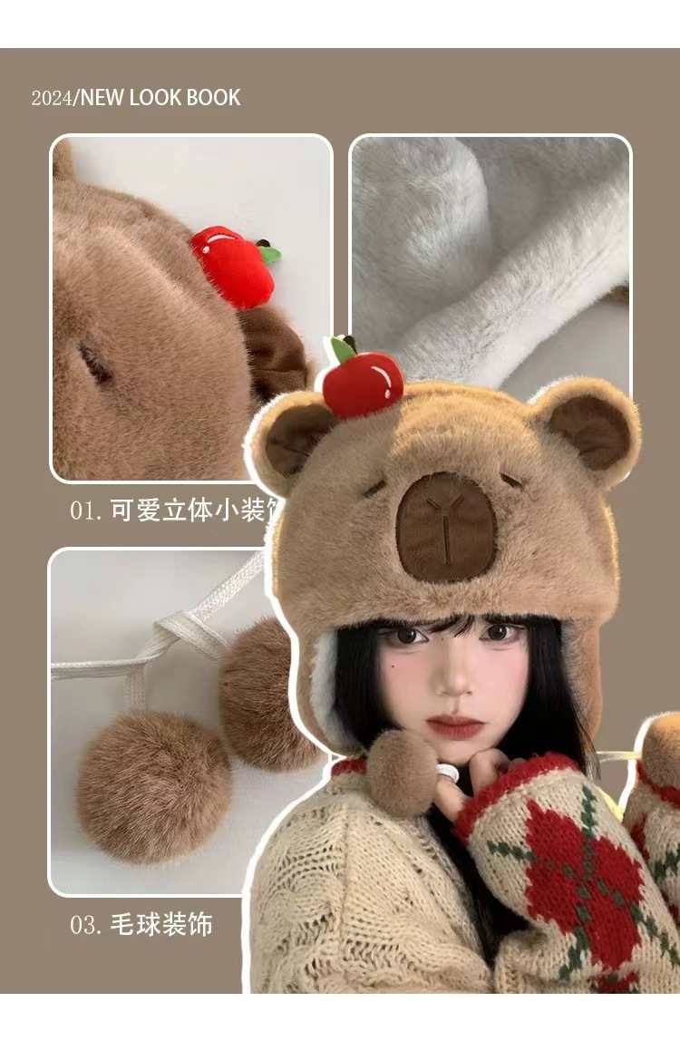 가을과 겨울 사이클링을위한 여성용 귀여운 만화 Kapibara 플러시 모자, 방한 모피 따뜻한 귀 보호 후드, Lei Feng 모자스토어 가기