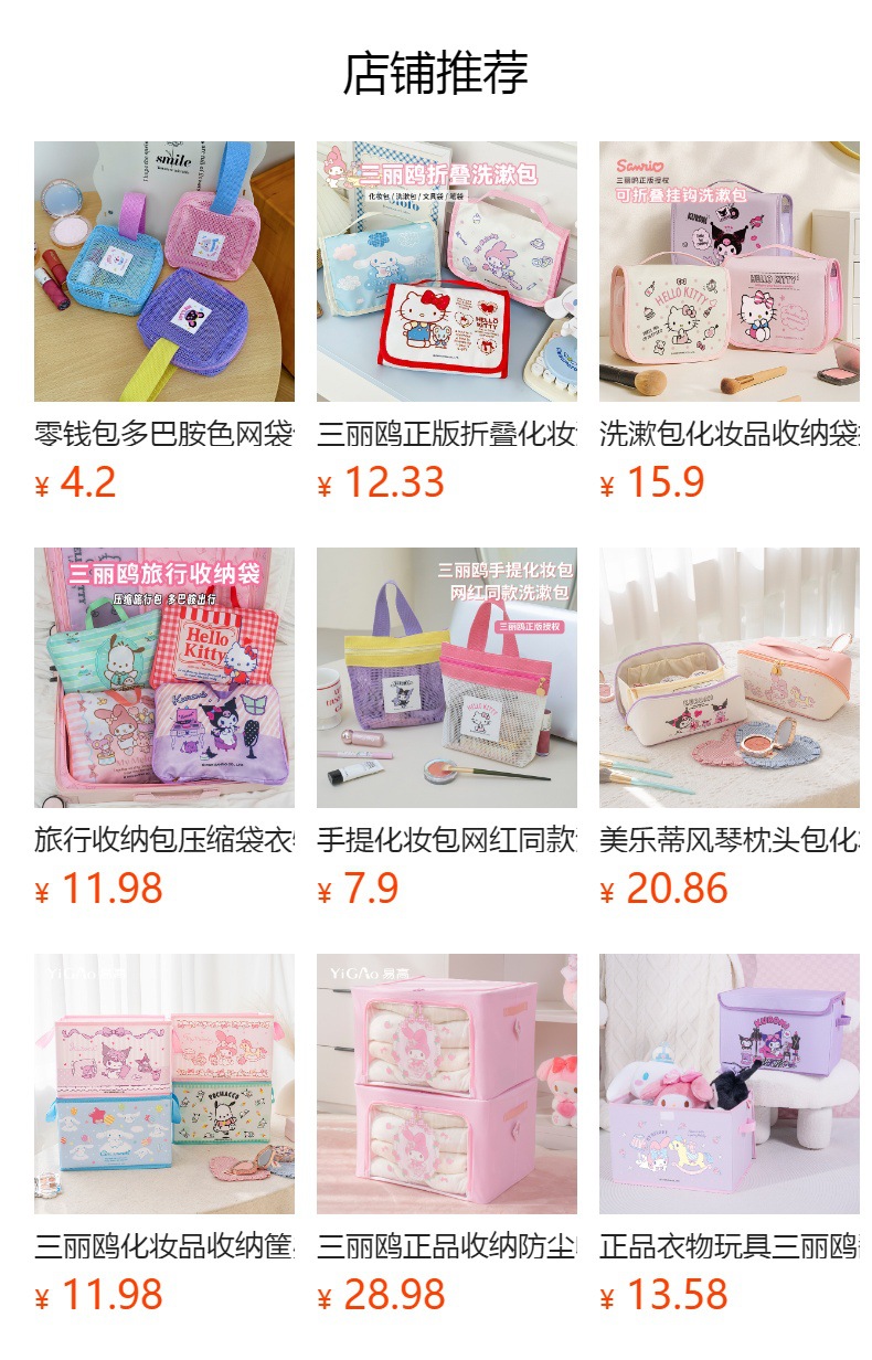 만화 수납 가방, 화장품 데이터 케이블, 휴대용 정리함, 정품 산리오 동전 지갑, 다용도스토어 가기