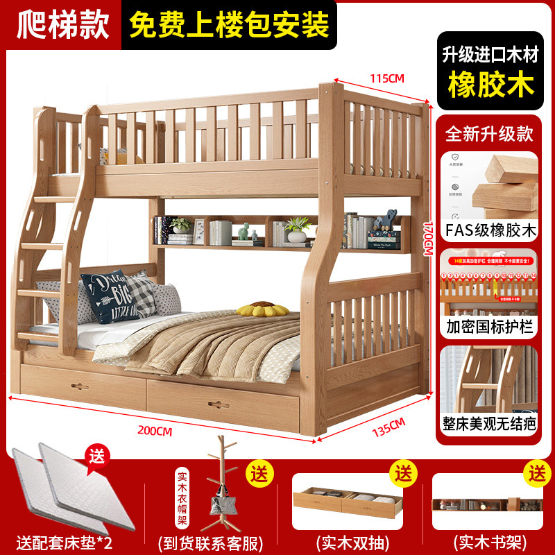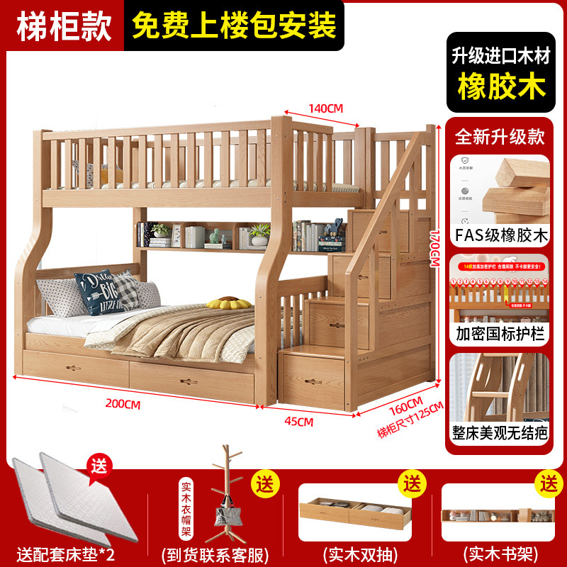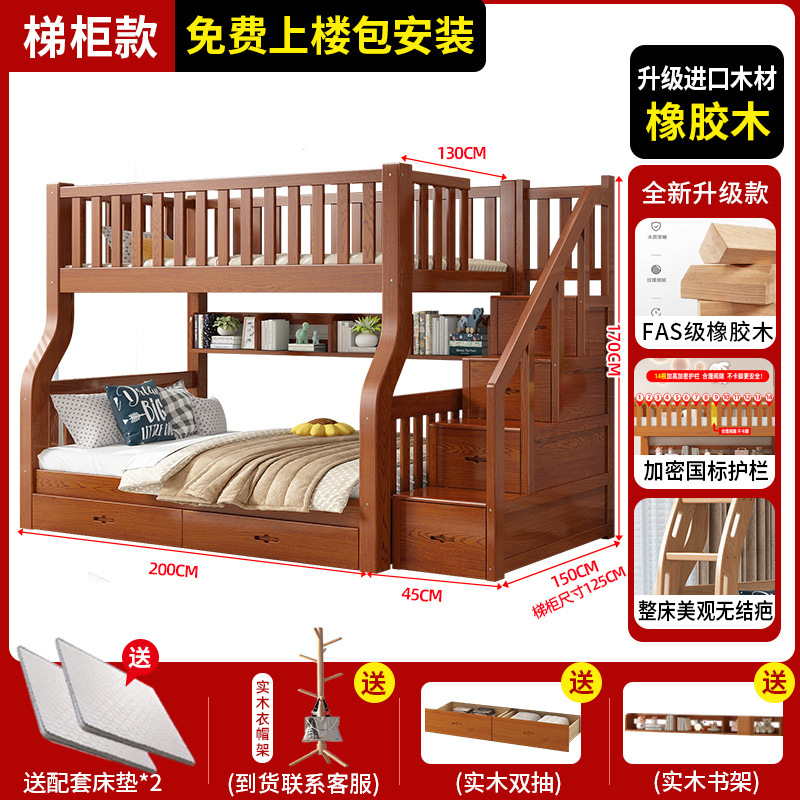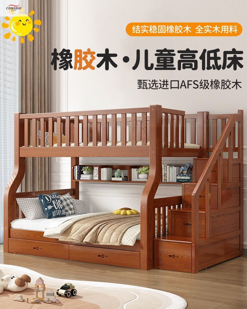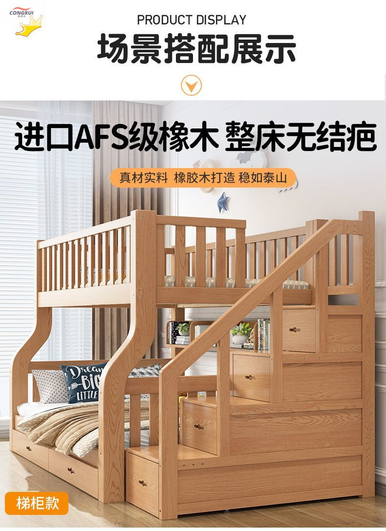 이층침대, 고무나무 이층침대, 어린이 이층침대, 높낮이침대, 다기능 소형 원목 이층침대