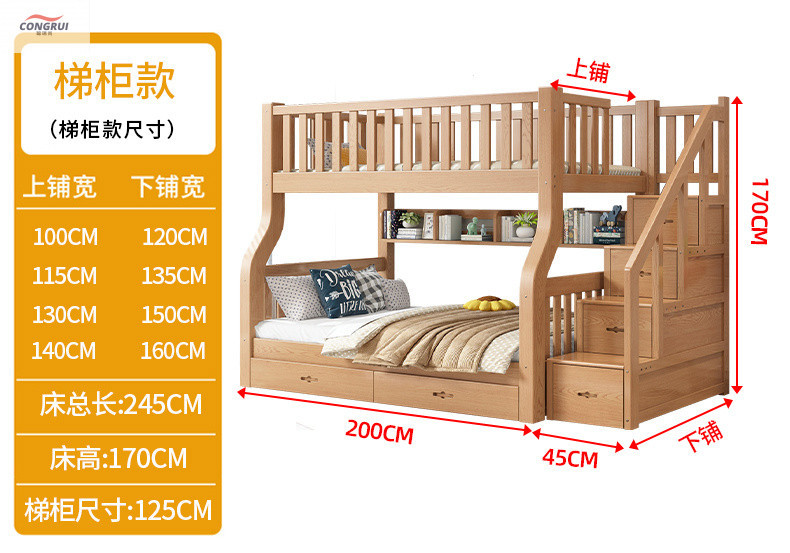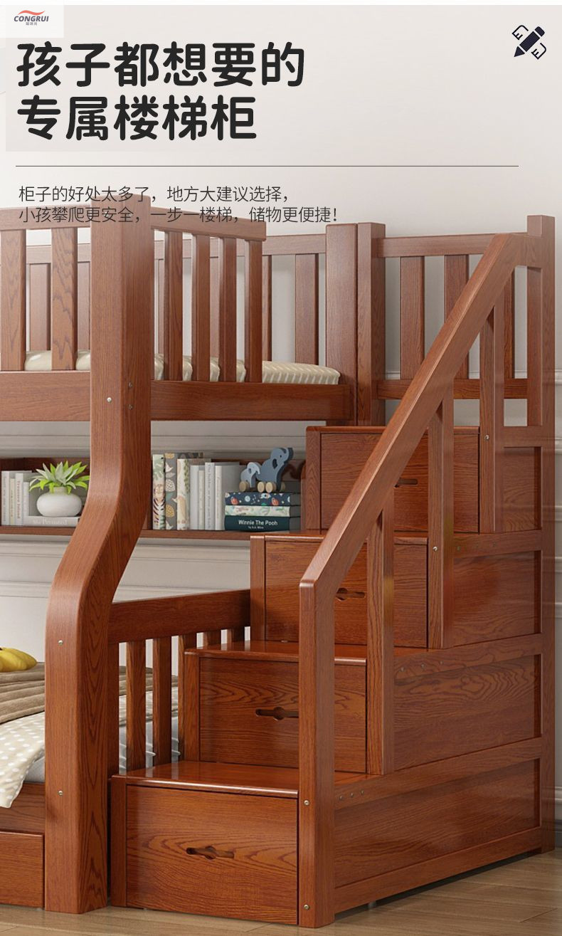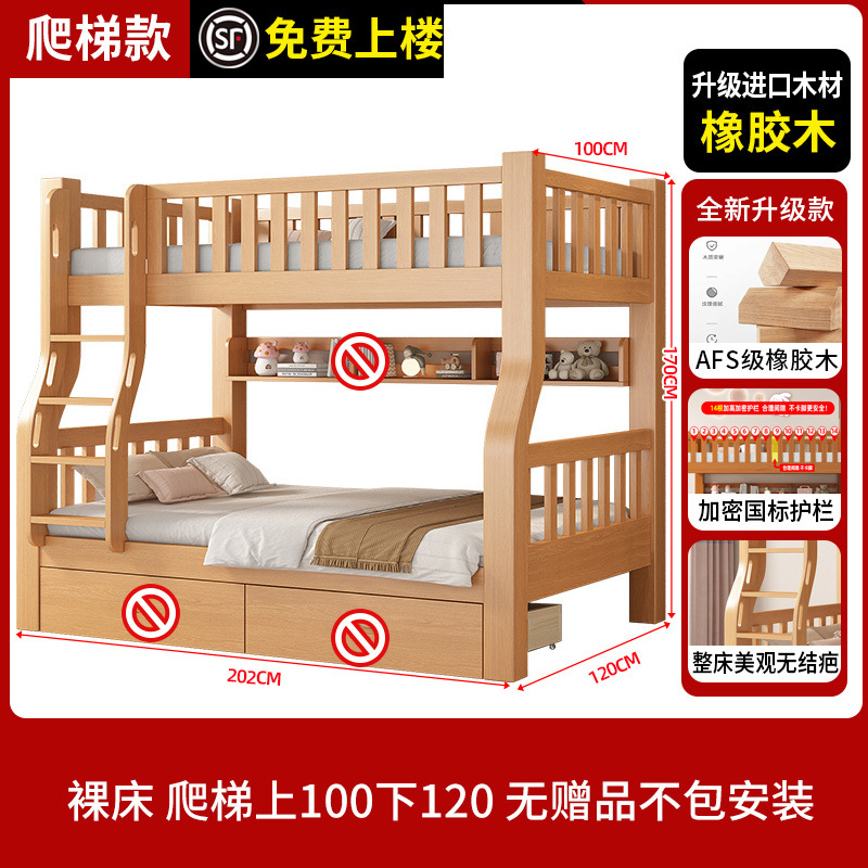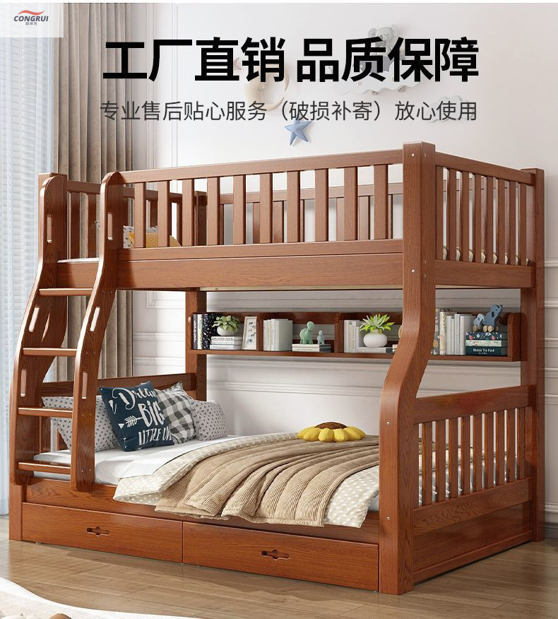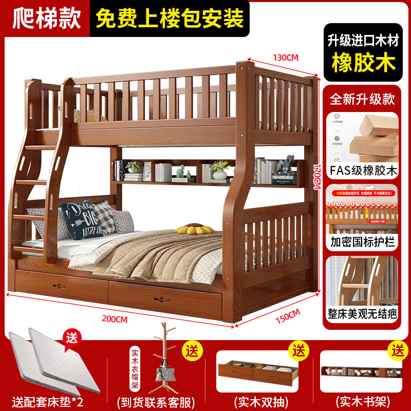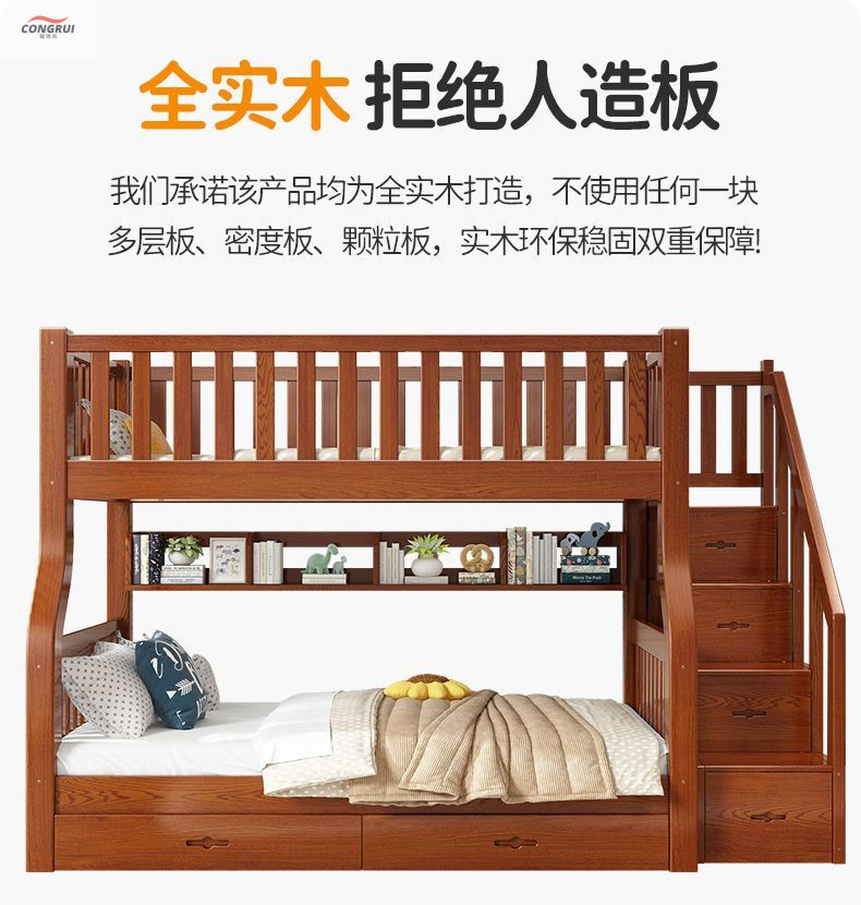 이층침대, 고무나무 이층침대, 어린이 이층침대, 높낮이침대, 다기능 소형 원목 이층침대
