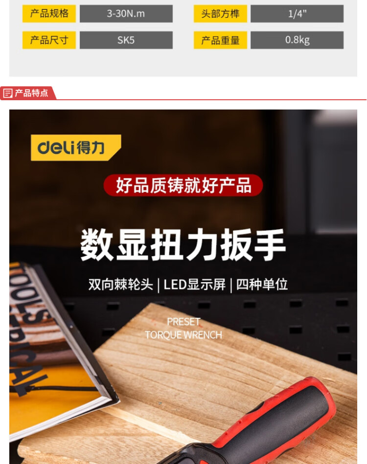 델리 DL170030S 전자 토크 렌치 3-30N.m 토크 렌치 토크는 양방향으로 조절 가능스토어 가기