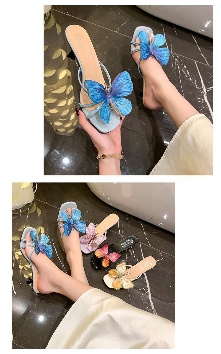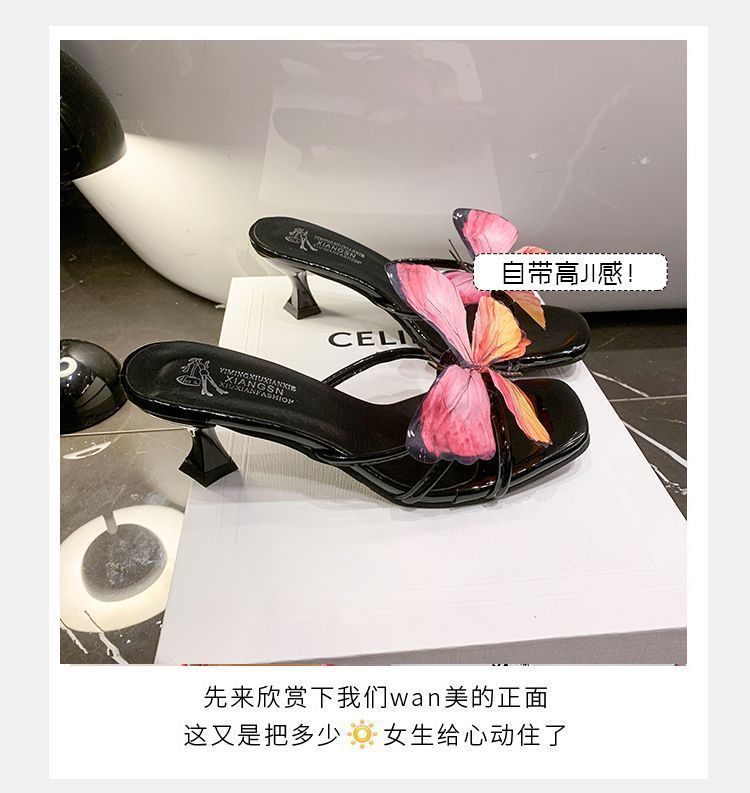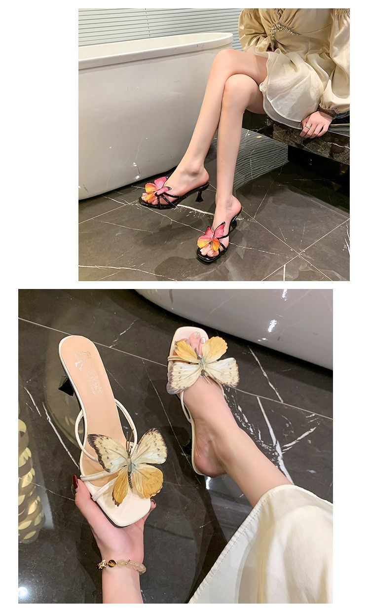 프렌치 스타일 샌들, 패셔너블한 휴가용 하이힐, 틈새 디자인, 2025년 여름 아우터용 여성용 신형 나비 두꺼운 굽 신발스토어 가기