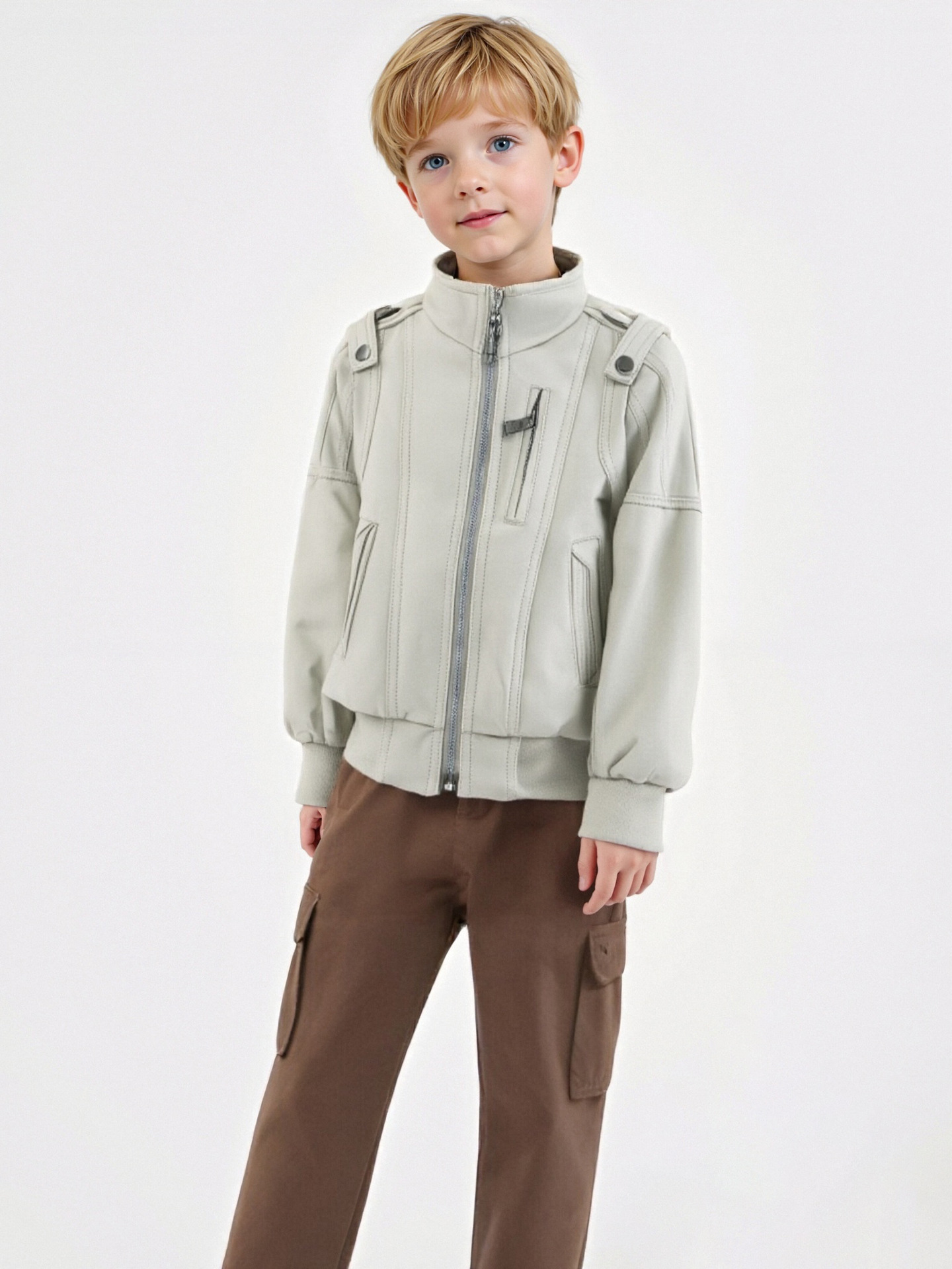 아동용 가죽 자켓 2025 봄, 가을 소년 한국어 버전 솔리드 컬러 지퍼 오토바이 자켓 아동용 스팟 대외 무역 배치