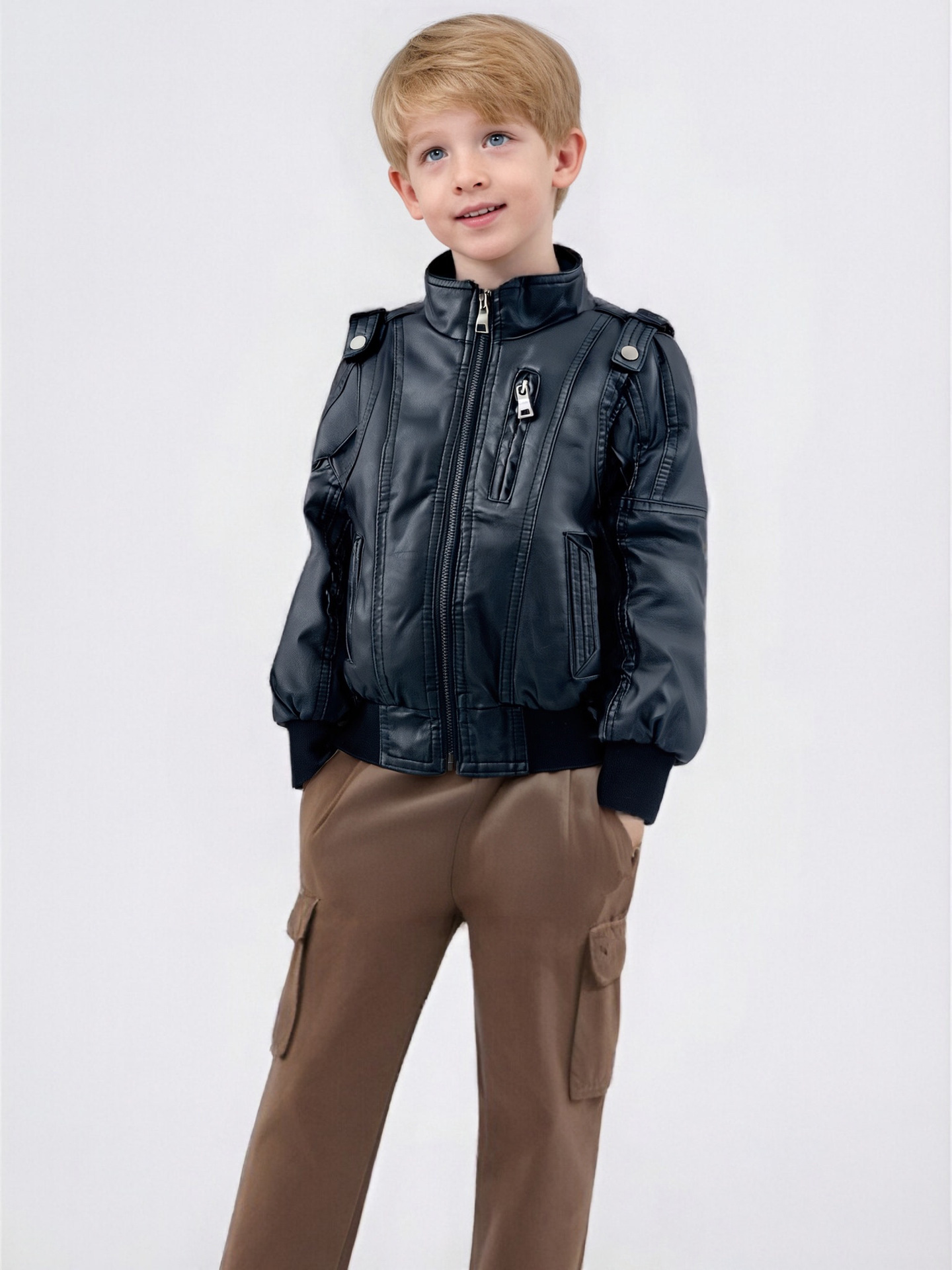 아동용 가죽 자켓 2025 봄, 가을 소년 한국어 버전 솔리드 컬러 지퍼 오토바이 자켓 아동용 스팟 대외 무역 배치스토어 가기