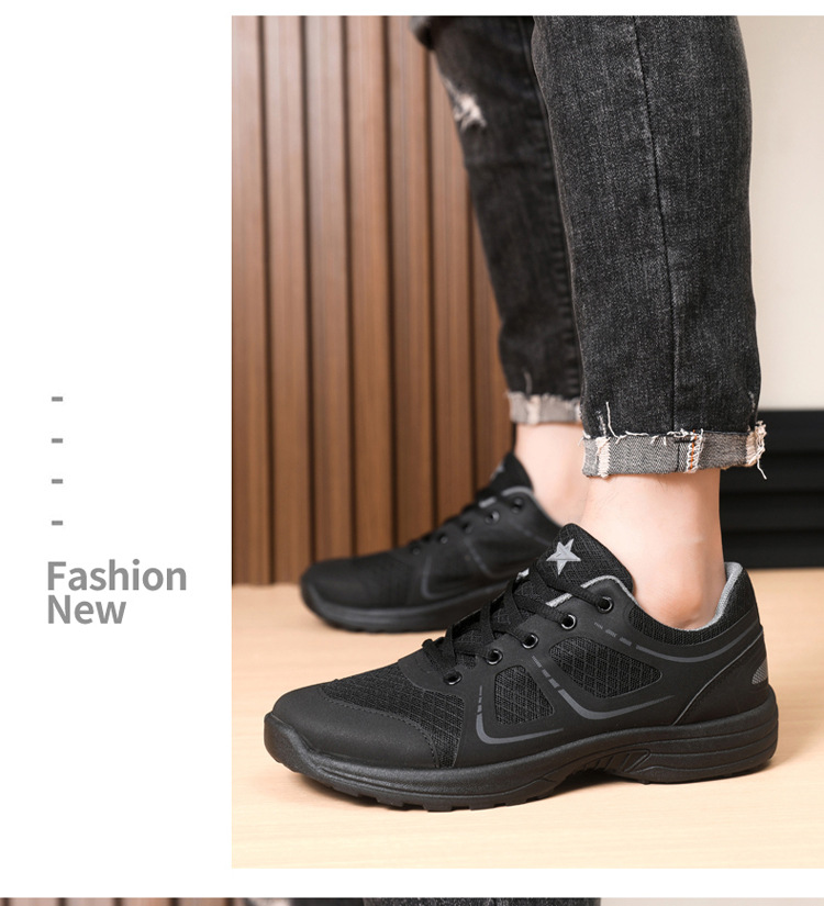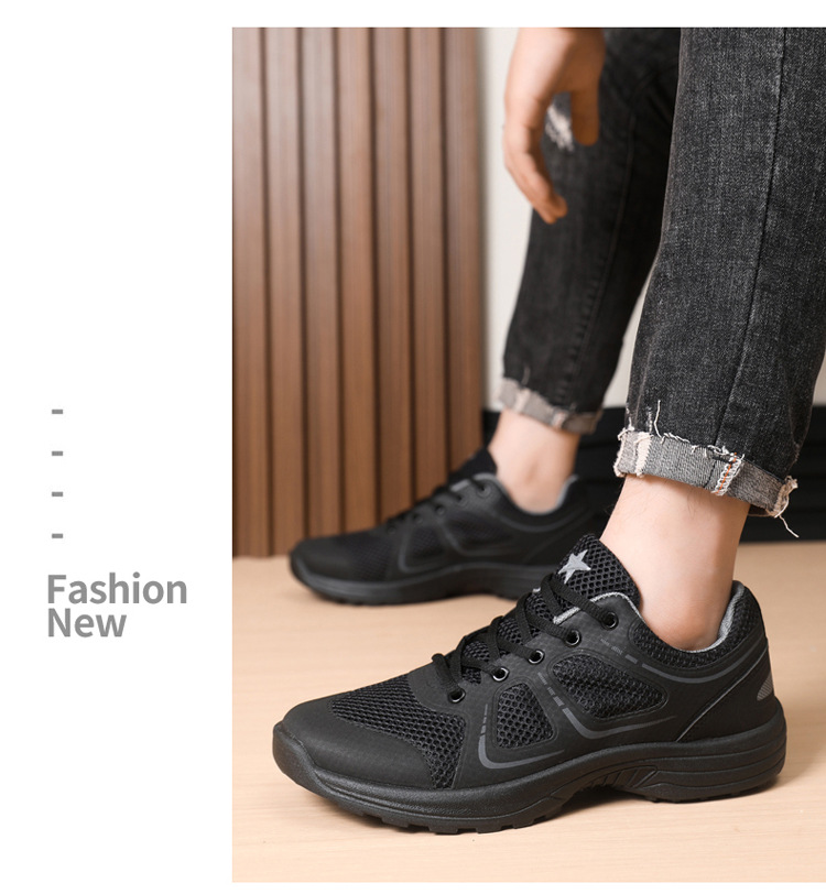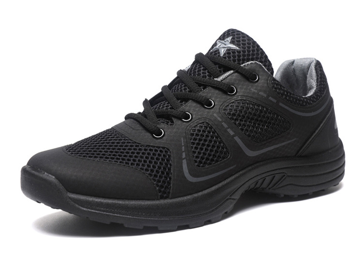 봄 여름용 체력 단련화, 라운드 토, 로우컷, 메쉬 소재, 통기성, 블랙, 끈, 아웃도어 운동화, 등산화