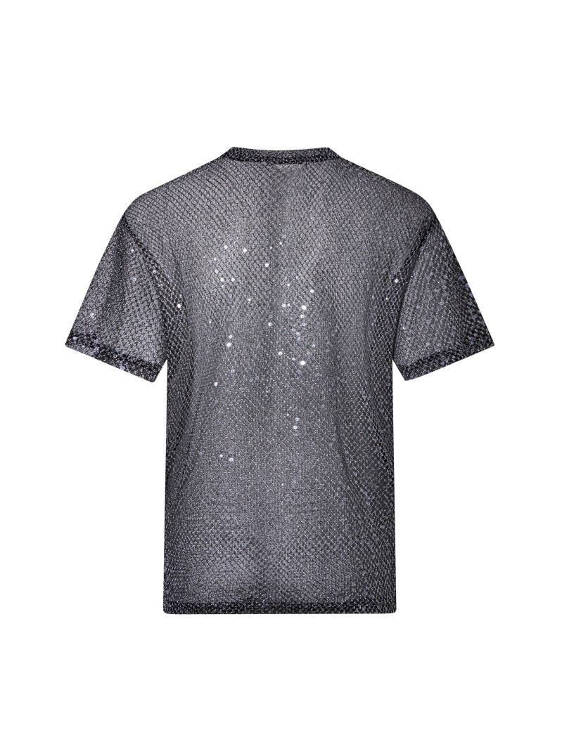 스팟상품! 소년을 위한 뜨거운 새로운 스타일의 황금색 고급 반짝이 틈새 스타일 시스루 메쉬 반팔 티셔츠스토어 가기