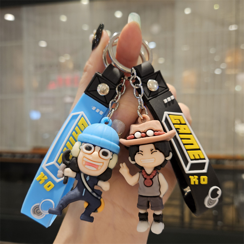 애니메이션 원피스 루피 만화 인형 키 체인 학교 가방 펜던트 손으로 만든 키 체인 소년 작은 선물 도매스토어 가기
