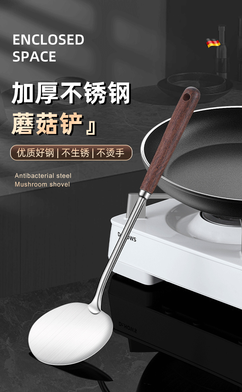 버섯주걱, 스테인리스 냄비주걱, 가정용 식품등급 조리주걱, 숟가락, 볶음주걱, 철제주걱, 나무손잡이, 직배송스토어 가기