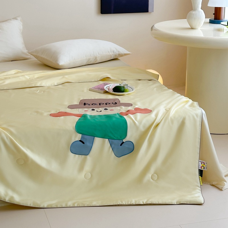 귀여운 텐셀 리오셀 여름 부드럽고 시원한 여름 이불 어린이 만화 패치 수 놓은 에어컨 이불 얇은 이불