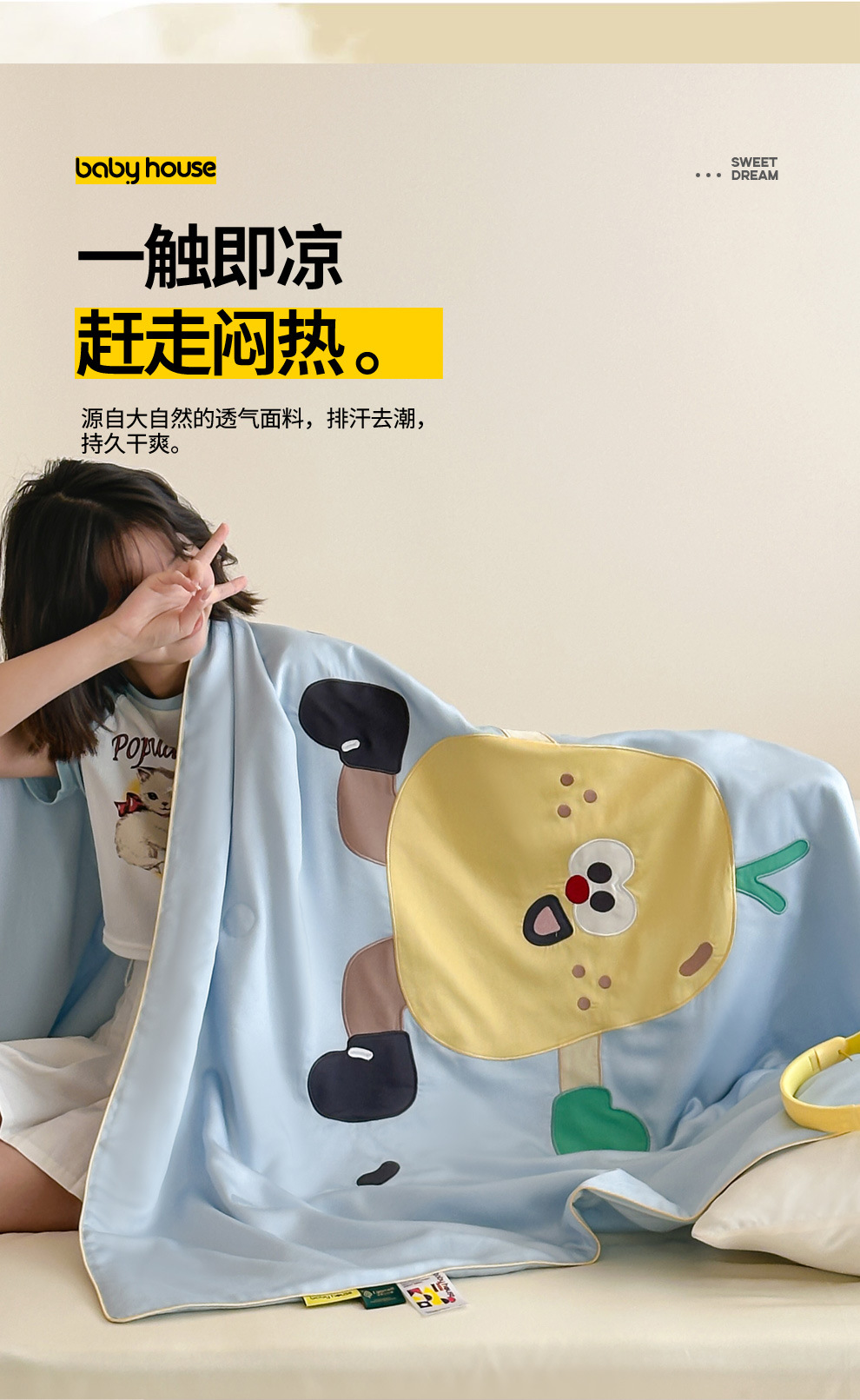 귀여운 텐셀 리오셀 여름 부드럽고 시원한 여름 이불 어린이 만화 패치 수 놓은 에어컨 이불 얇은 이불스토어 가기