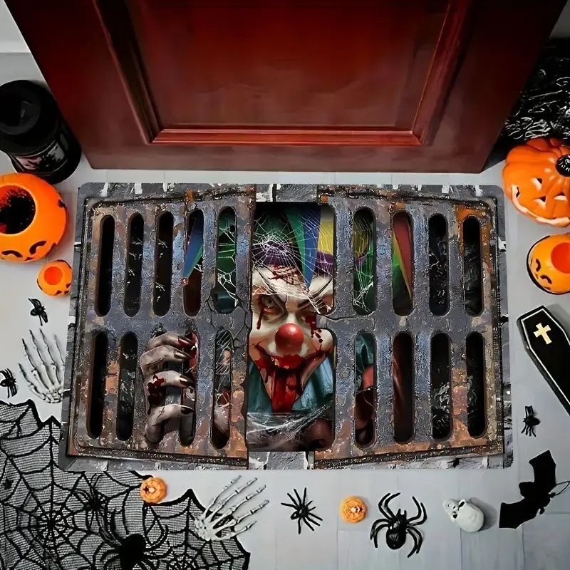 공포 광대 크리스탈 벨벳 도트 플라스틱 바닥 매트 홈 거실 소파 장식 매트 입구 입구 내마모성 및 먼지 방지 매트