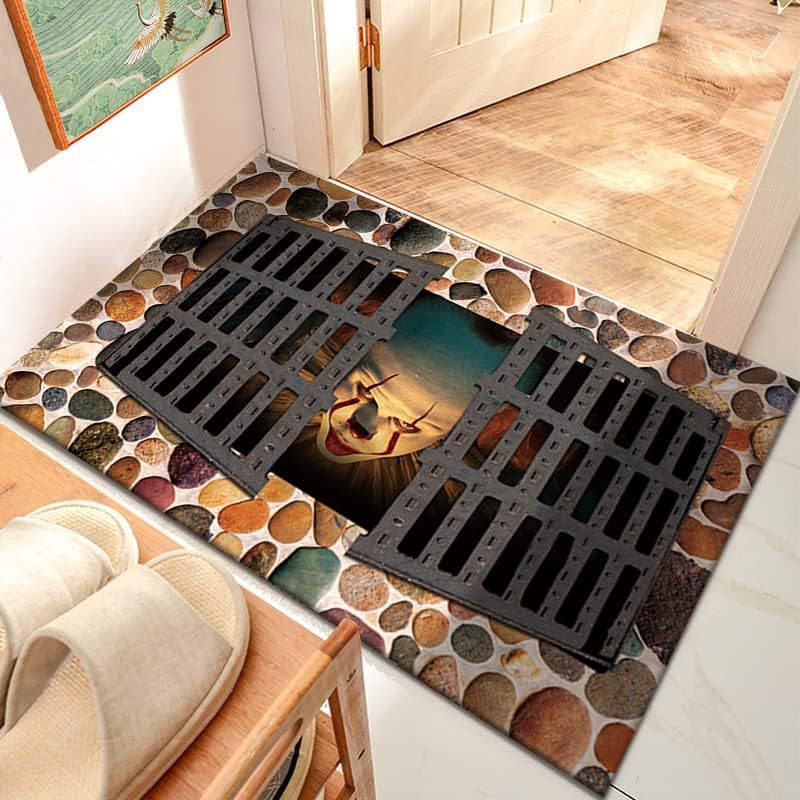 공포 광대 크리스탈 벨벳 도트 플라스틱 바닥 매트 홈 거실 소파 장식 매트 입구 입구 내마모성 및 먼지 방지 매트스토어 가기