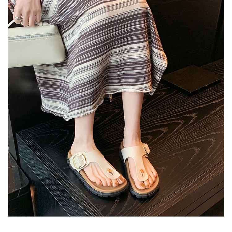 여성을위한 다용도 두꺼운 밑창 플립 플롭 2025 여름 버클 캐주얼 플립 플롭 플랫 버켄스탁 샌들스토어 가기