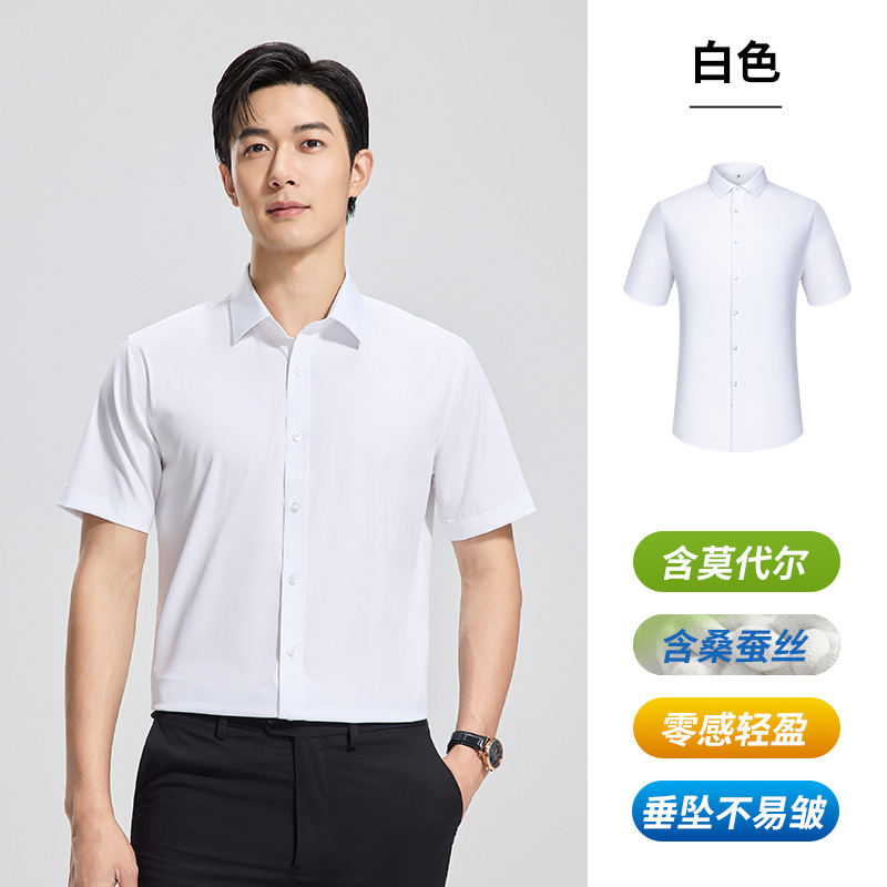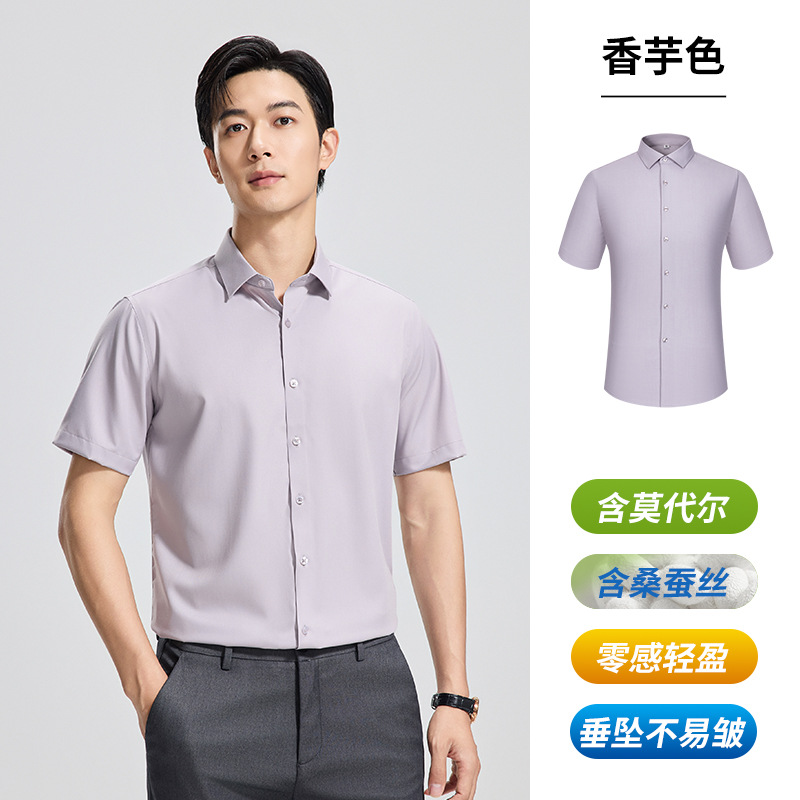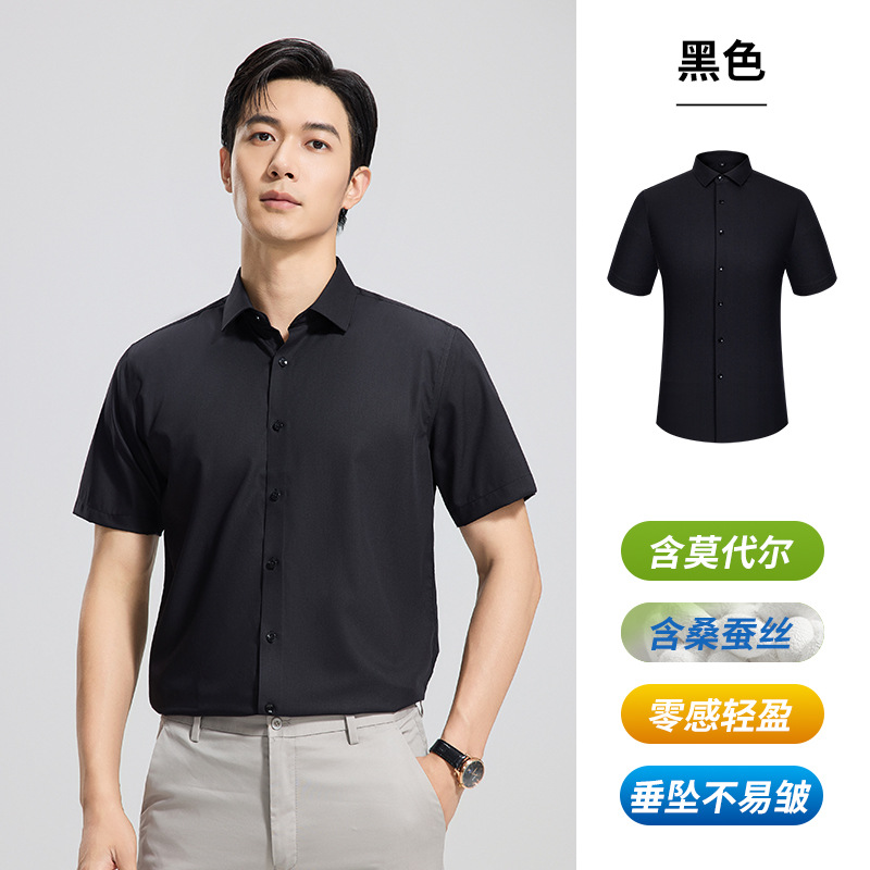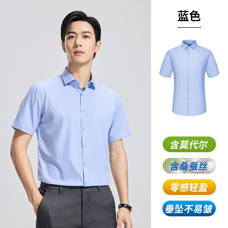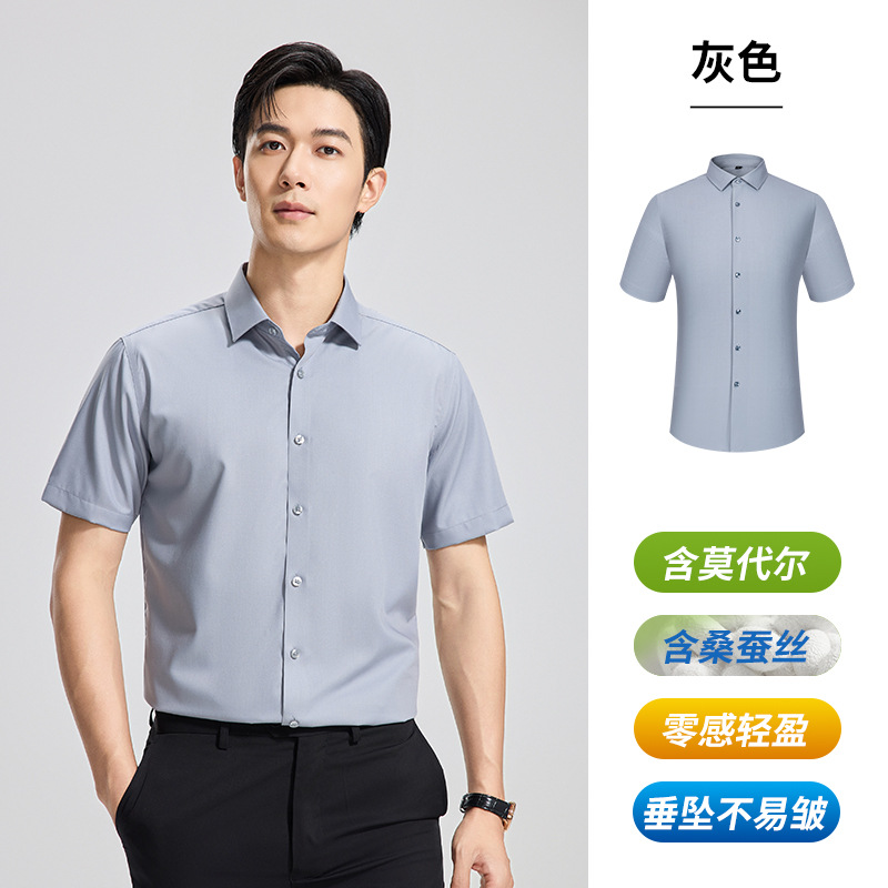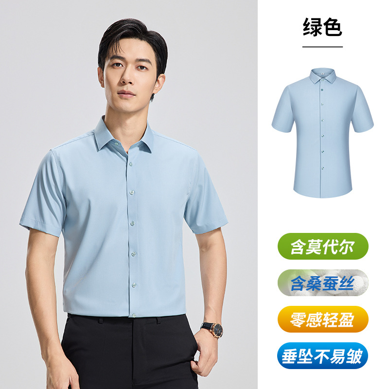 [뽕나무 실크로] 반팔 셔츠 남성용 비 다림질 전문 작업 탑 여름 얇은 비즈니스 셔츠