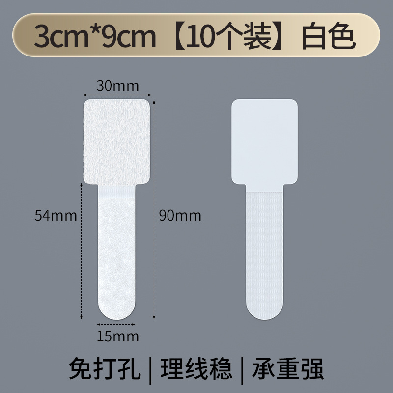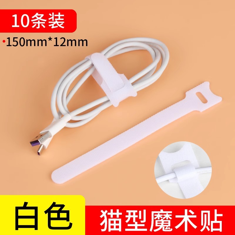 • [10개 팩] 흰색 벨크로 타이/접착식 뒷면 포함