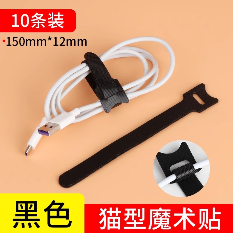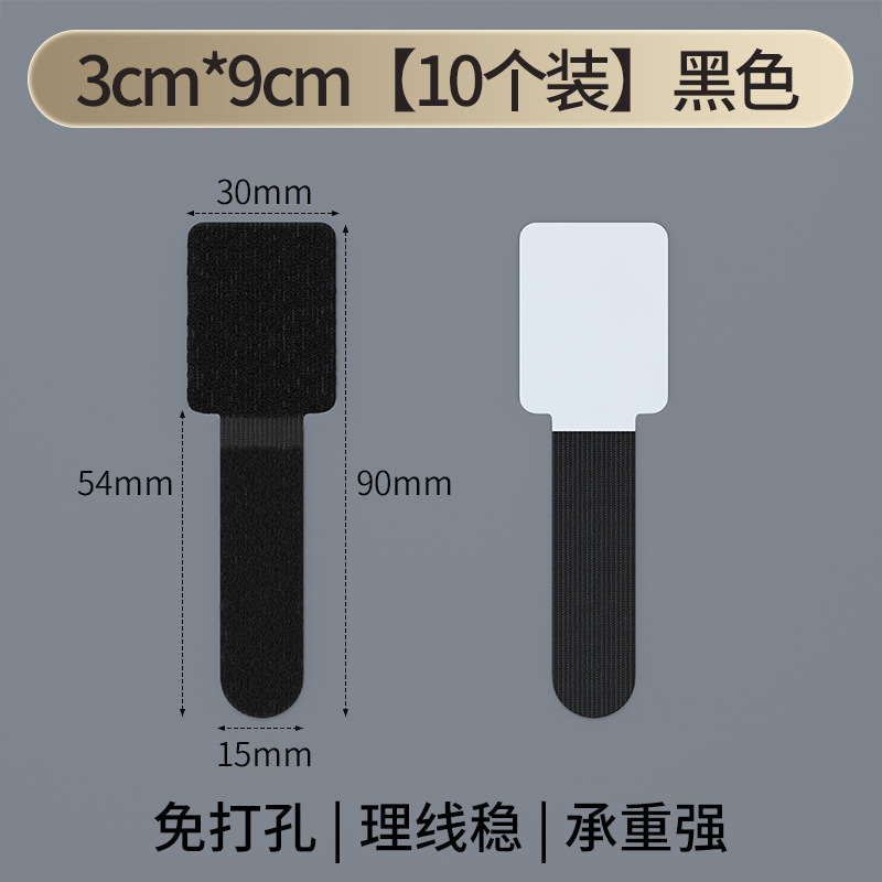 • [10개 팩] 검정색 벨크로 타이/접착식 뒷면 포함