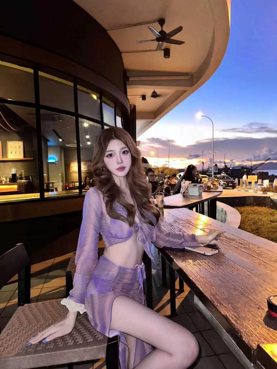 2025 새로운 스타일 스플릿 비키니 4피스 세트 보라색 매력 여성을 위한 고급 온천 해변 휴가 수영복