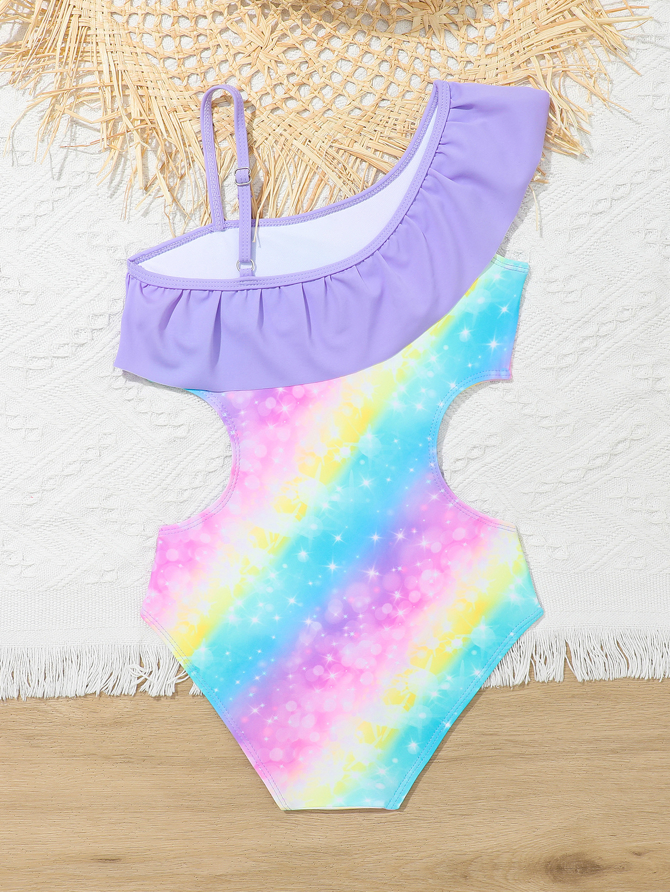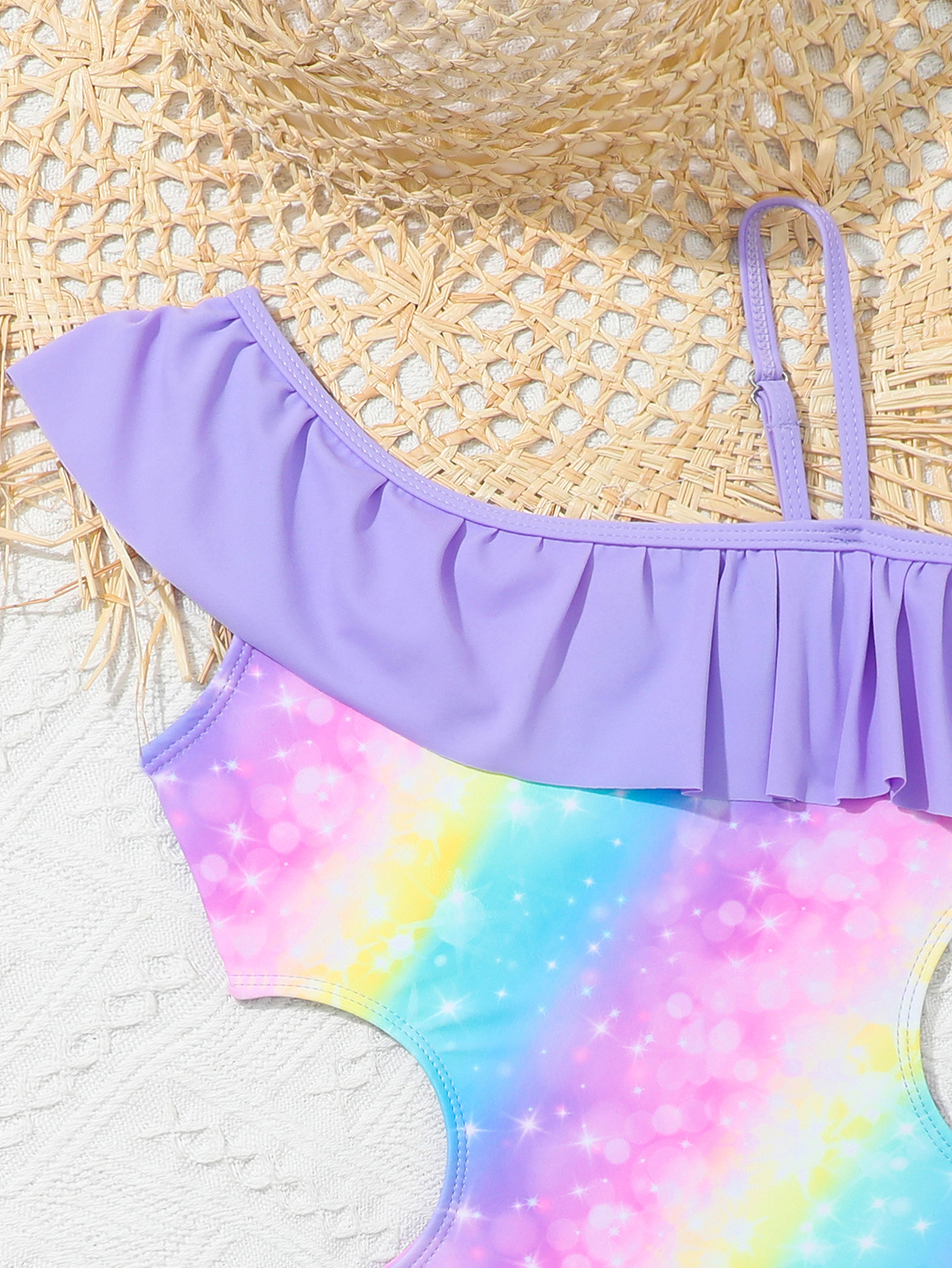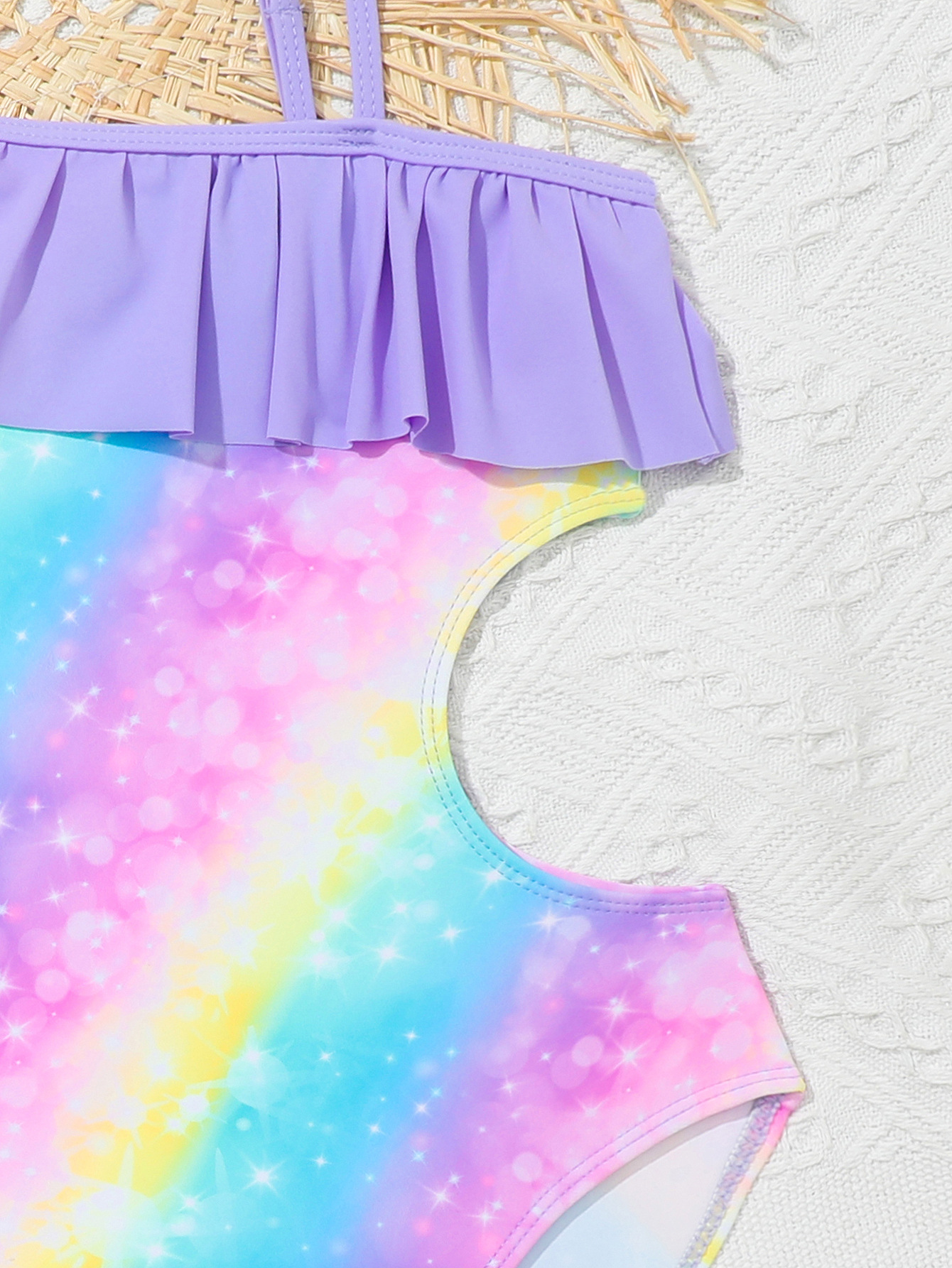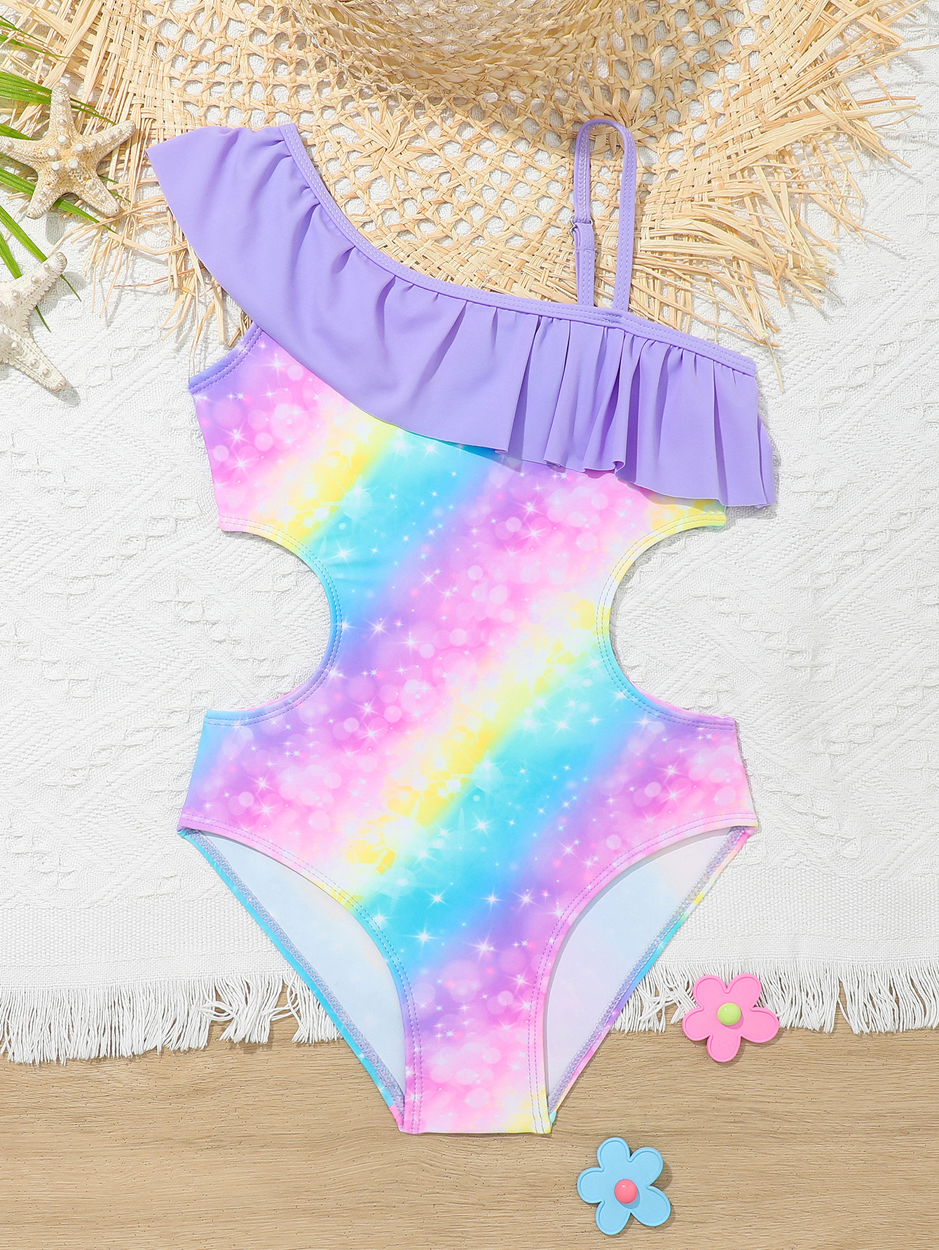 국경 간 새로운 어린이 수영복 그라데이션 무지개 인쇄 중대형 소녀 원피스 귀여운 해변 해변 서스펜더 수영복