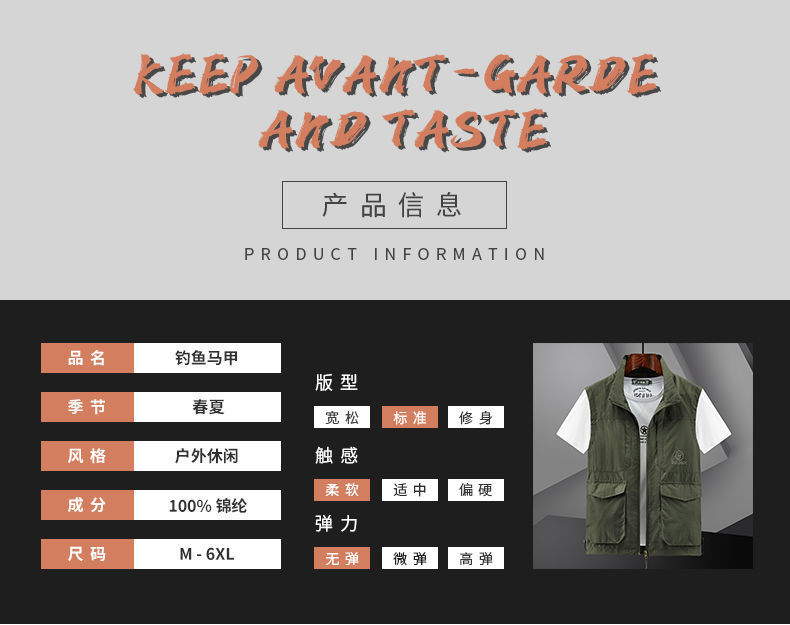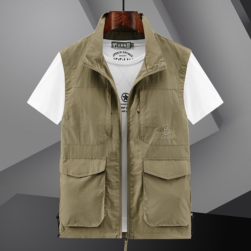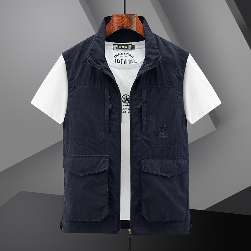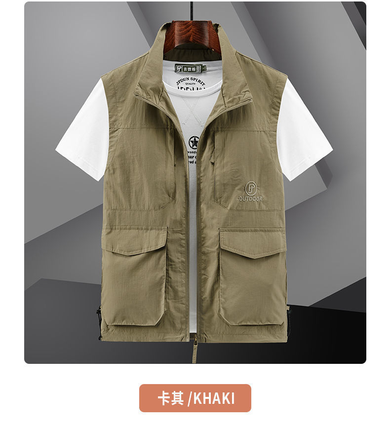 새로운 스타일 조끼 남자 야외 레저 봄과 여름 사진 낚시 등산 옷깃 조끼 방수 재킷