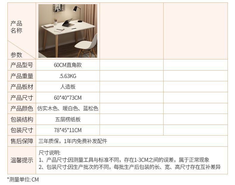 • 안정적이고 대담한 80X40X73 싱글 테이블 따뜻한 흰색