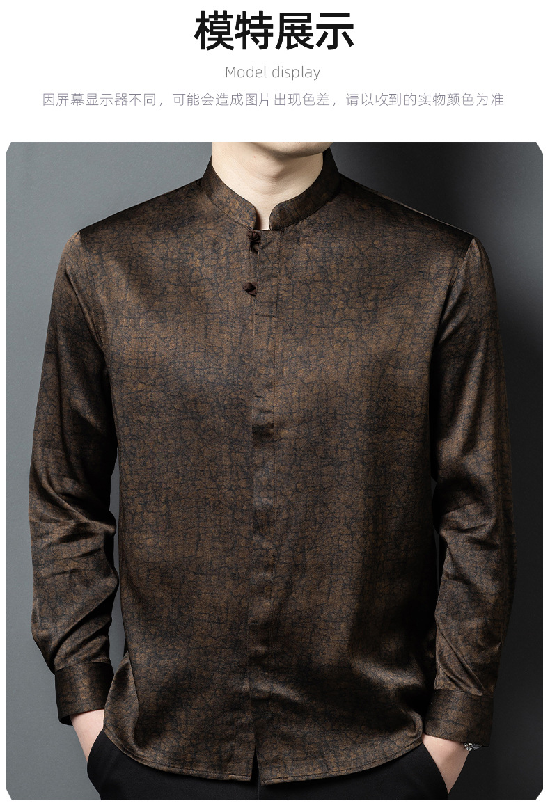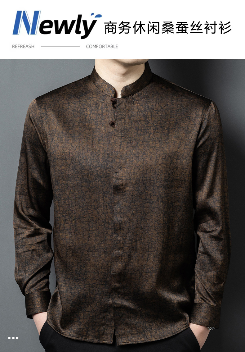 하이 엔드 라이트 럭셔리 헤비급 향기로운 구름 실크 멀버리 실크 긴팔 셔츠 남성용 중국 스타일 스탠드 칼라 당나라 정장 실크 남성복스토어 가기