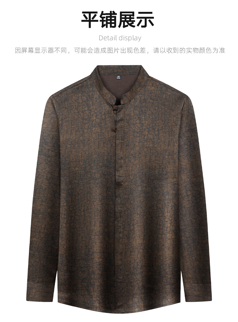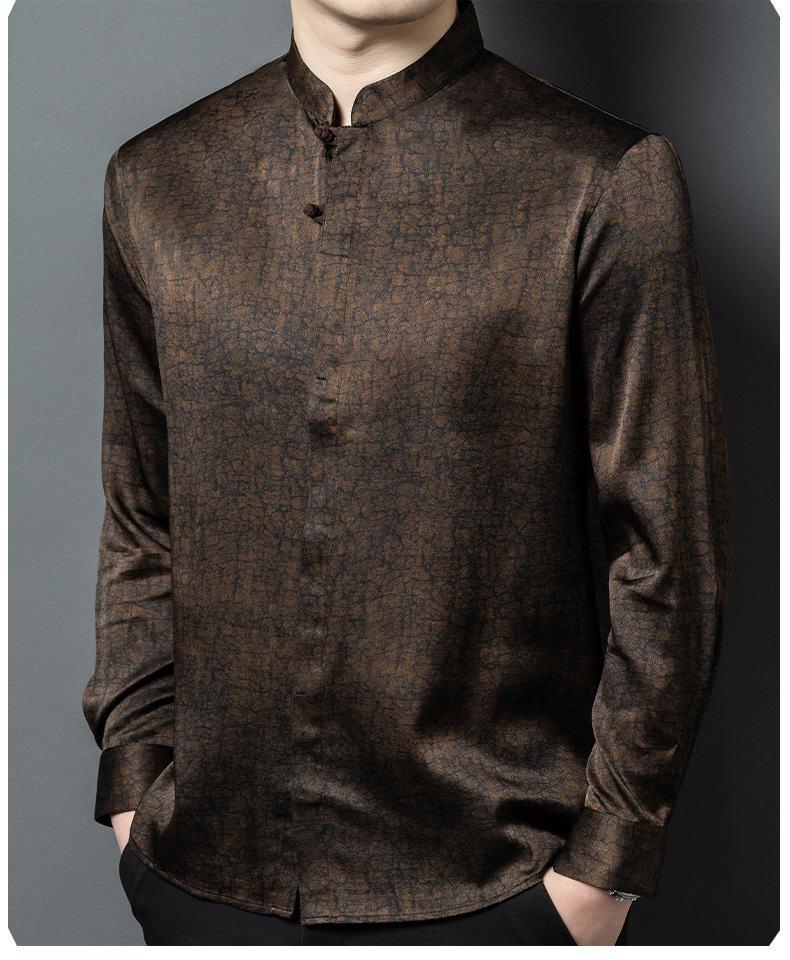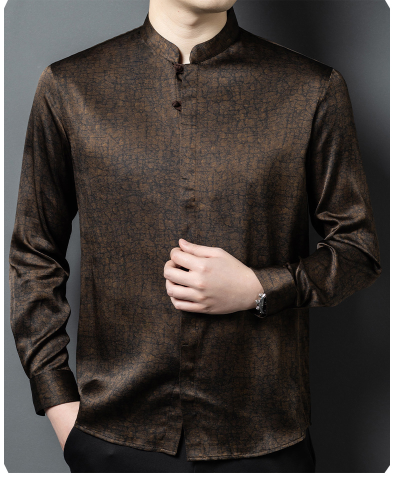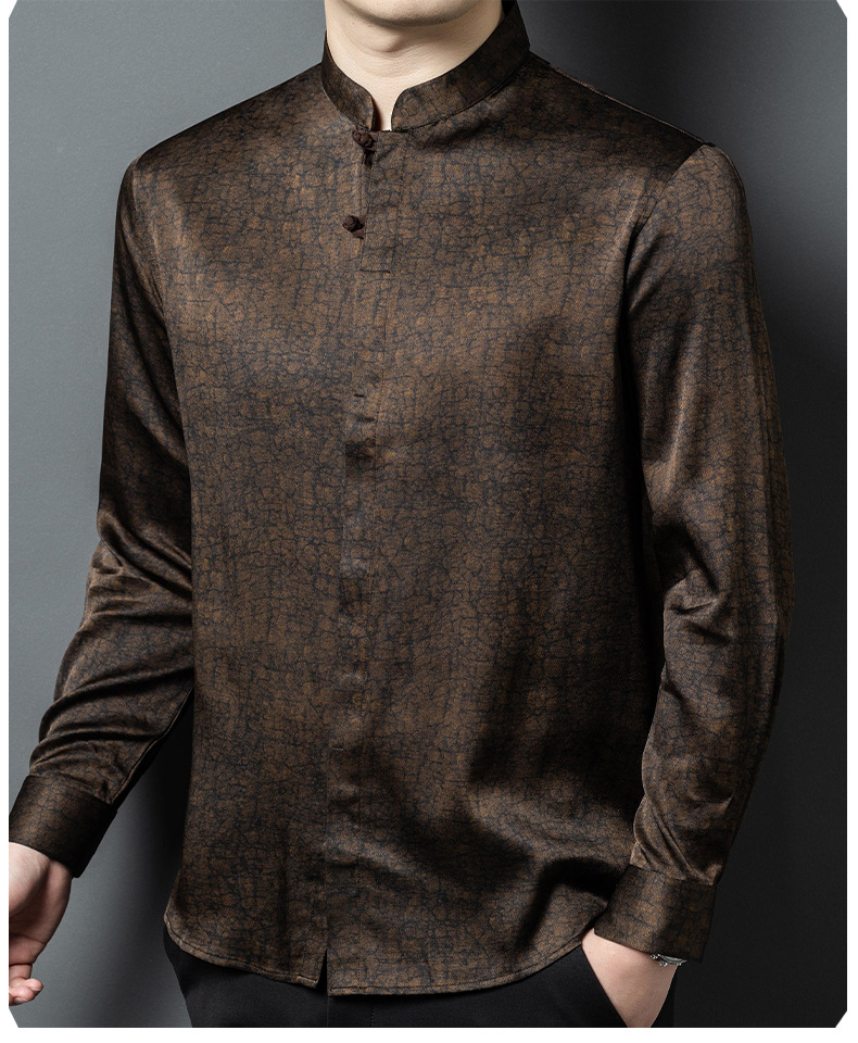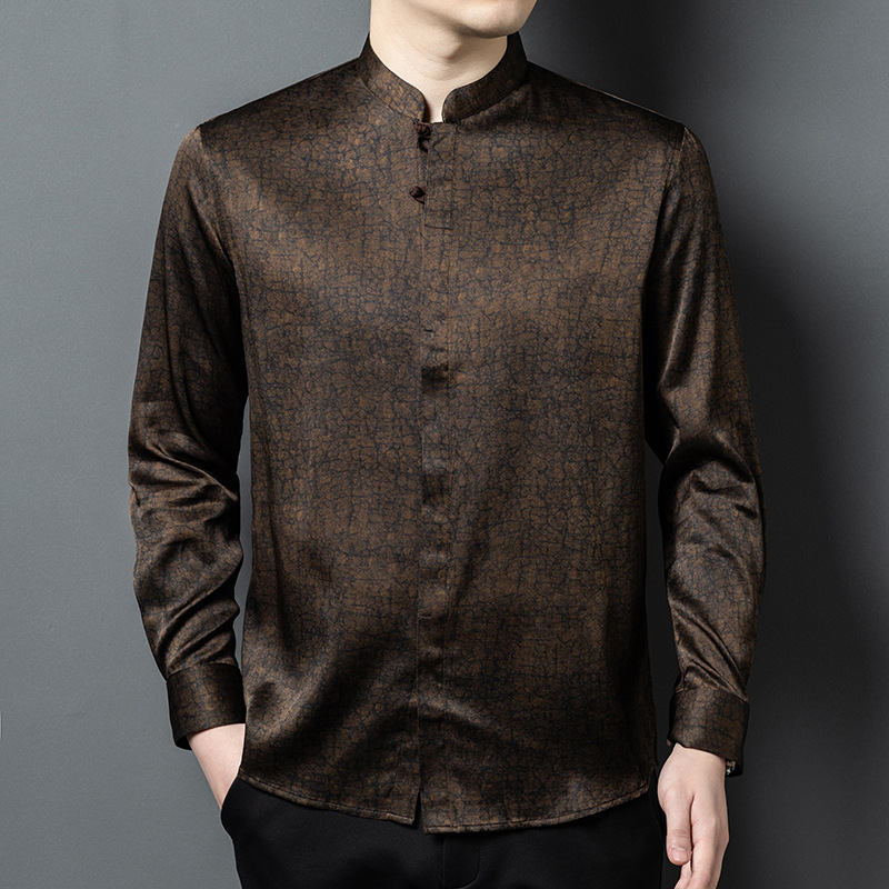 하이 엔드 라이트 럭셔리 헤비급 향기로운 구름 실크 멀버리 실크 긴팔 셔츠 남성용 중국 스타일 스탠드 칼라 당나라 정장 실크 남성복