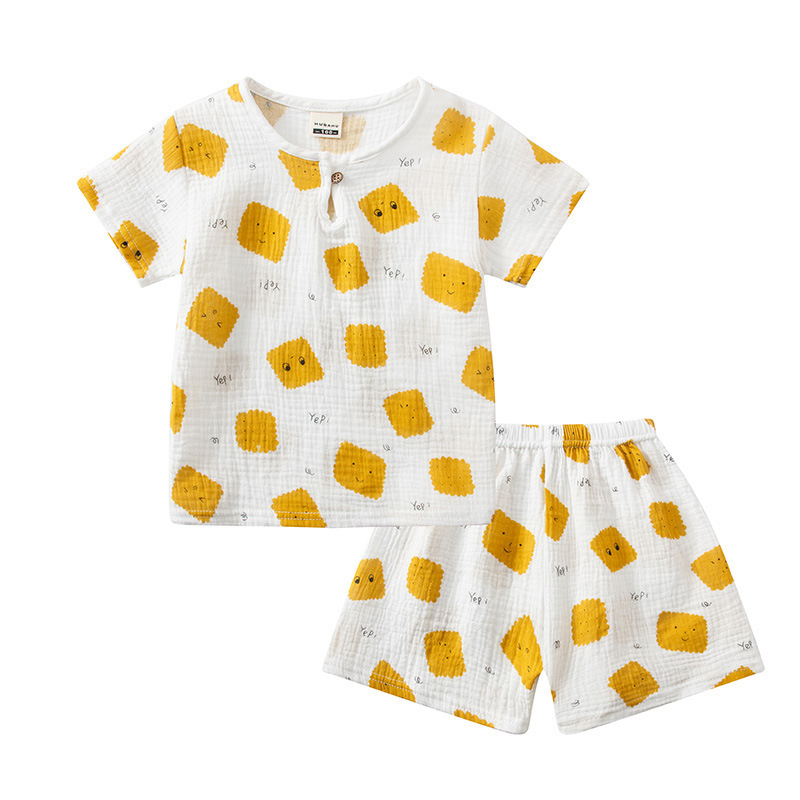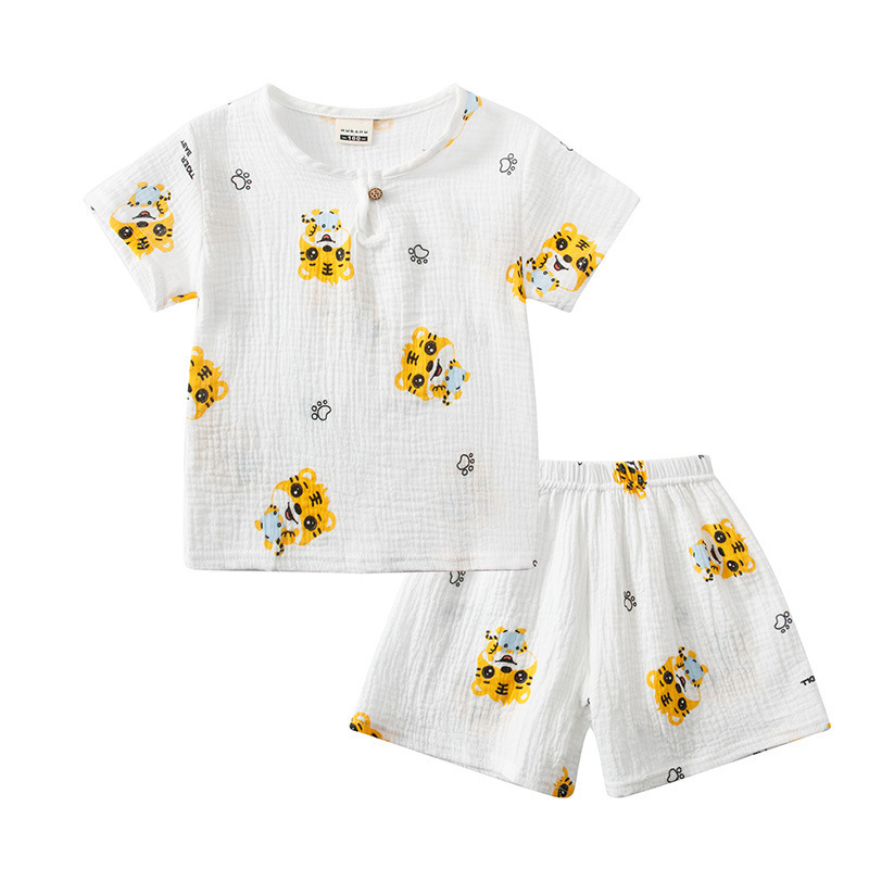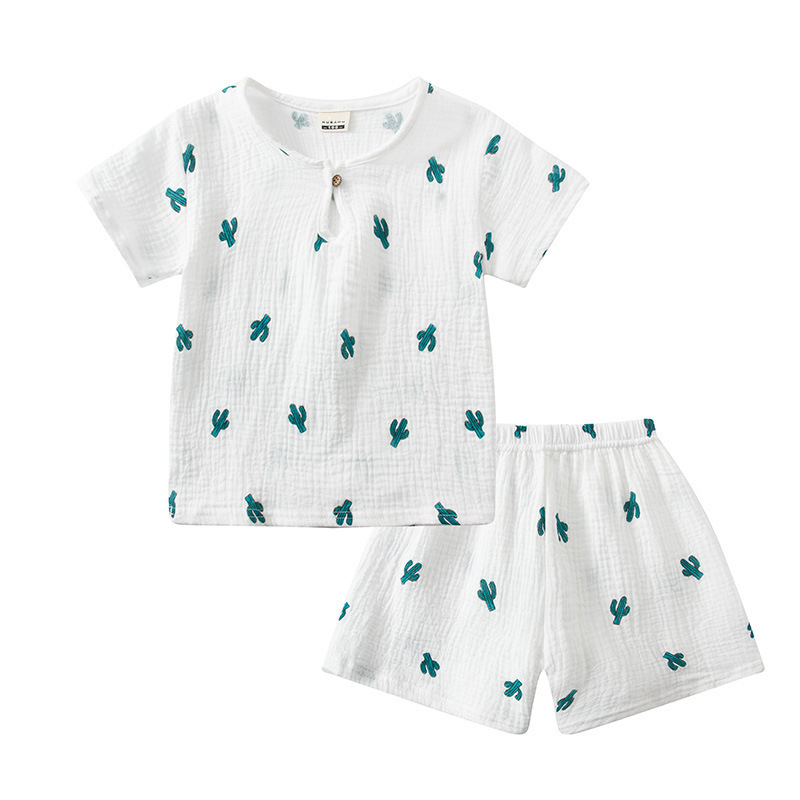25 여름 어린이 더블 레이어 거즈 반팔 반바지 잠옷 소년과 소녀를위한 얇은 투피스 세트 크레페 에어컨 가정복스토어 가기