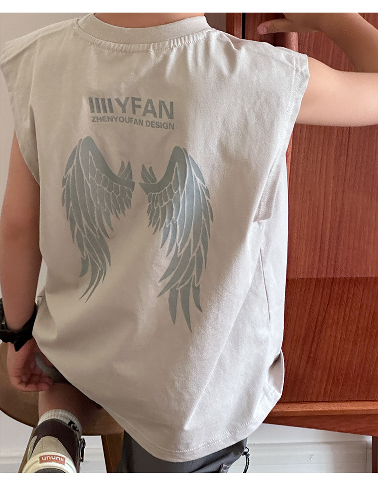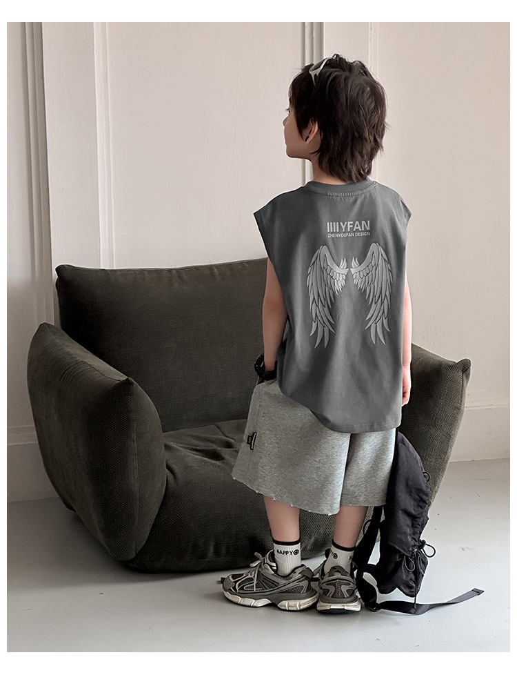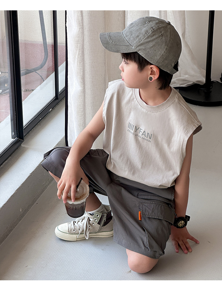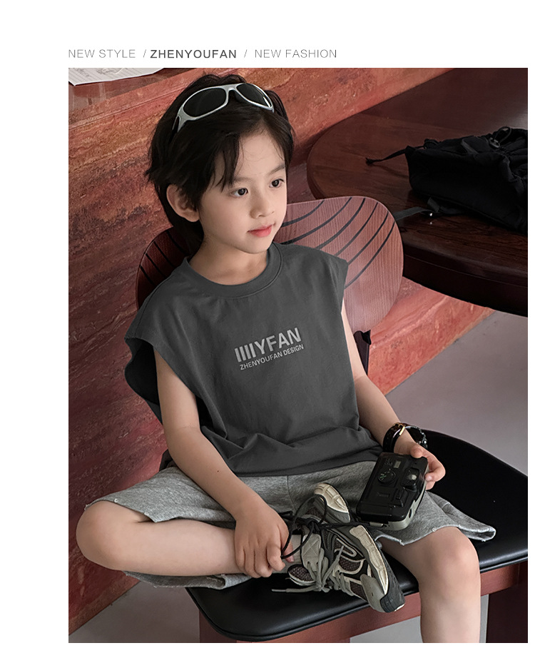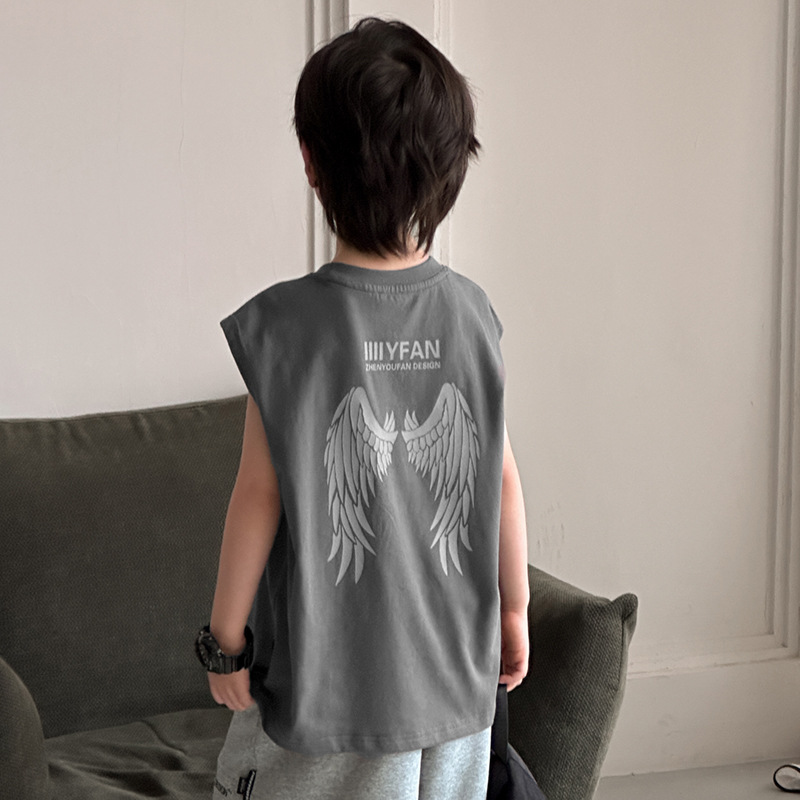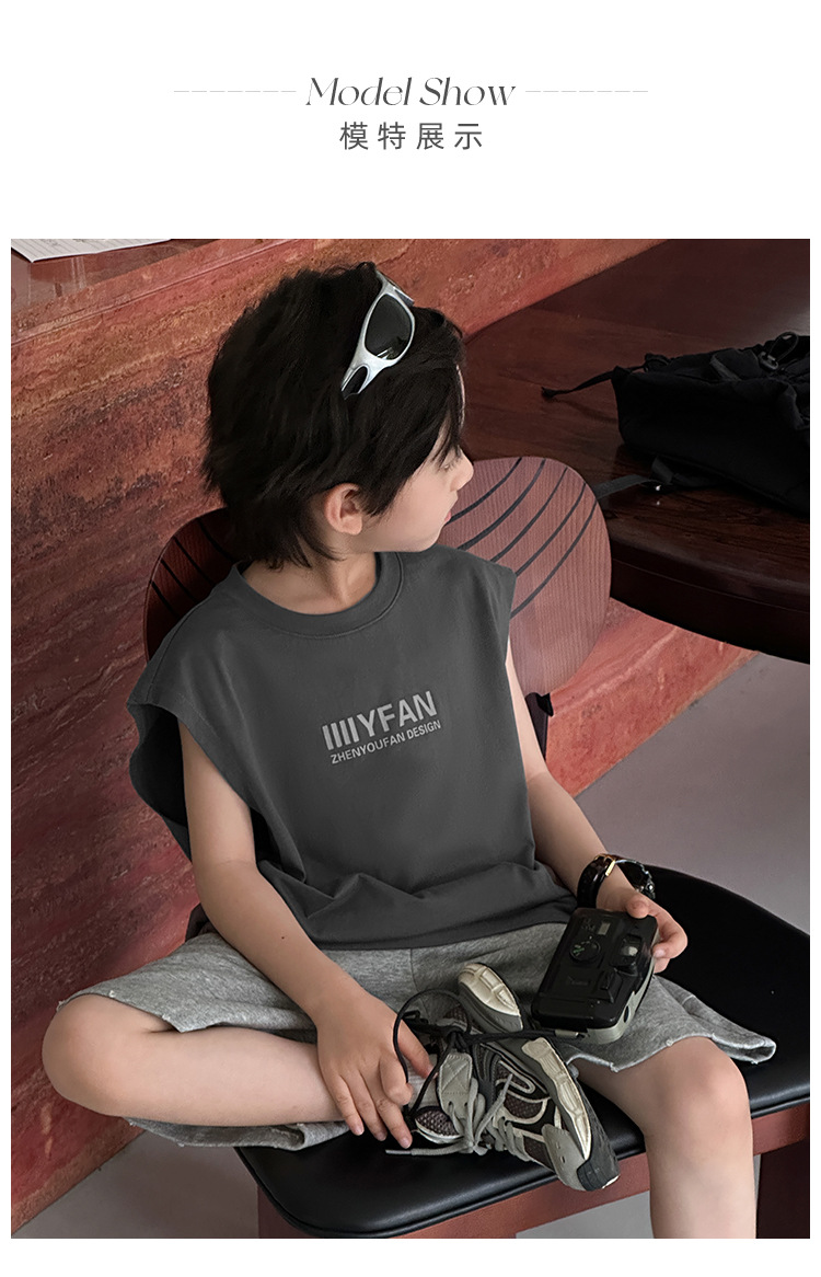 아동 의류 소년 조끼 여름 얇은 어린이 순수 면화 민소매 티셔츠 여름 착용 2025 새로운 큰 어린이 소년 조끼스토어 가기