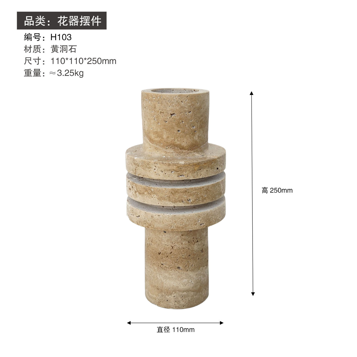 • H016-H1 노란색 석회화 130*130*260mm